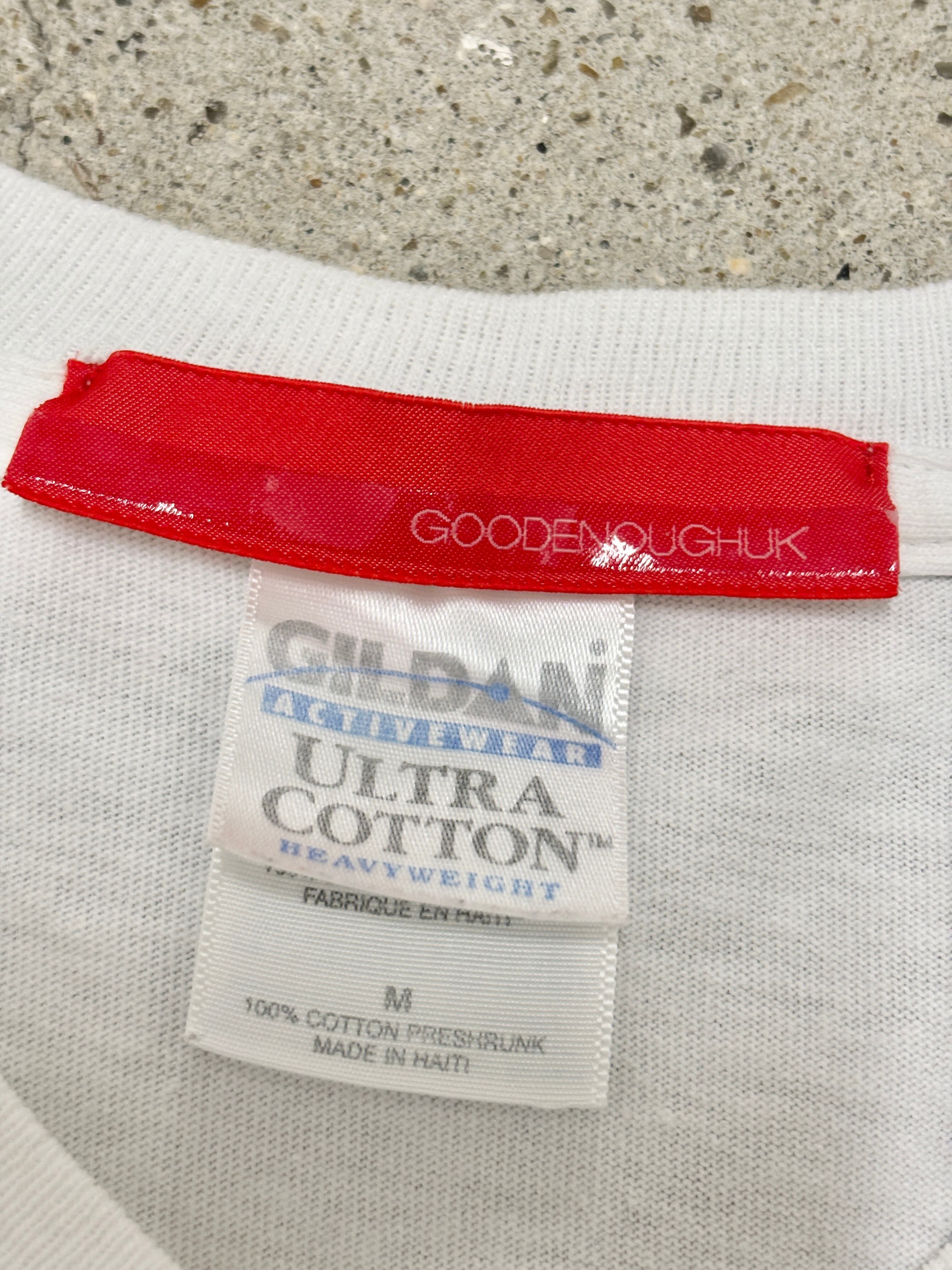90~00s GOODENOUGH UK/Logo print Tee/GILDAN/M/ロゴプリントTシャツ/グラムg/パールデザイン/ホワイト/GDEH/グッドイナフ