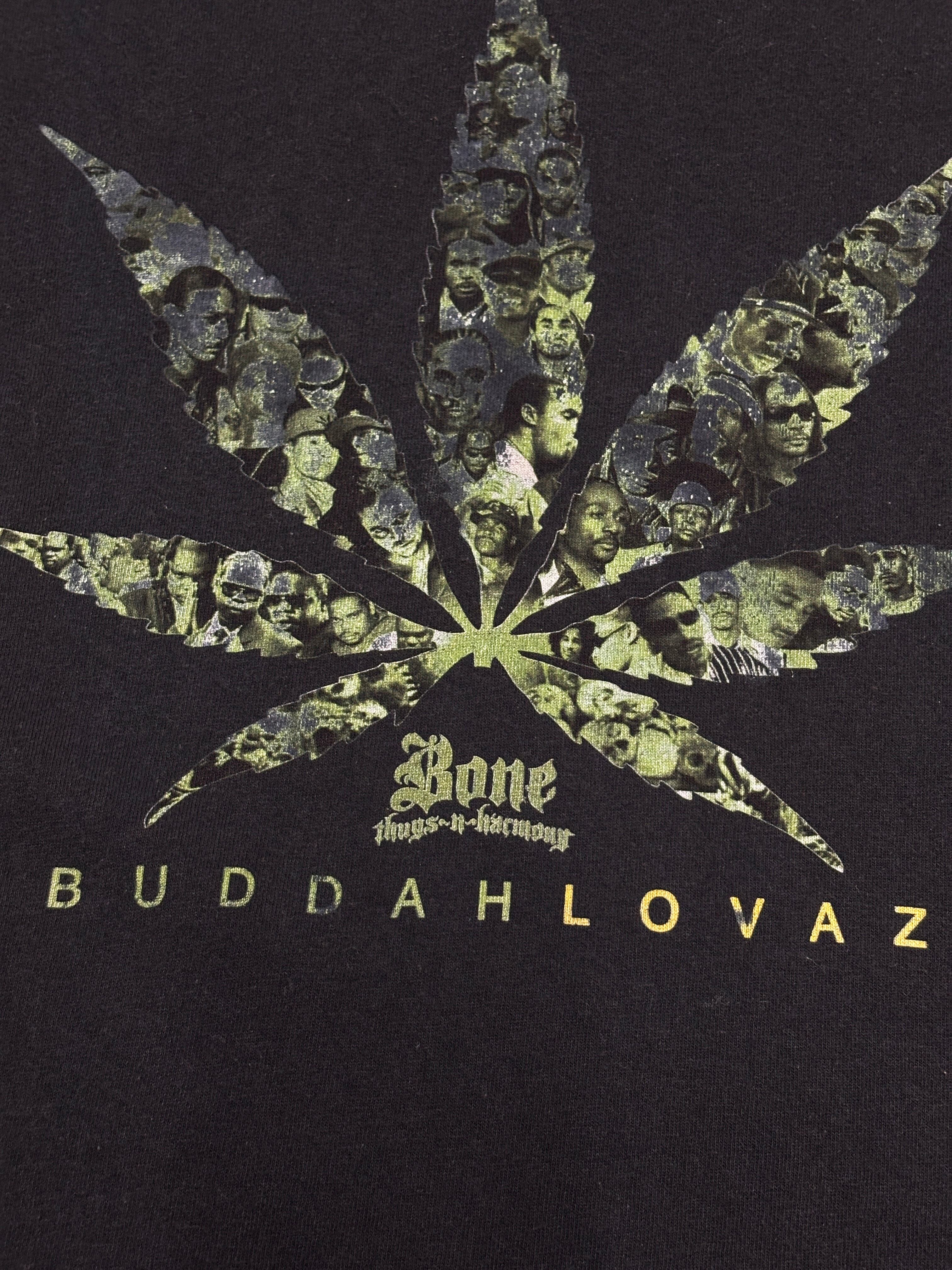 Bone Thugs-N-Harmony/BUDDAH LOVAZ Tee/L/グラフィックプリントTシャツ/ロゴプリント/ブラック/HIPHOP/ボーン・サグズン・ハーモニー