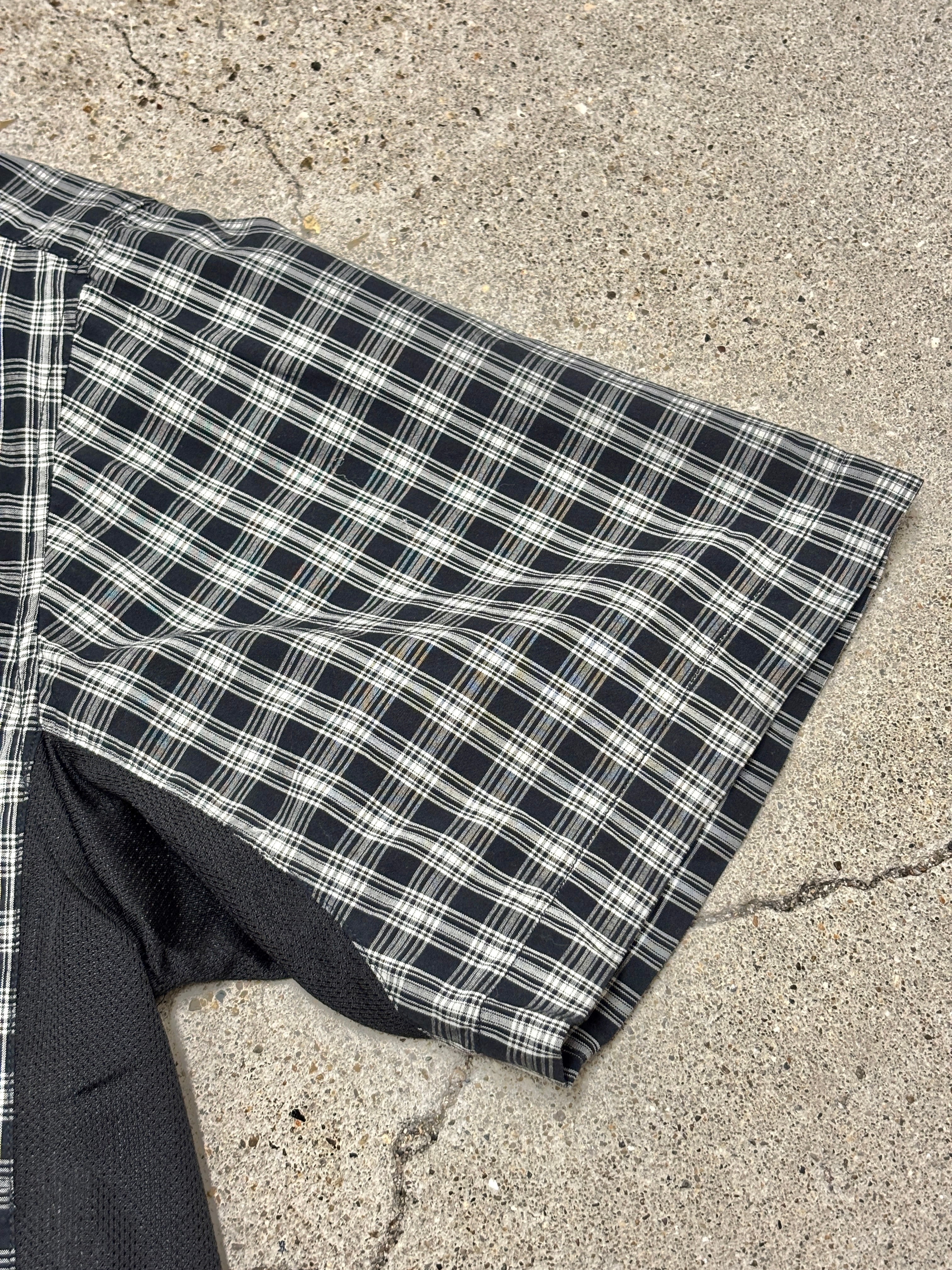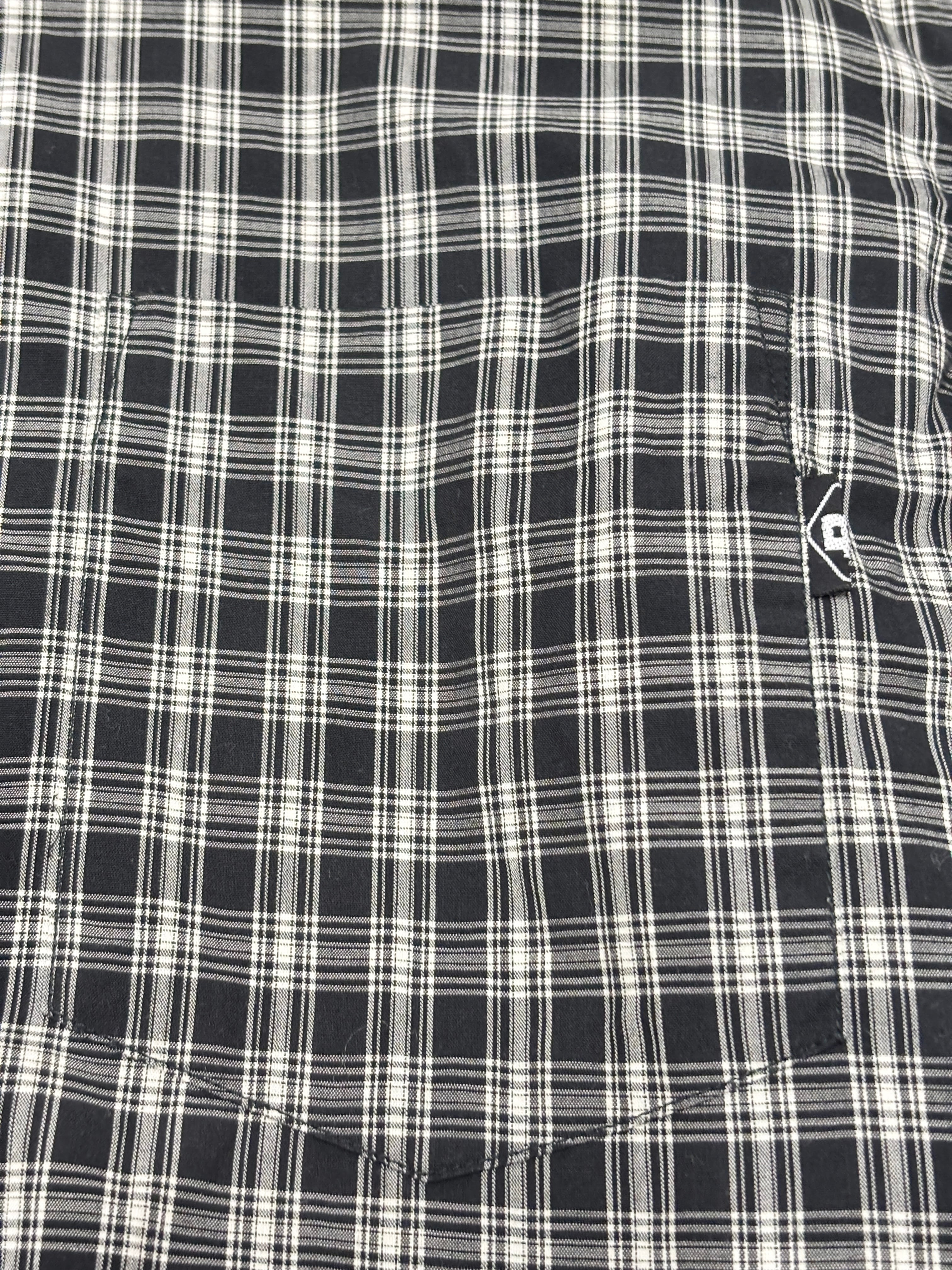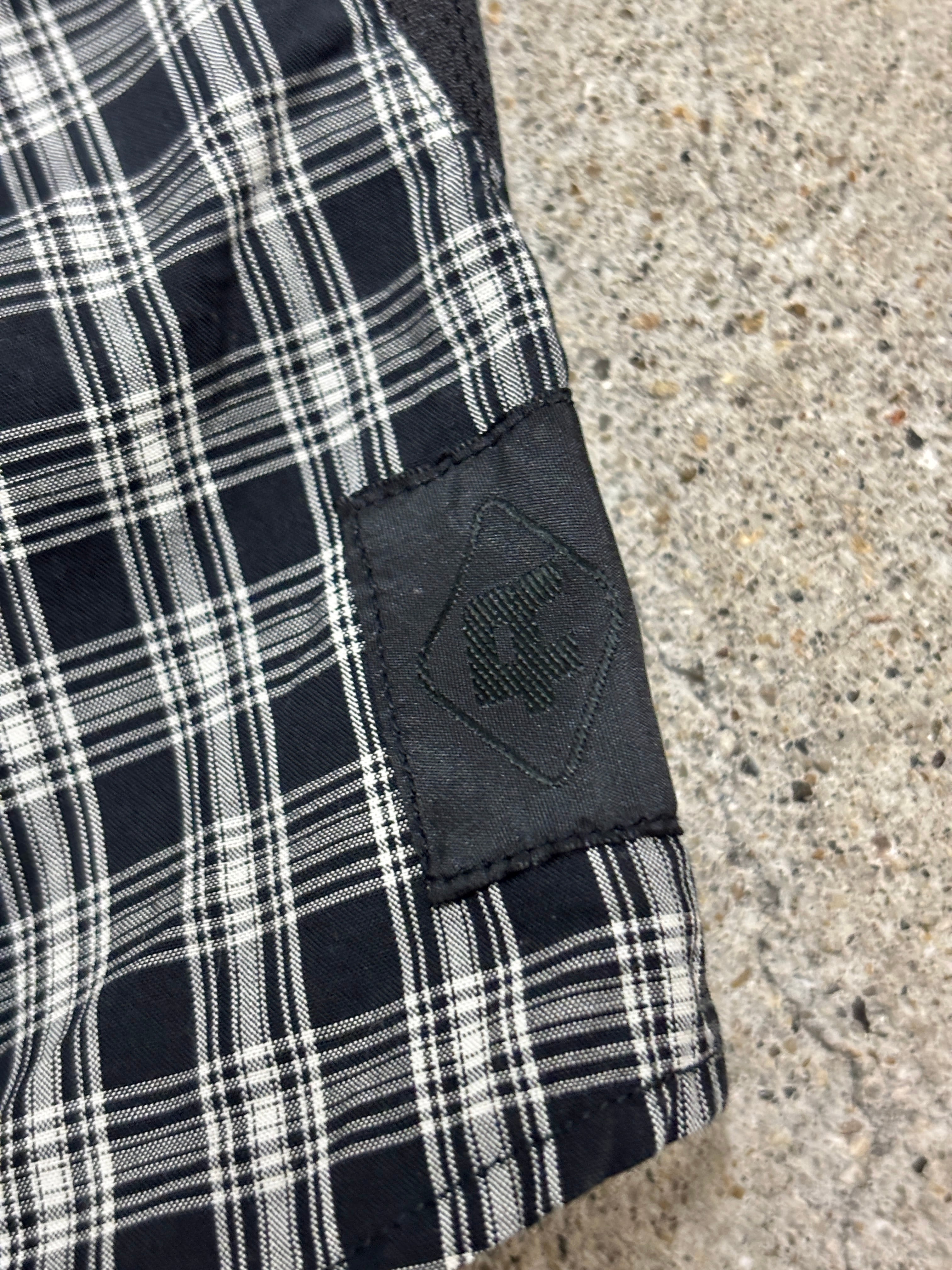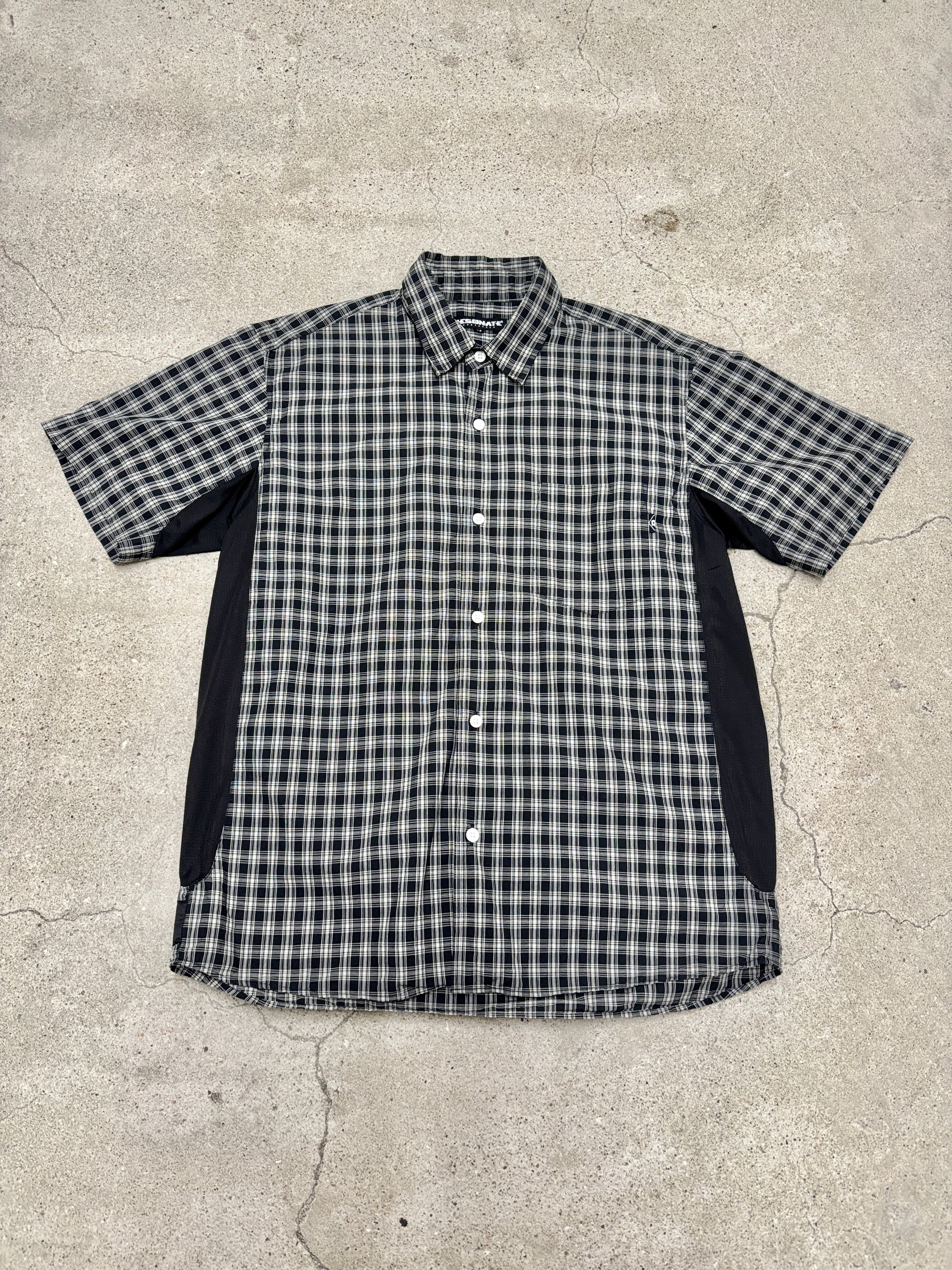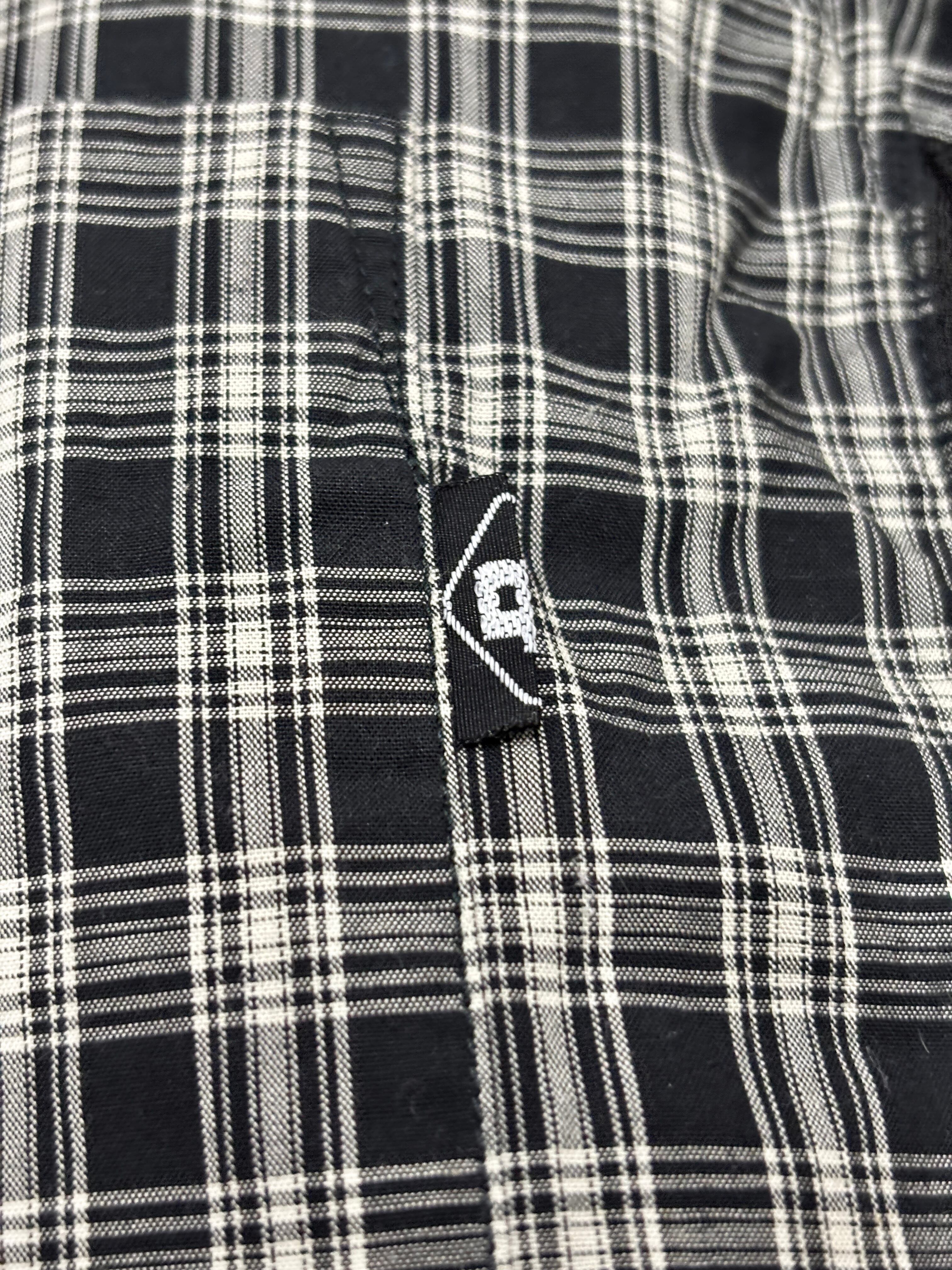00s RESONATE GOODENOUGH/Ventilation S/S Shirt/M/ベンチレーション/チェック柄半袖シャツ/ロゴプリント/ブラック/GDEH/リゾネイトグッドイナフ/裏原/古着/ア―カイブ