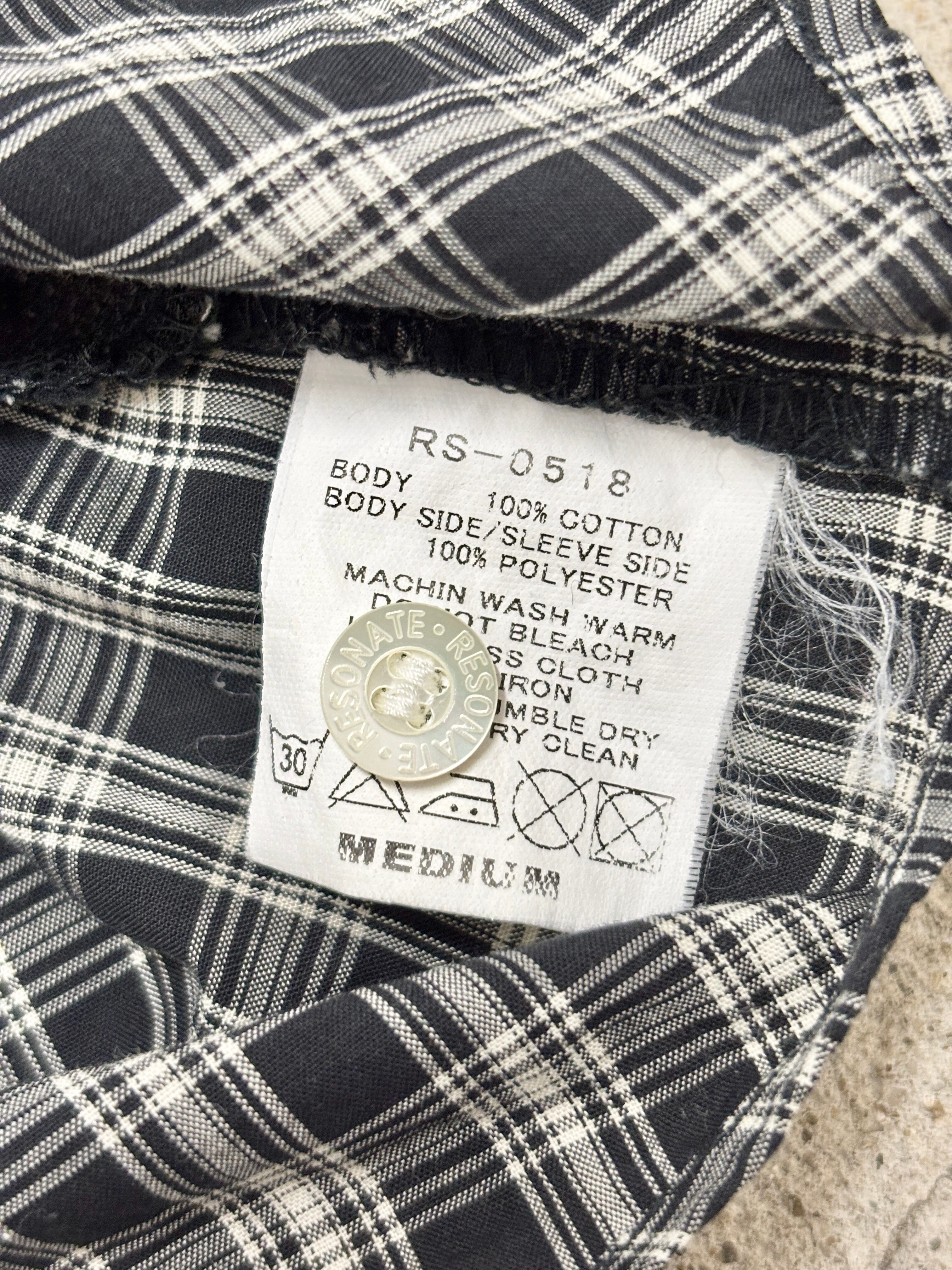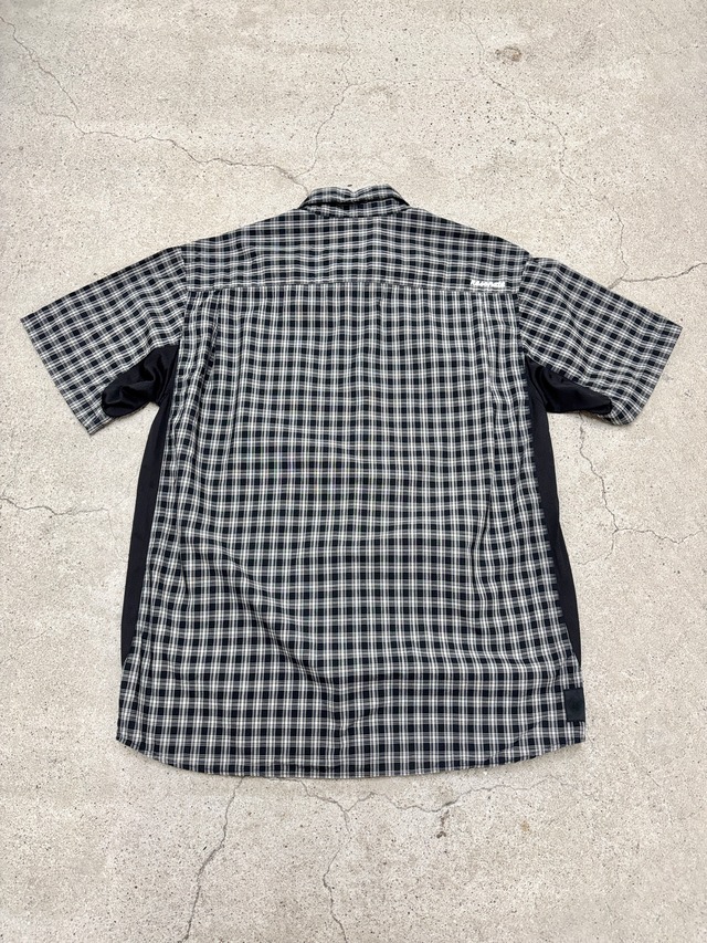 00s RESONATE GOODENOUGH/Ventilation S/S Shirt/M/ベンチレーション/チェック柄半袖シャツ/ロゴプリント/ブラック/GDEH/リゾネイトグッドイナフ