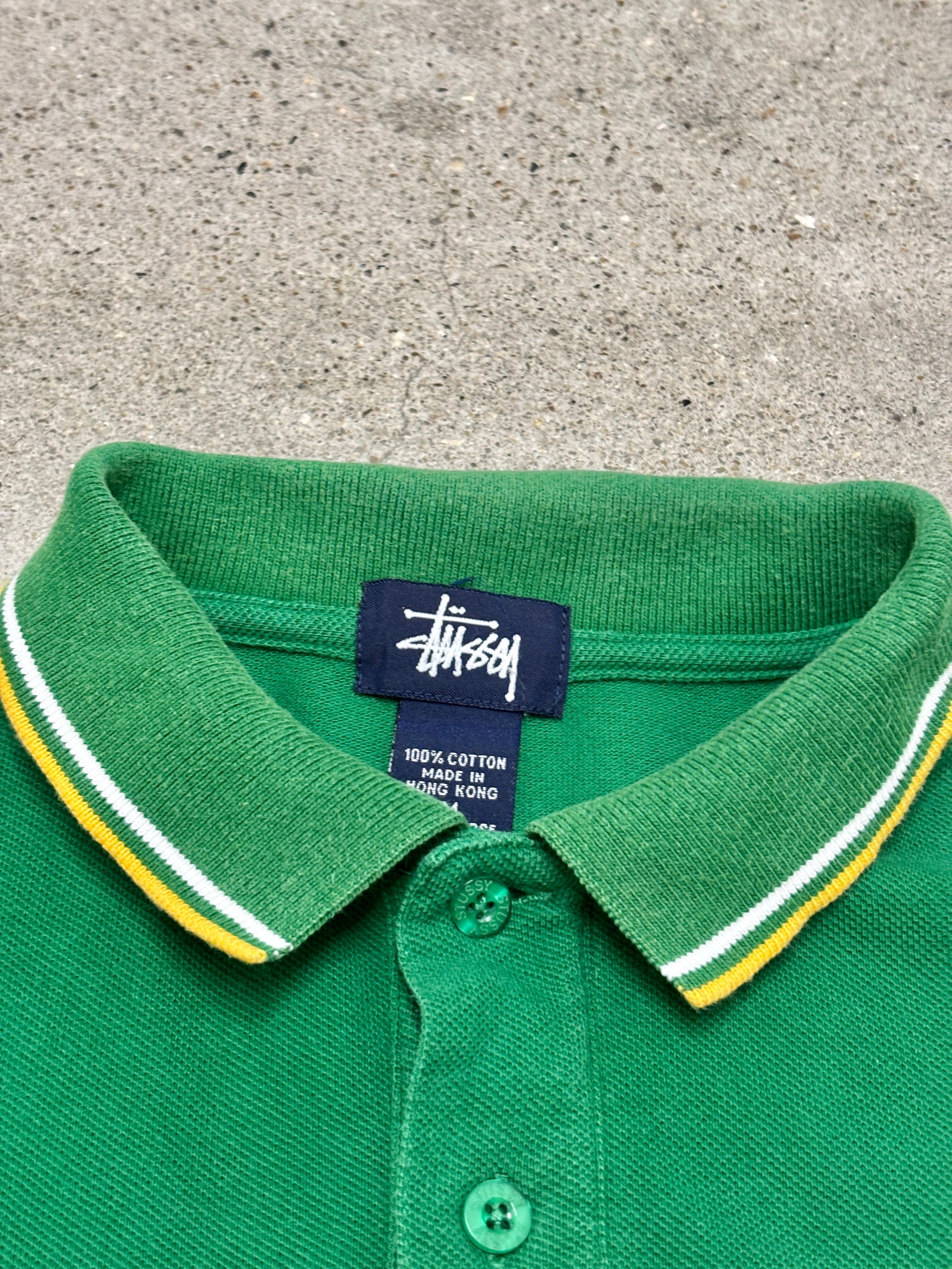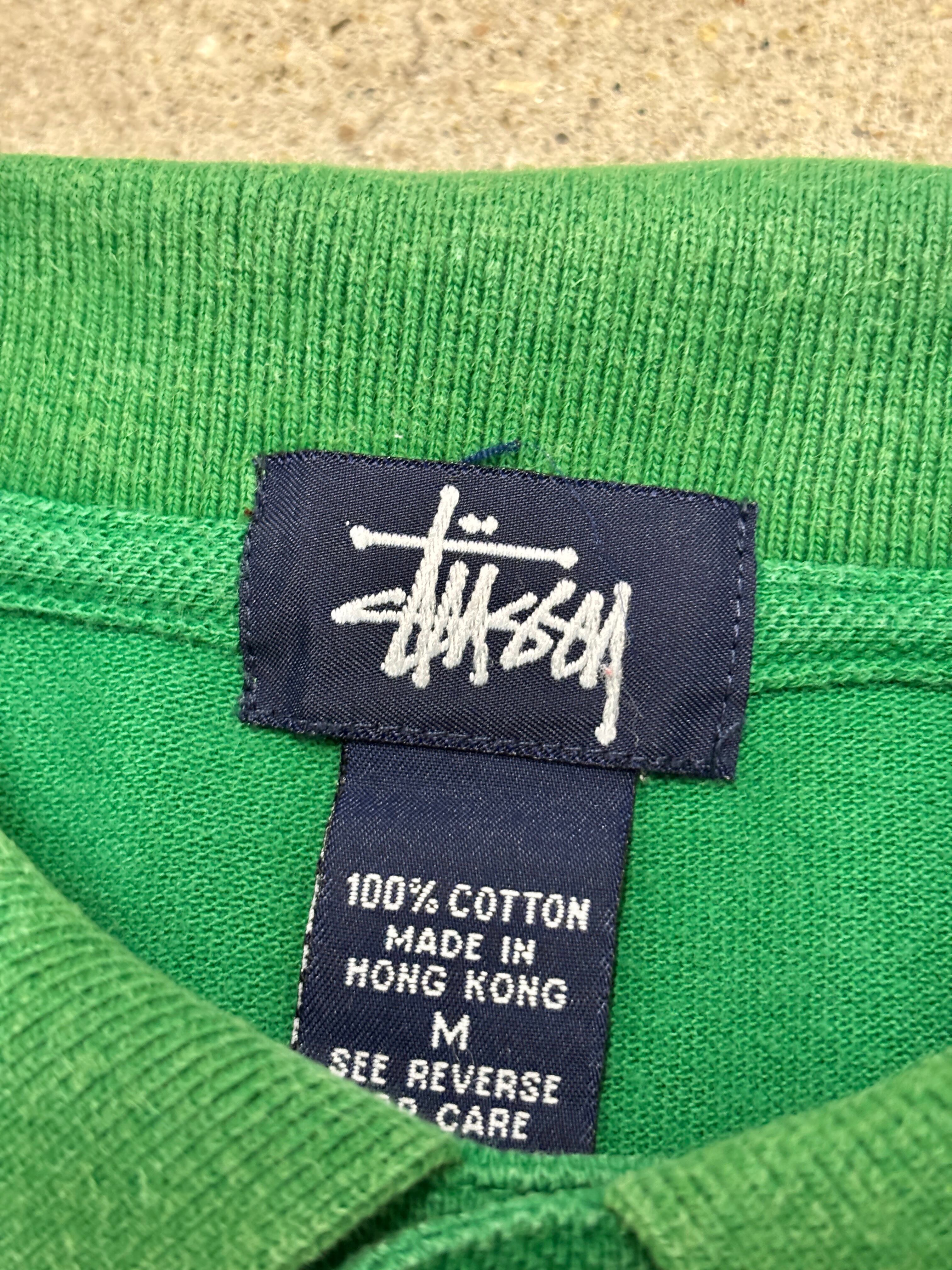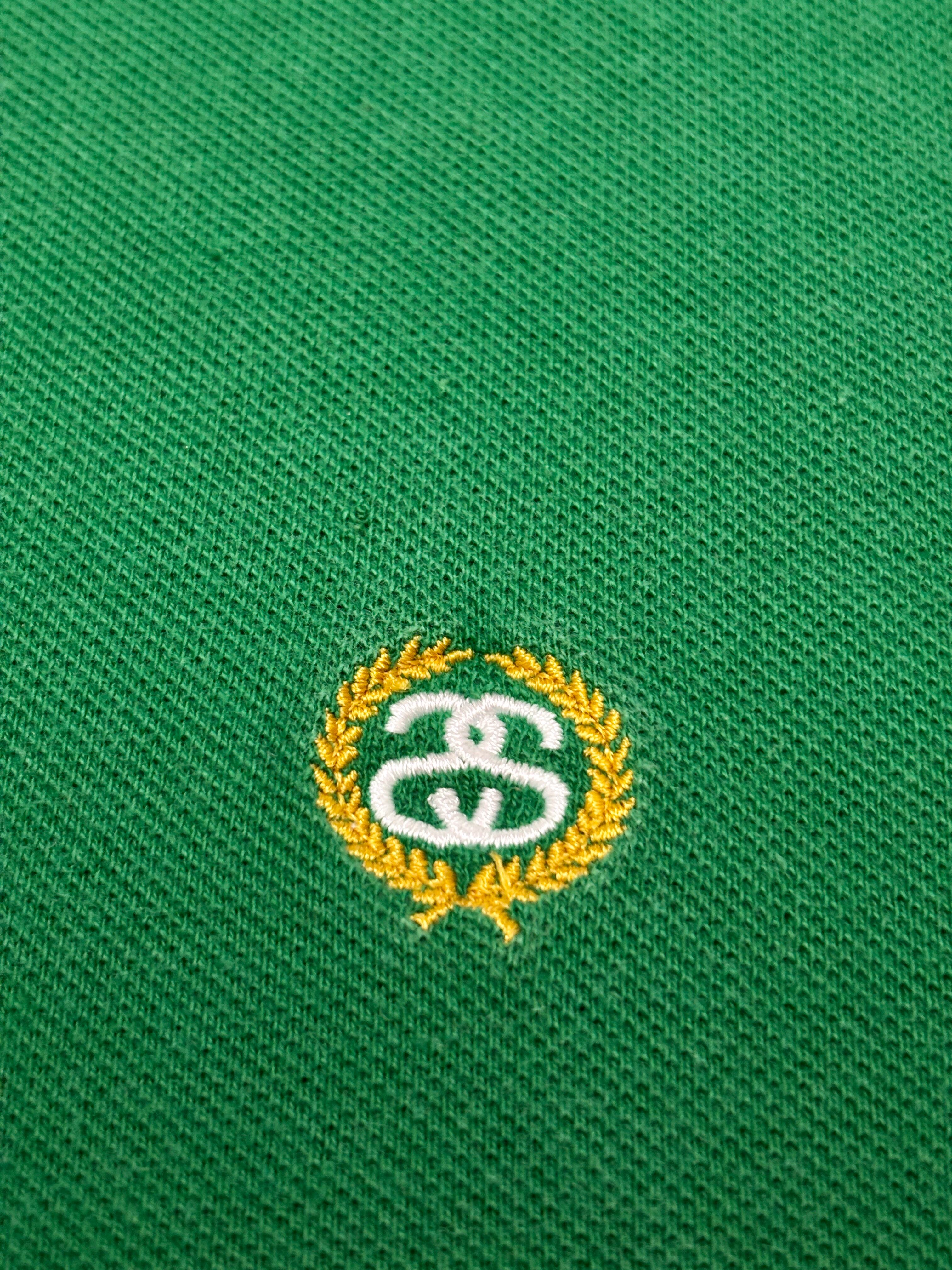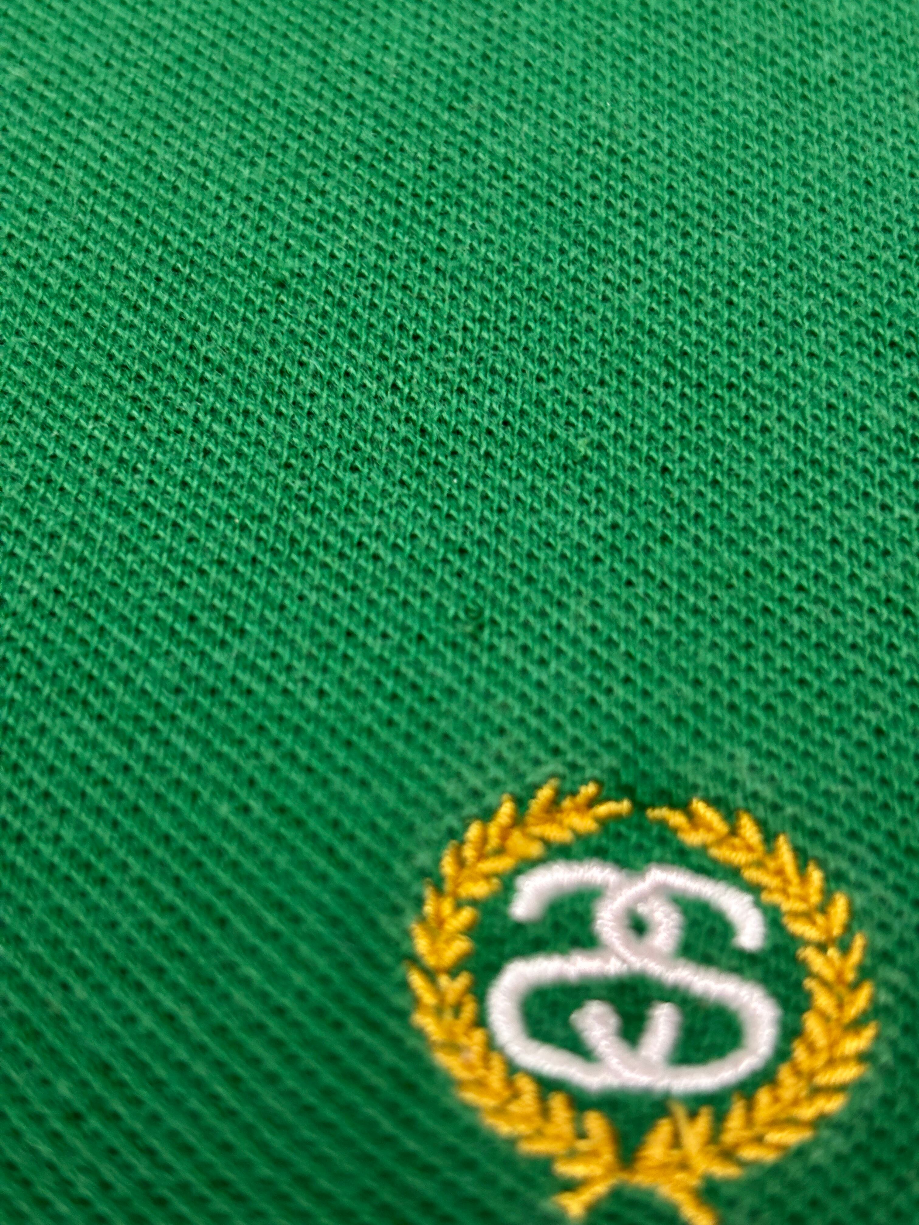 90~00s OLD STUSSY/Logo embroidery Polo Shirt/紺タグ/香港製/M/刺繍ロゴ/ポロシャツ/SSリンクロゴ/月桂樹/グリ-ン/ステューシー/オ-ルドステューシー/古着/ア―カイブ
