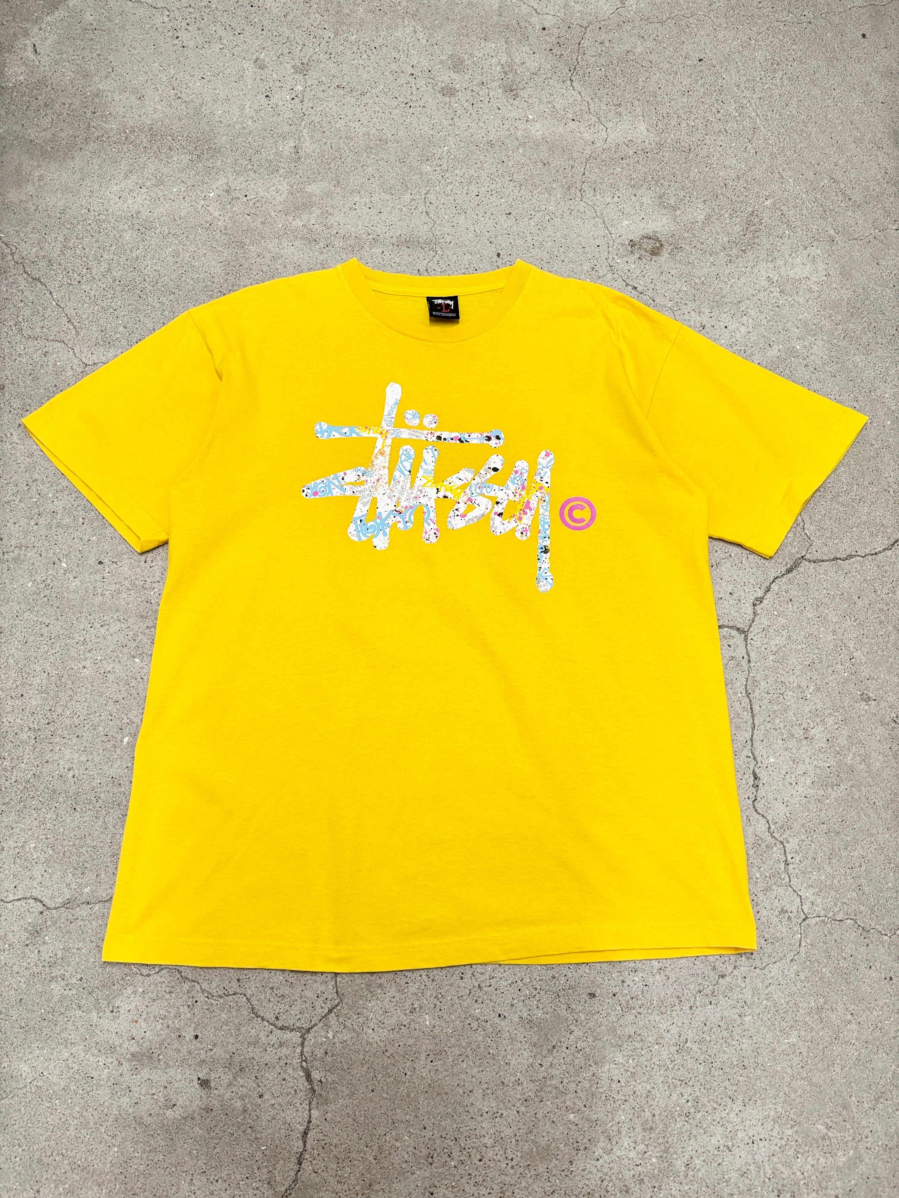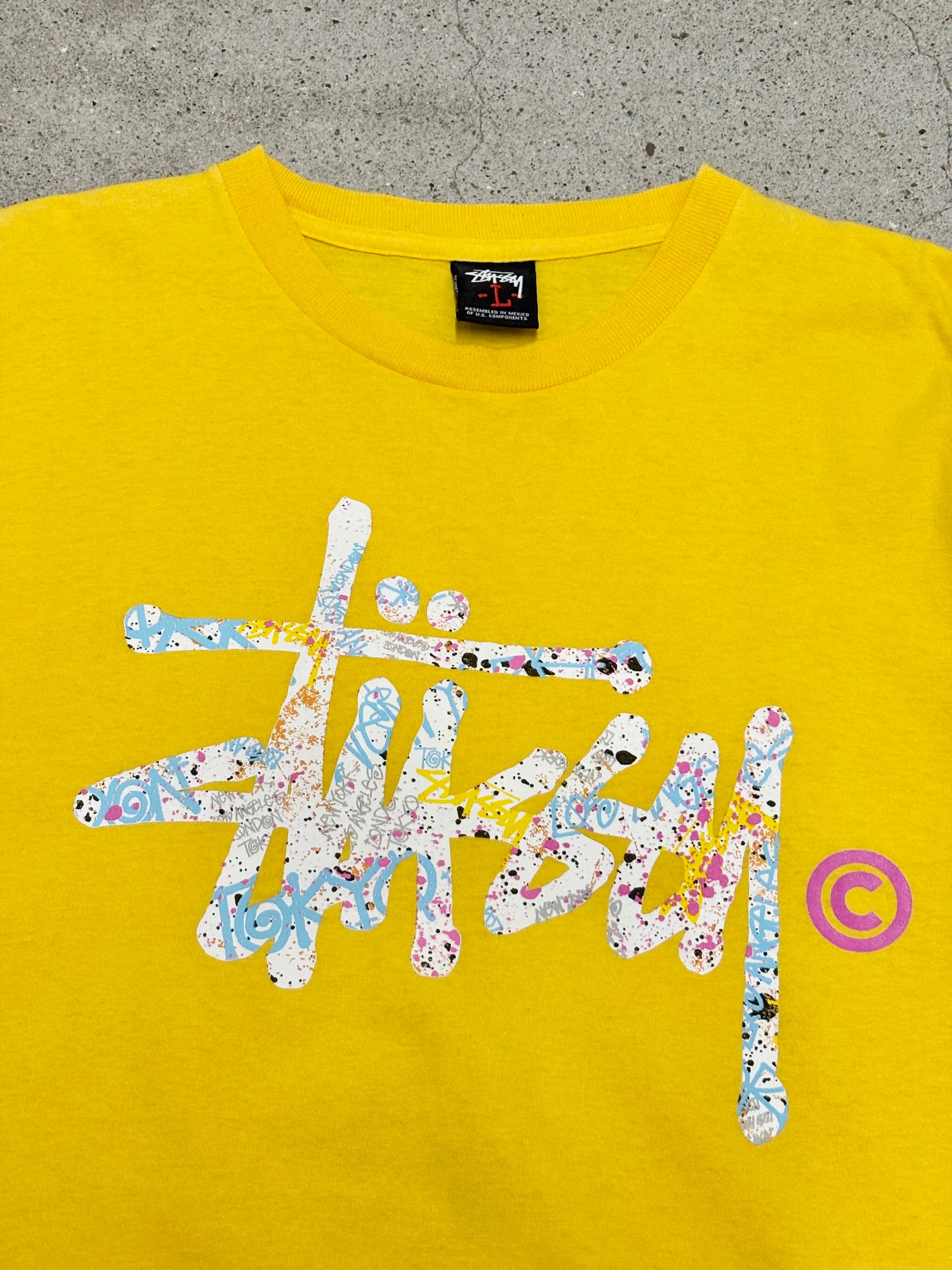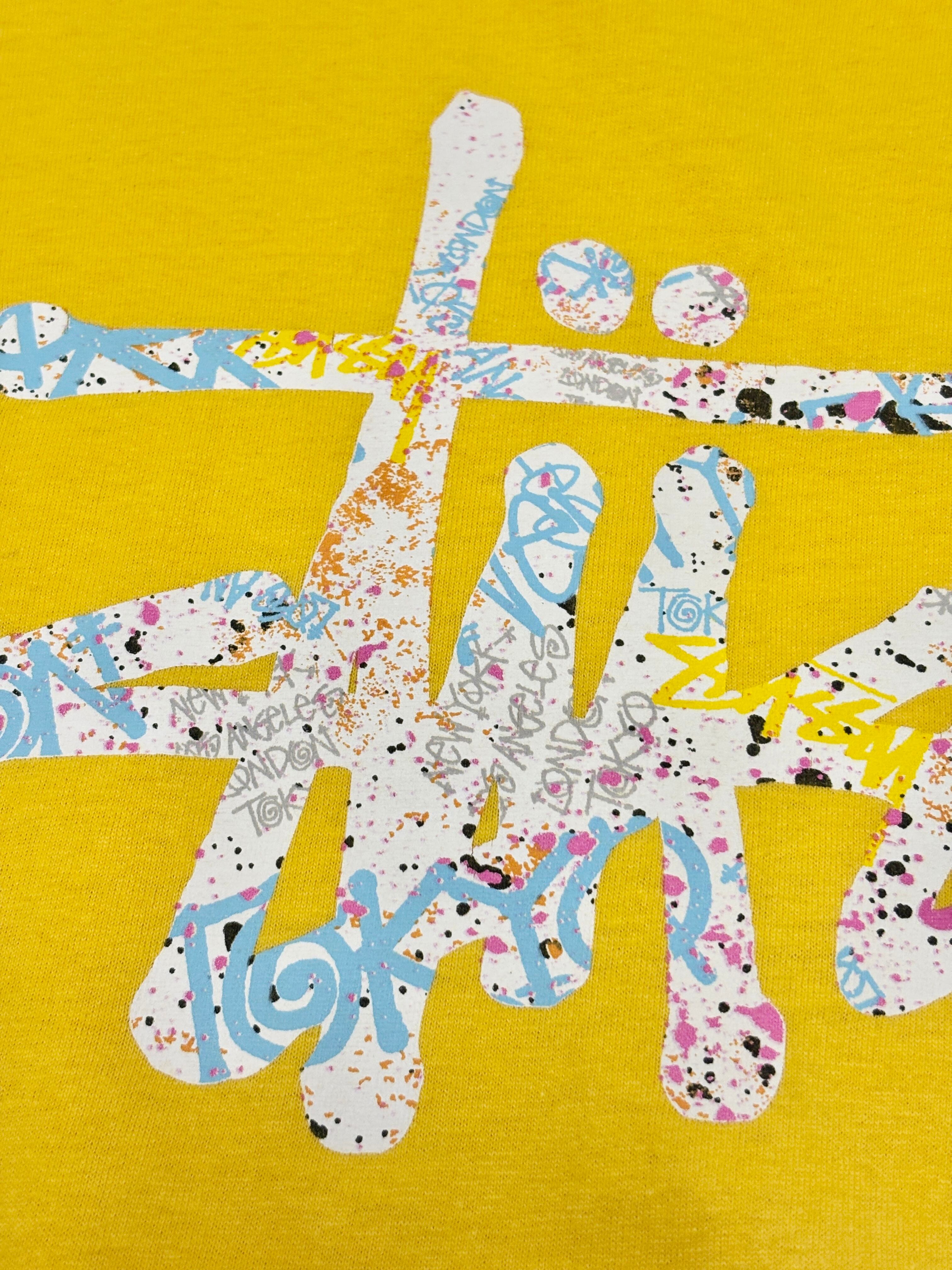 00~10s STUSSY/Stock Logo print Tee/L/ストックロゴプリントTシャツ/4大都市プリント/イエロ-/ステューシー