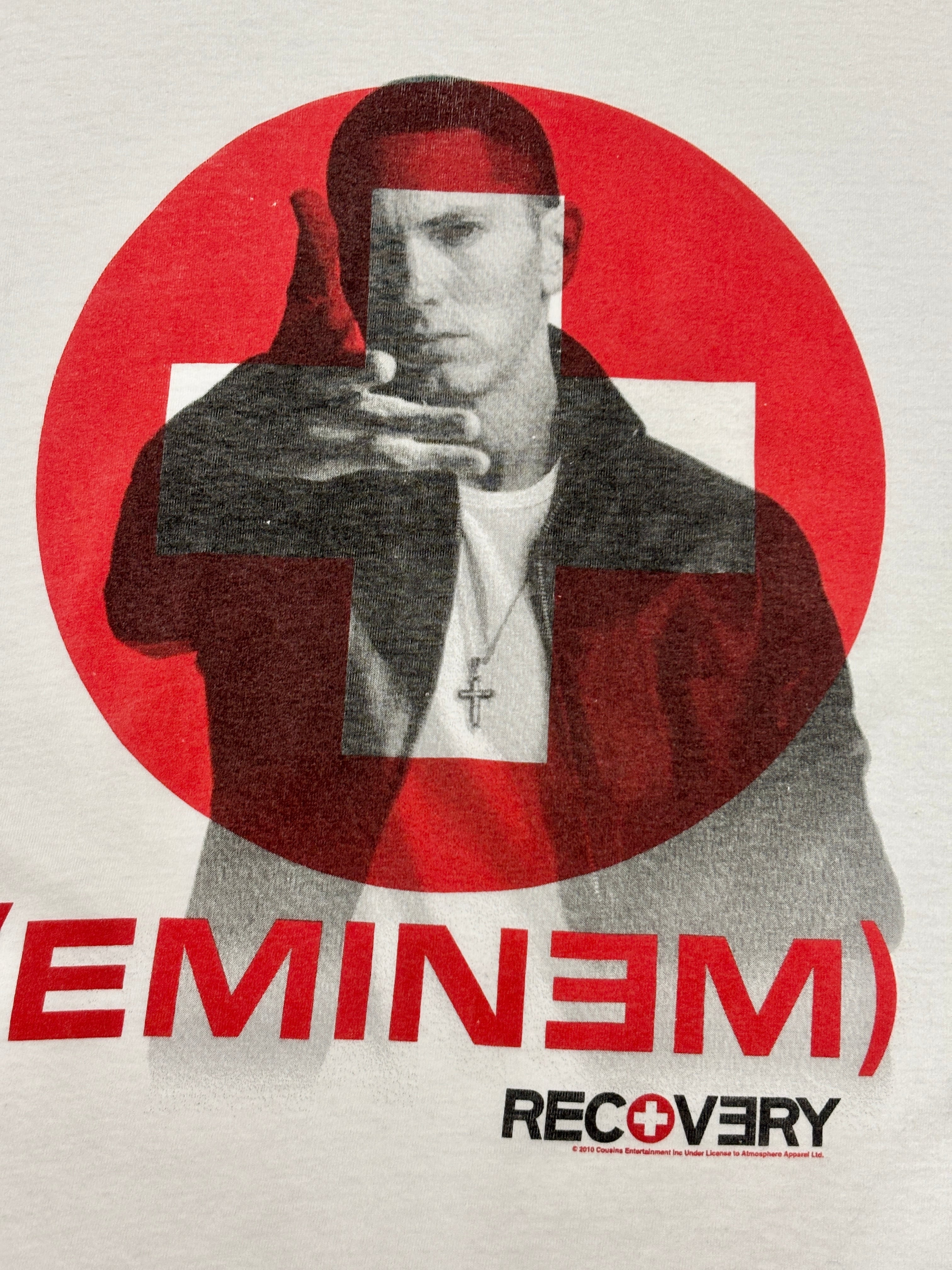 10s EMINEM/RECOVERY Tee/2010年/Hanes/XL/フォトプリントTシャツ/アルバム/ホワイト/エミネム/HIPHOP/ヒップホップ/古着