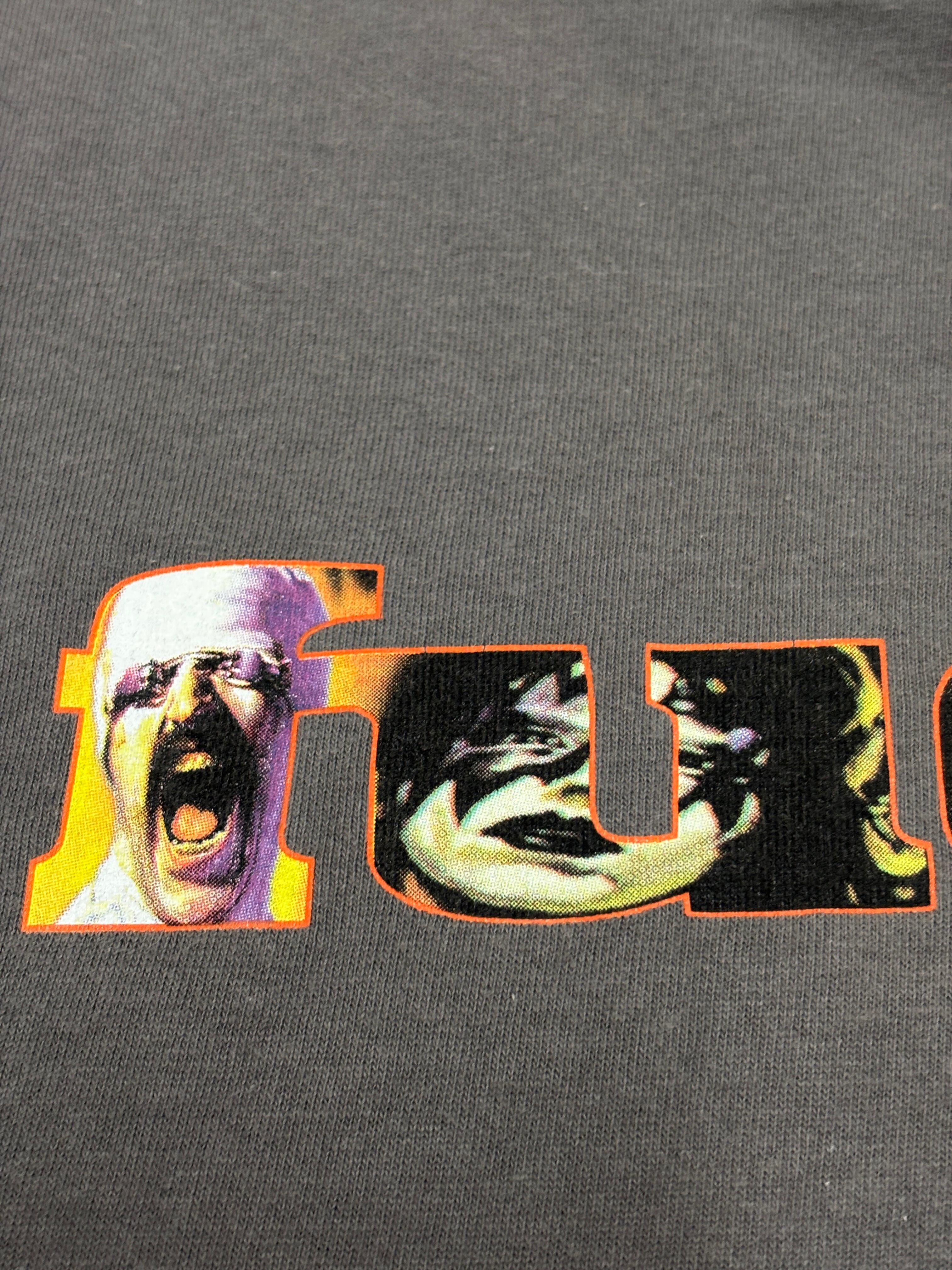 90s FUCT/Logo print Tee/M/ロゴプリントTシャツ/スコーピオンズ/キッス/デビッド ボウイ/アイアンメイデン/グレ-/ファクト/古着/ア―カイブ