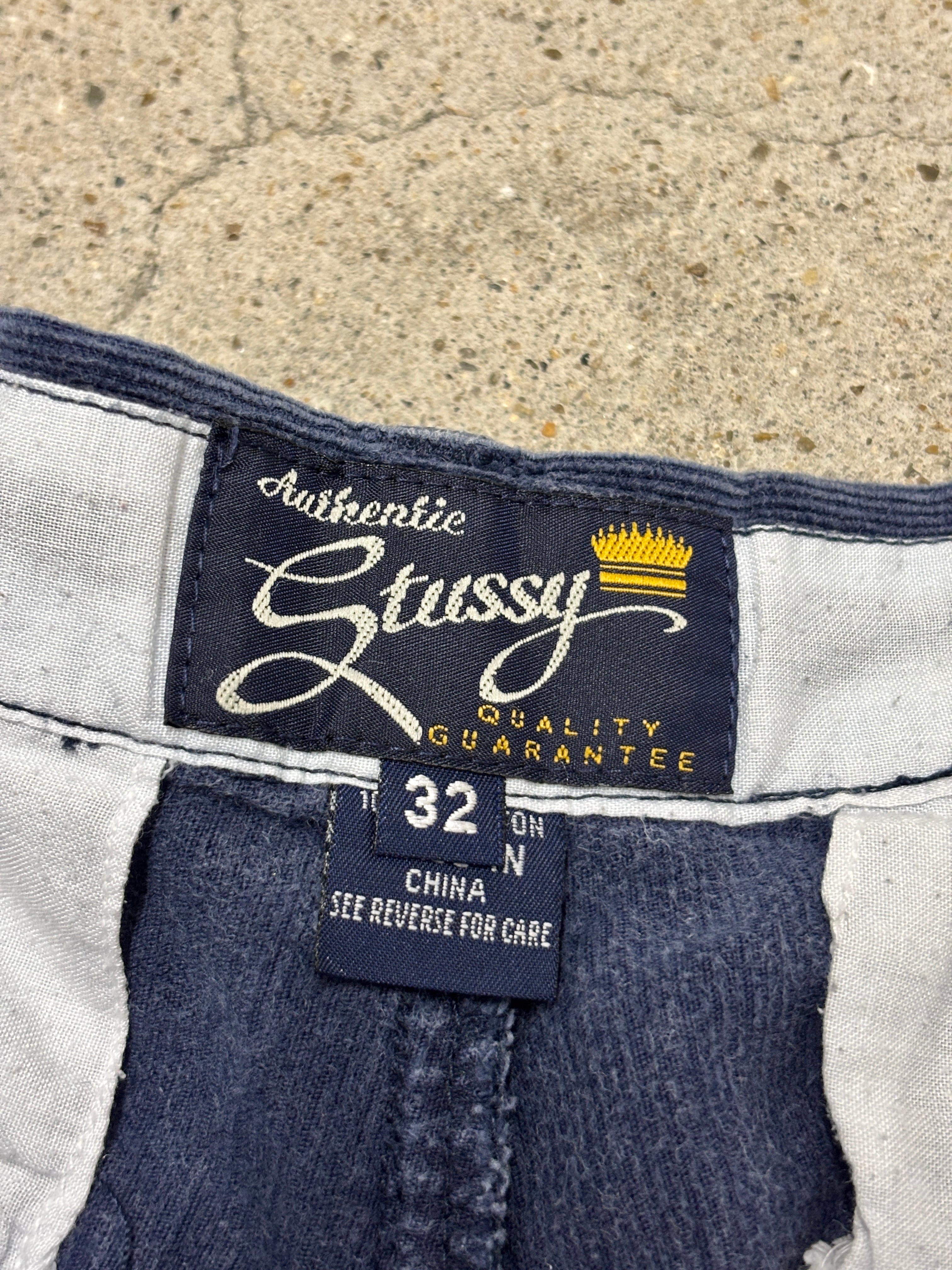 90~00s OLD STUSSY/Corduroy Shorts/紺タグ/W32/コ-デュロイショ-ツ/クラウン/ボ-ルジップ/ショ-トパンツ/ネイビ-/ステューシ-/オ-ルドステューシー/古着/ア―カイブ