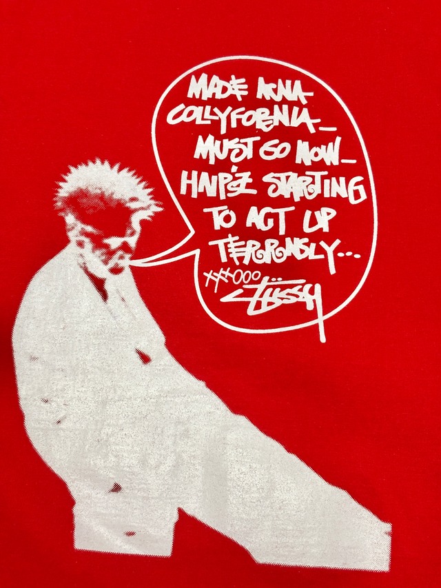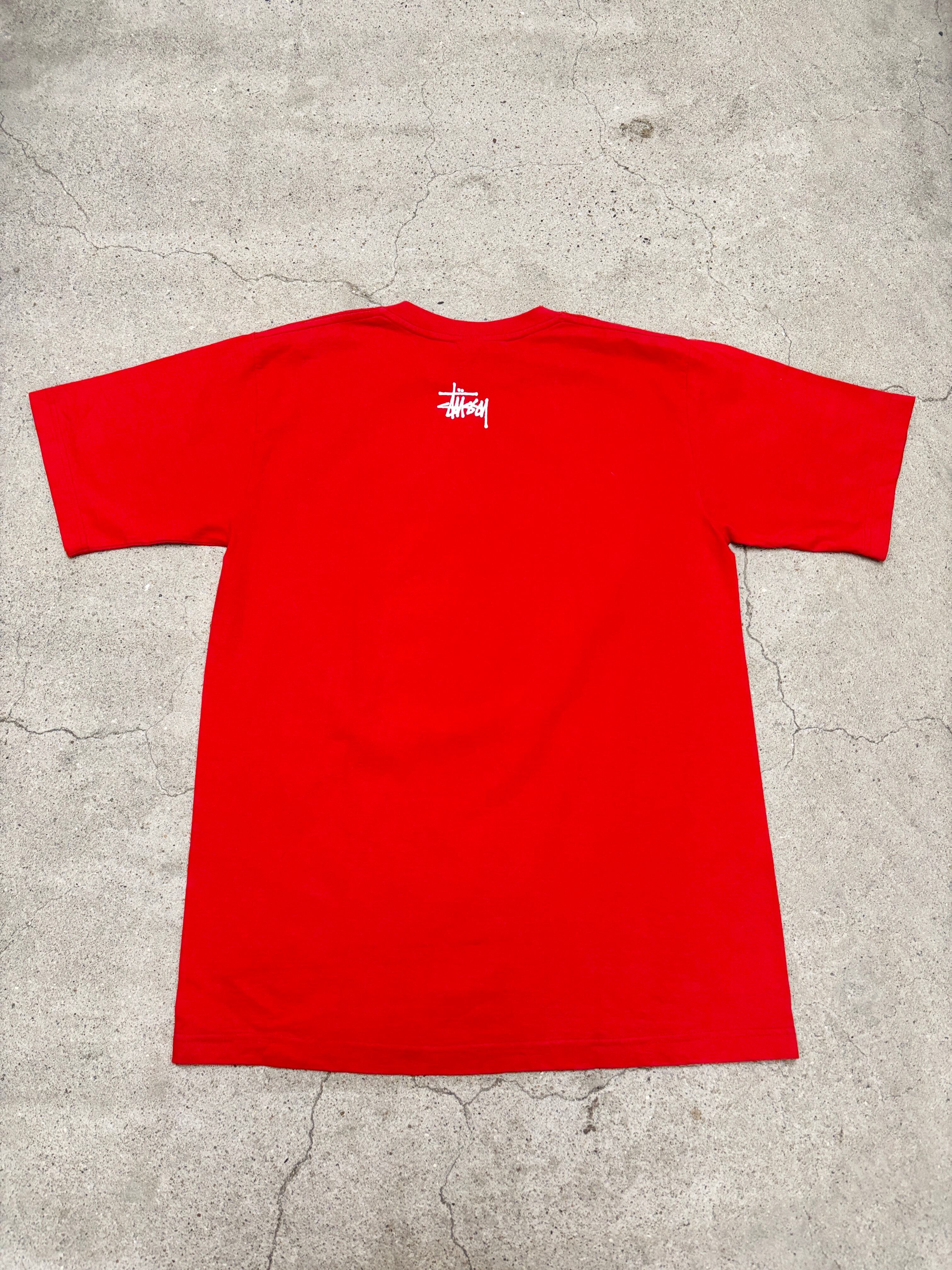 00s Bootleg STUSSY/Crazy Hair Tee/USA製/紺タグ/L/フォトプリントTシャツ/ロゴプリント/ストックロゴ/レッド/ブートレグ/ステューシー/吹き出しフォント/古着/ア―カイブ