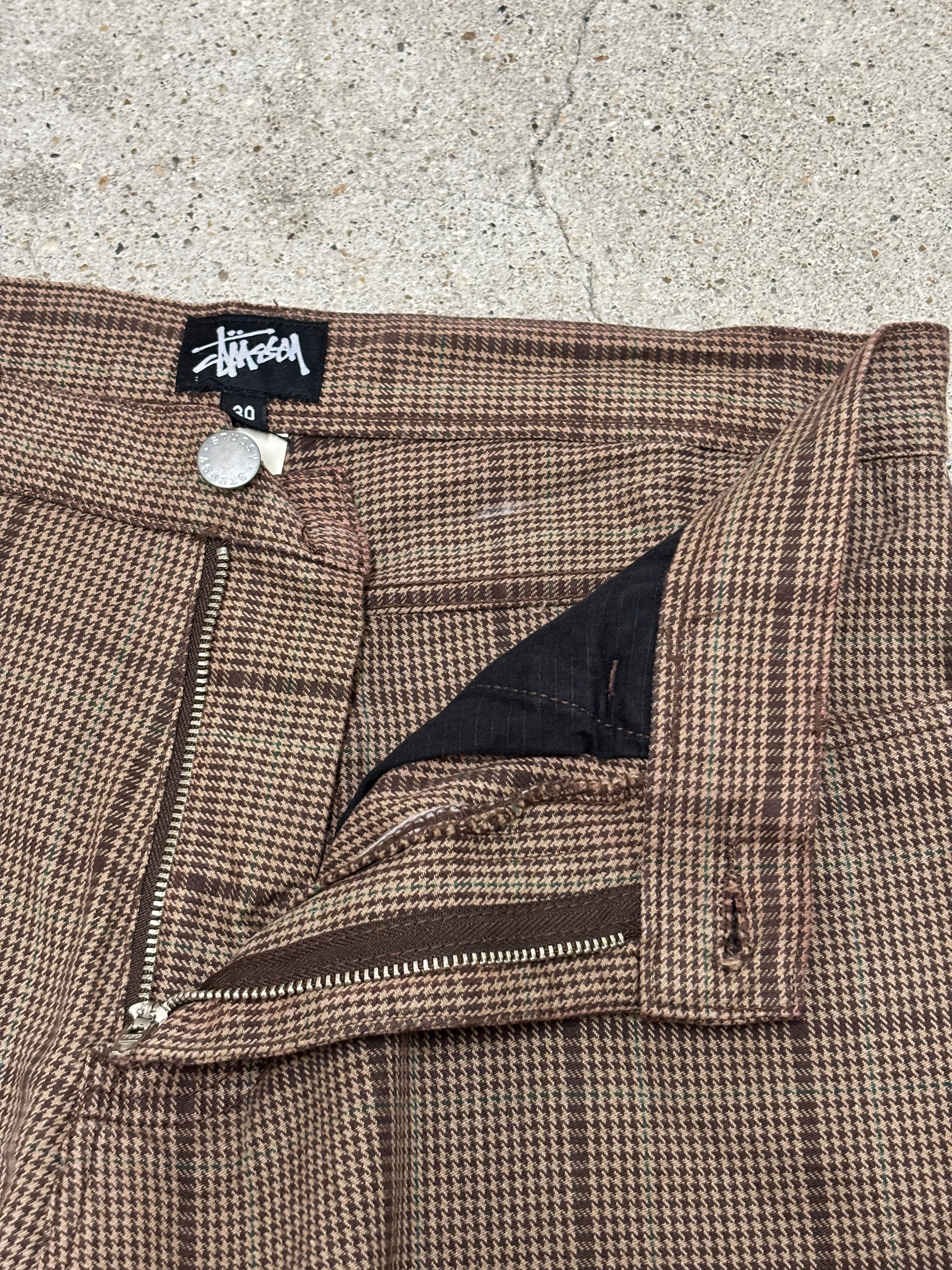 00~10s STUSSY/Houndstooth pants/W30/千鳥格子柄パンツ/ボトム/チェック柄/ブラウン/ステューシ-