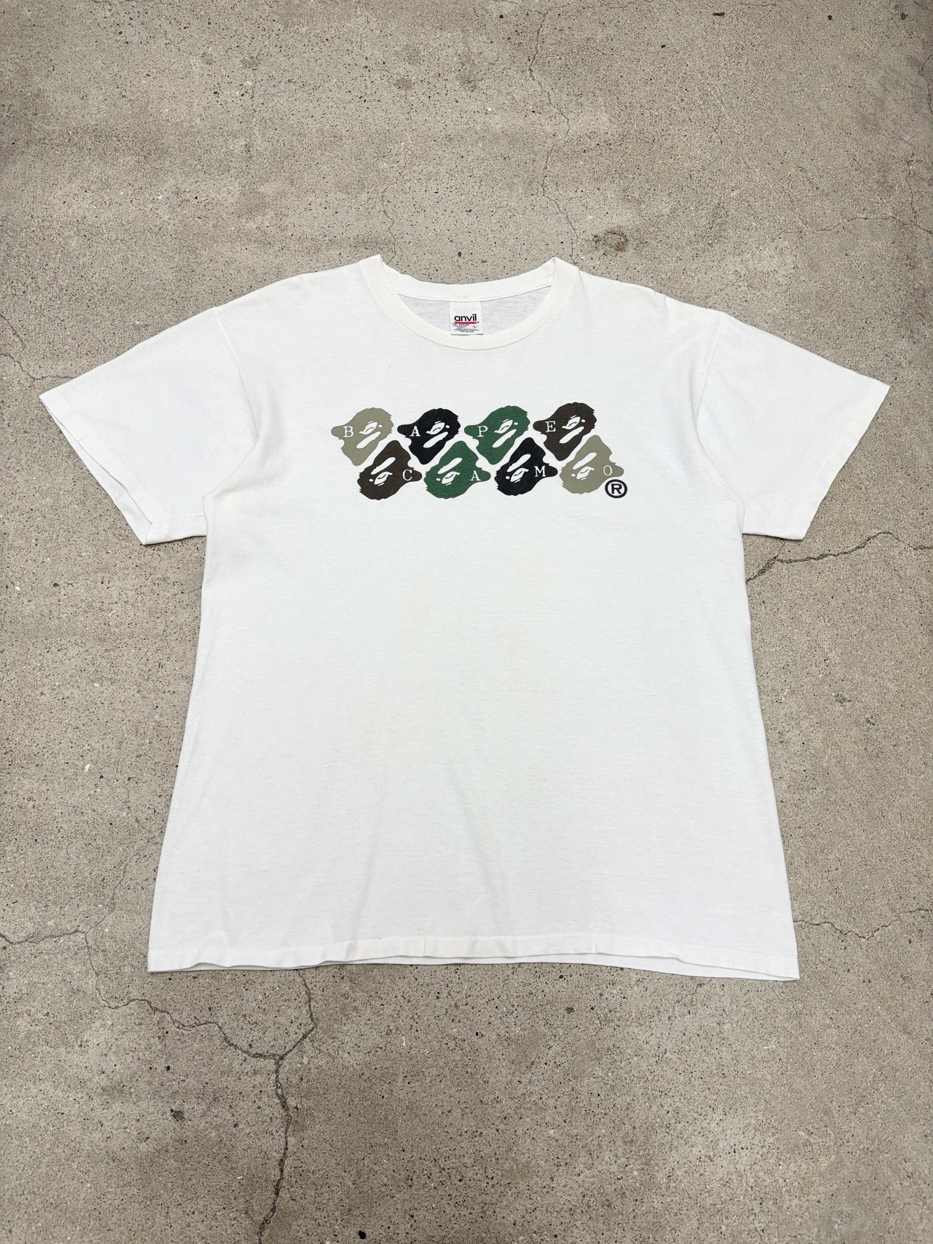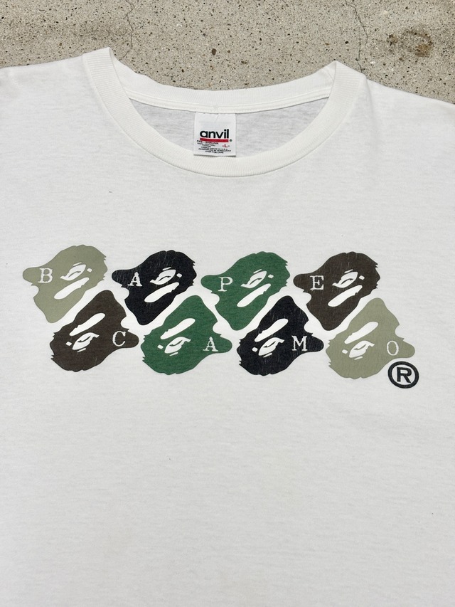 90s A BATHING APE/BAPE CAMO print Tee/anvil/L/ベイプカモプリントTシャツ/フェイスプリント/ホワイト/アベイシングエイプ/裏原/古着/ア―カイブ