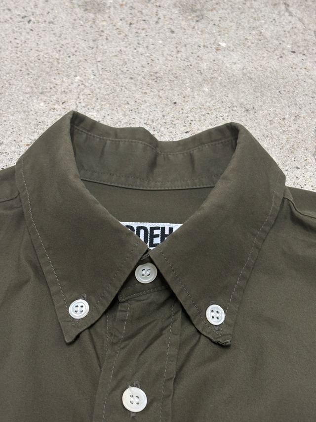 00s GOODENOUGH/Logo print BD Shirt/S(M相当)/ロゴプリントボタンダウンシャツ/長袖シャツ/カーキ/GDEH/グッドイナフ/裏原/古着/ア―カイブ