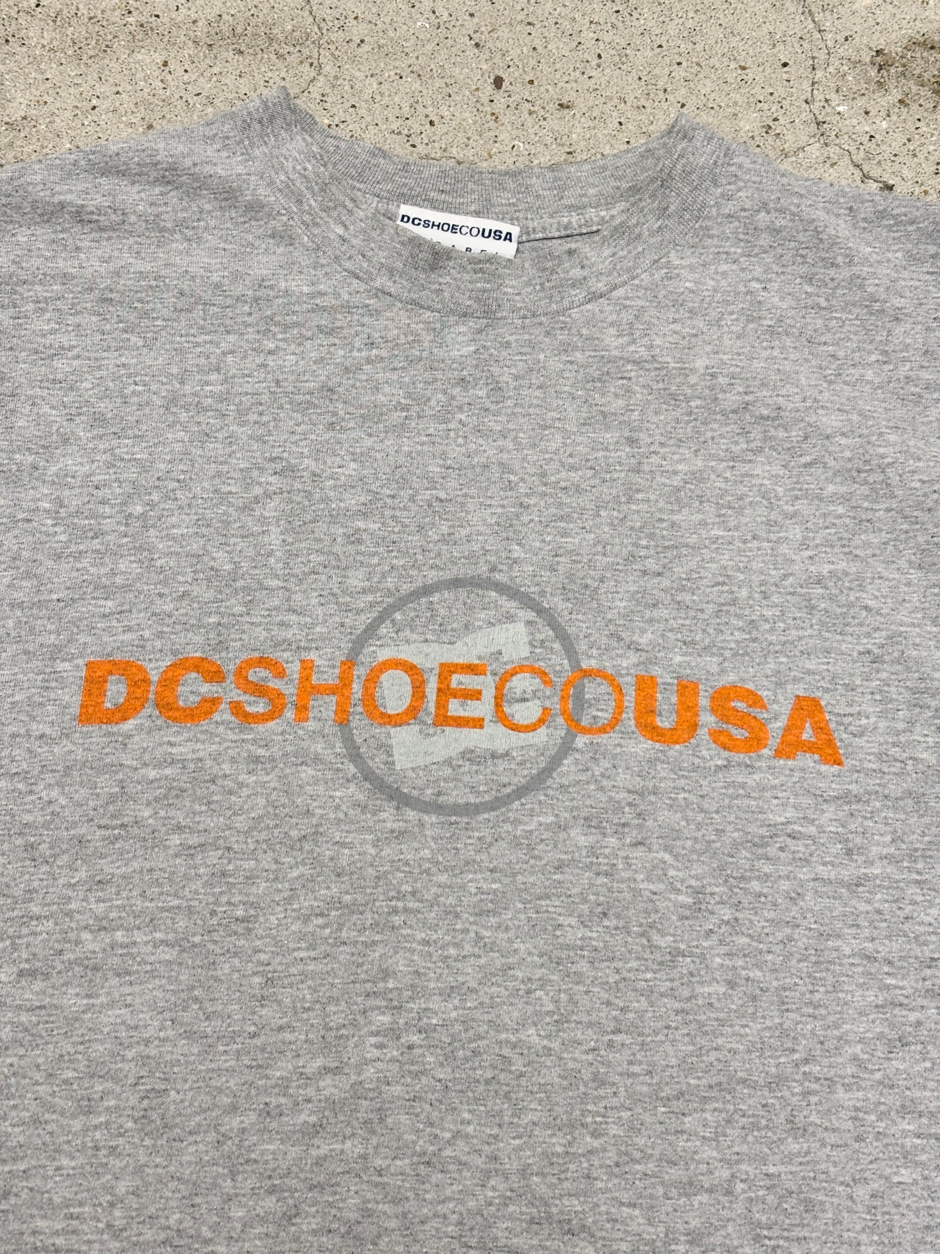 90~00s DC SHOE/Logo print Tee/USA製/S/ロゴプリントTシャツ/グレ-/オレンジ/ディ-シ-