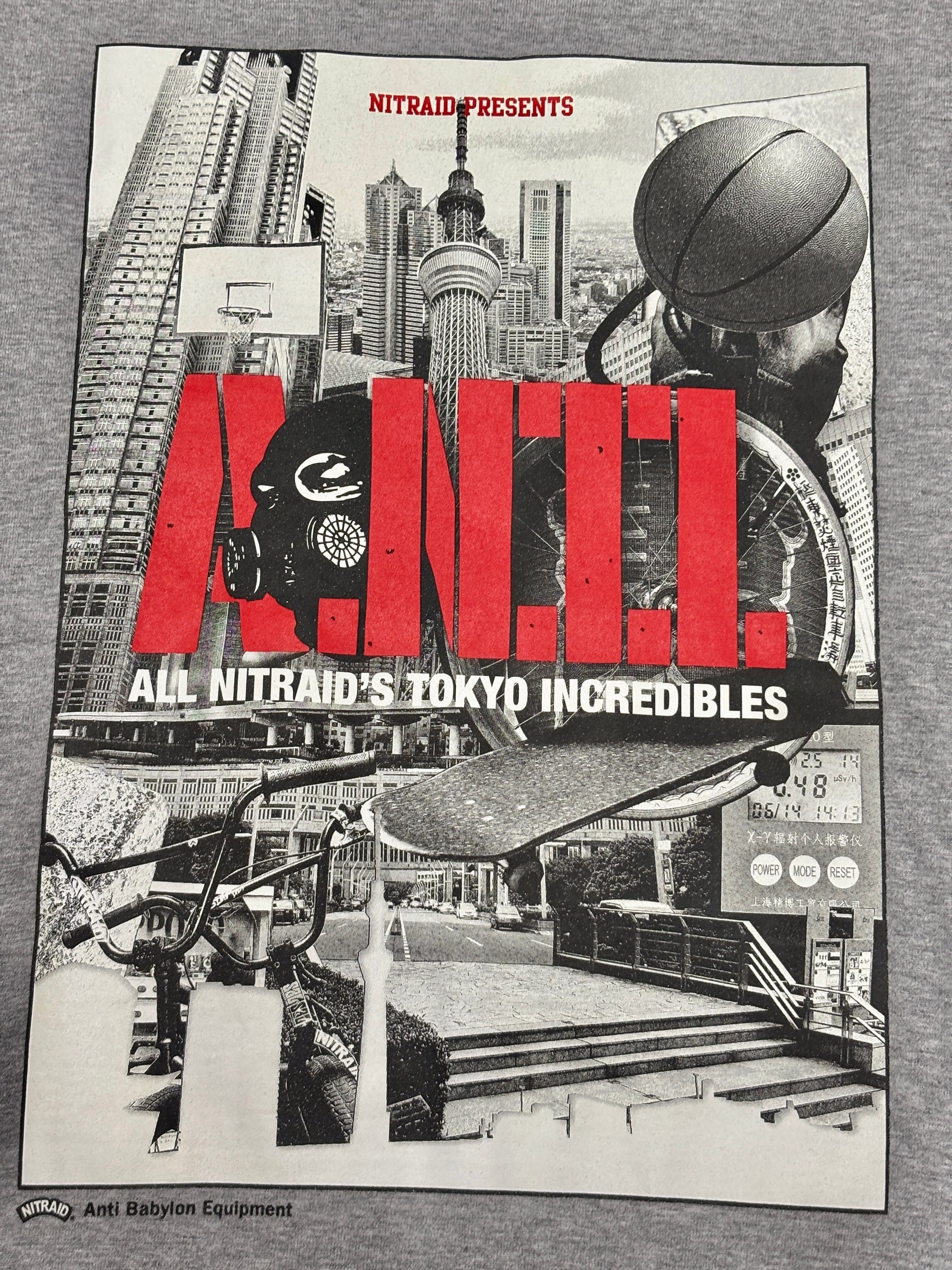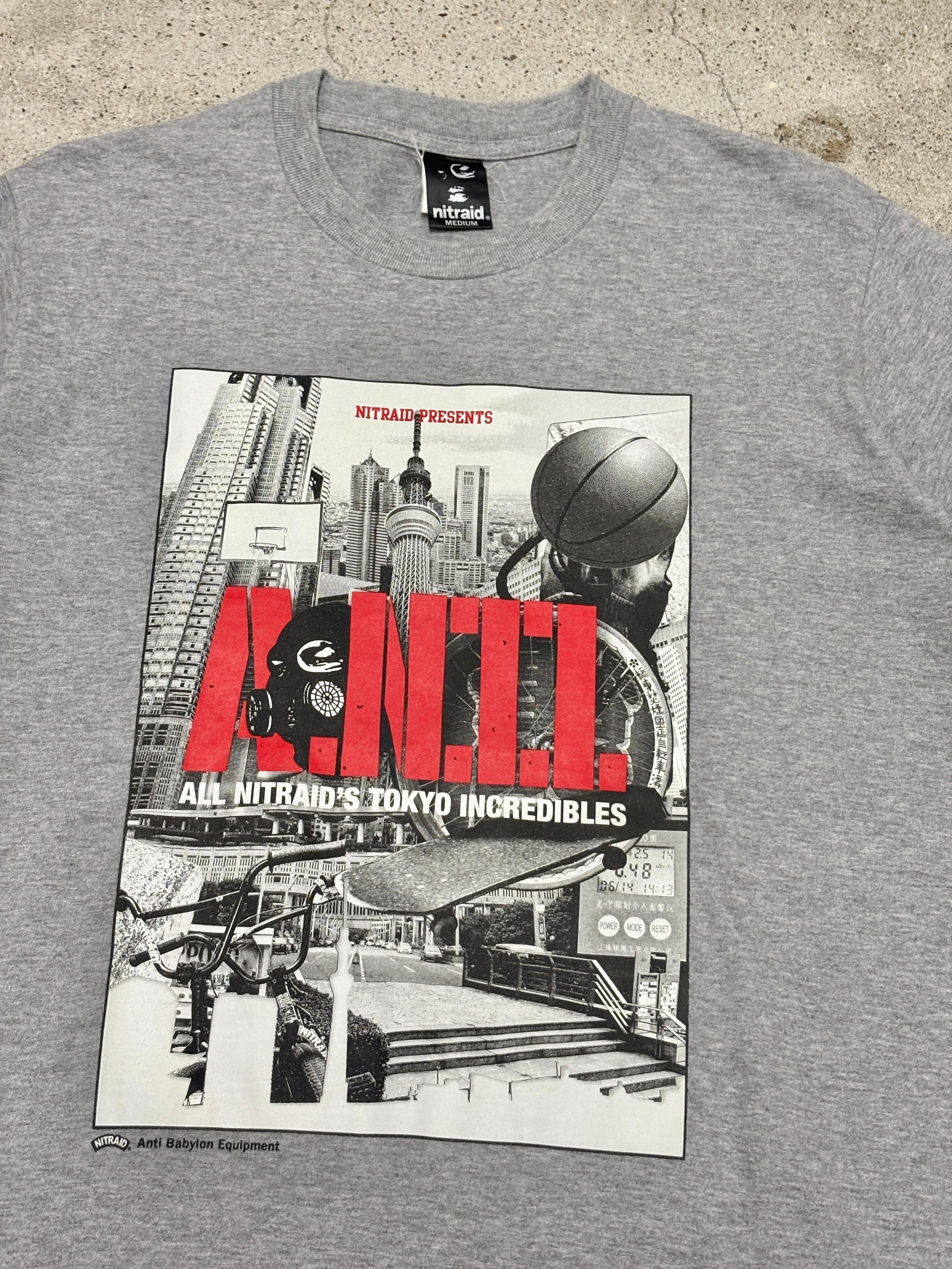 00s NITRAID/Graphic print Tee/M/グラフィックプリントTシャツ/TOKYO/ロゴプリント/グレ-/ナイトレイド/NITRO/NITRO MICROPHONE UNDERGROUND/古着/ア―カイブ