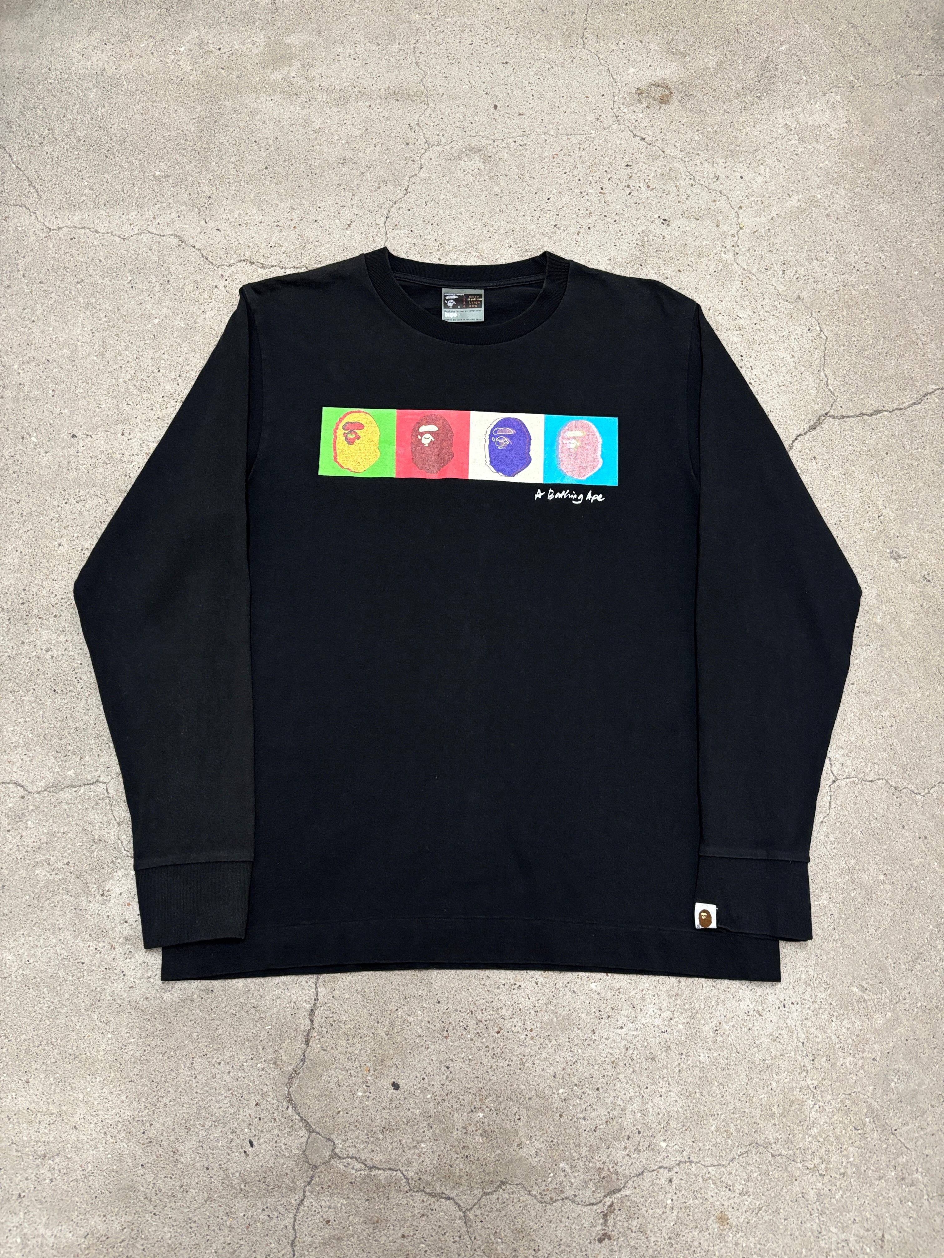 00s A BATHING APE/Andy Warhol parody print L/S Tee/日本製/M/アンディーウォーホールパロディープリント/ロンT/長袖Tシャツ/BAPE/ブラック/アベイシングエイプ/裏原/古着/ア―カイブ