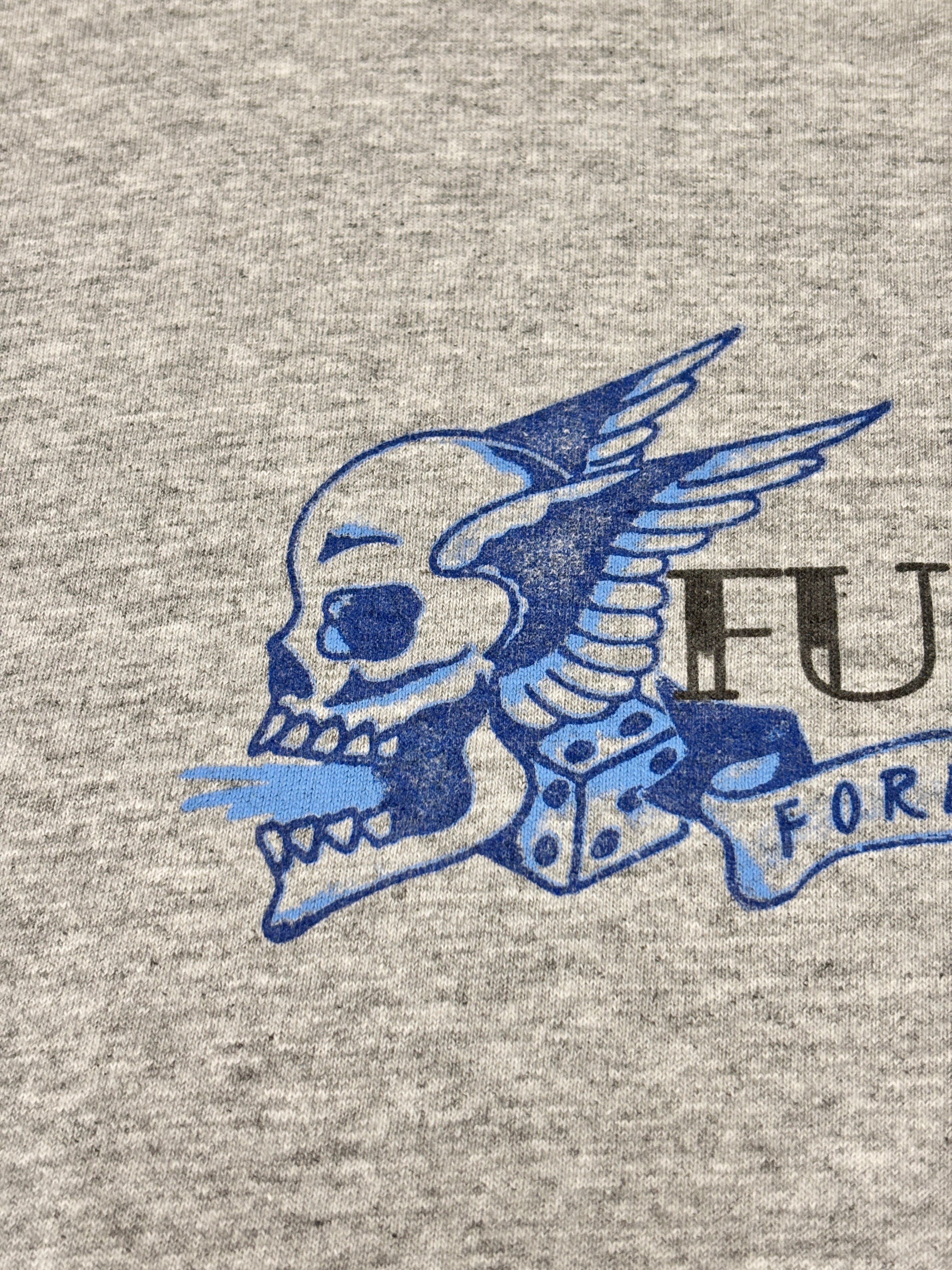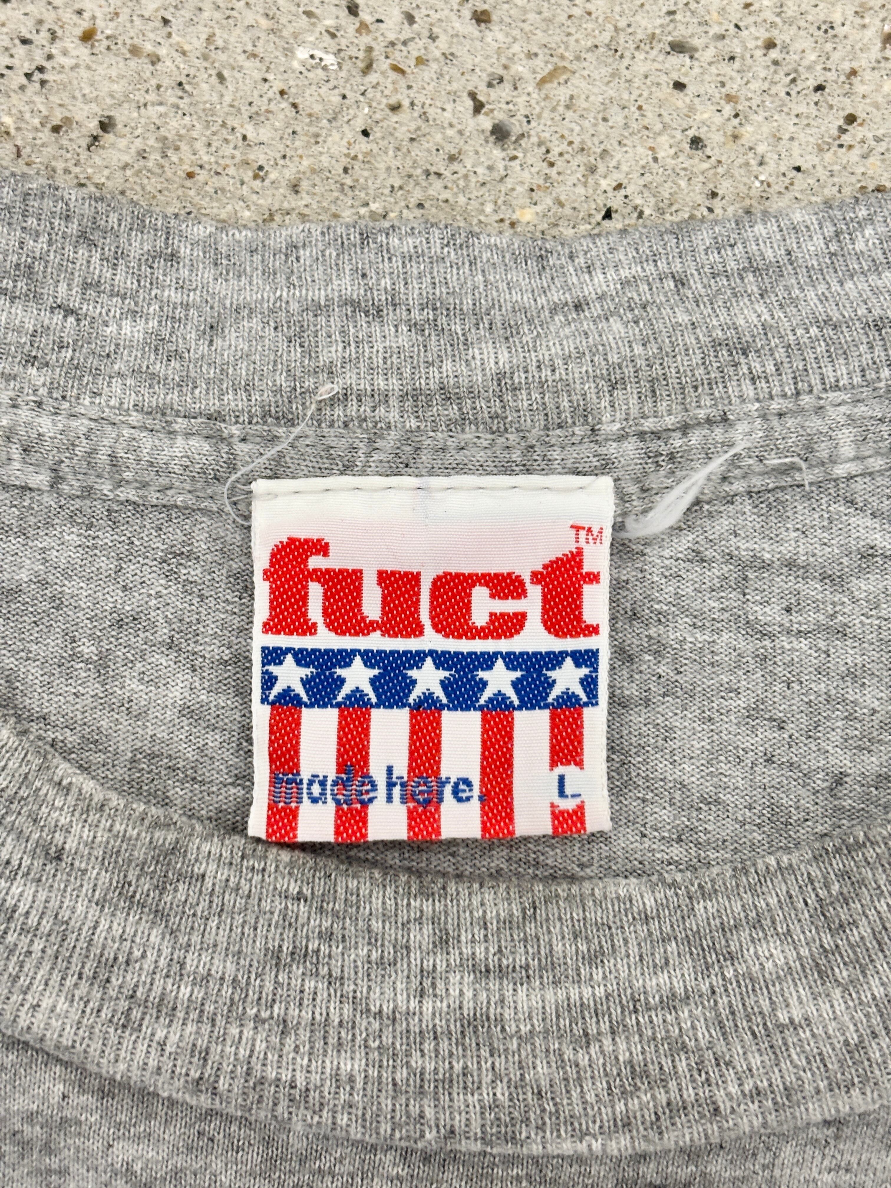 90s FUCT/Skull print Tee/USA製/L/スカルプリントTシャツ/ロゴプリント/グレ-/ファクト