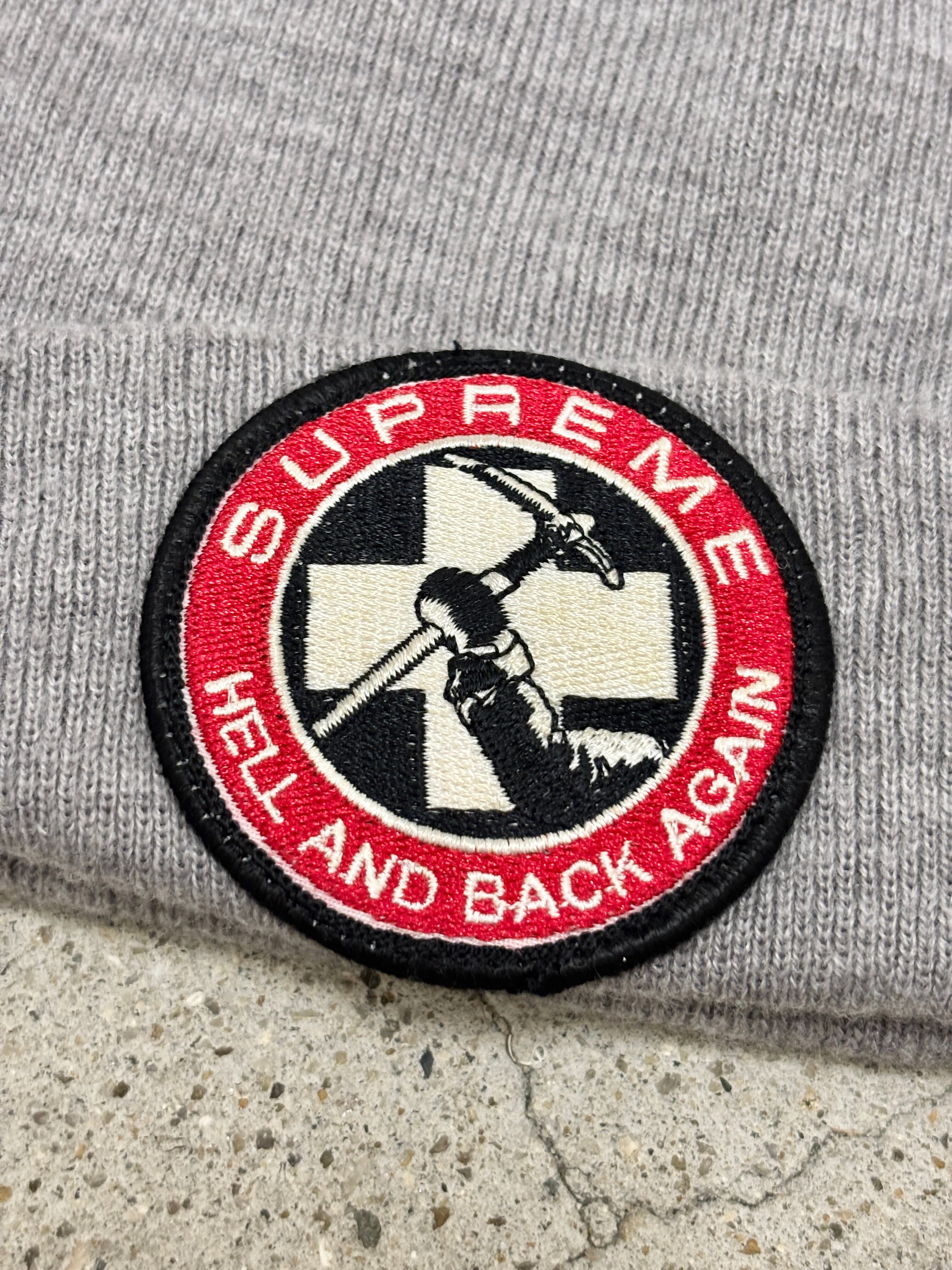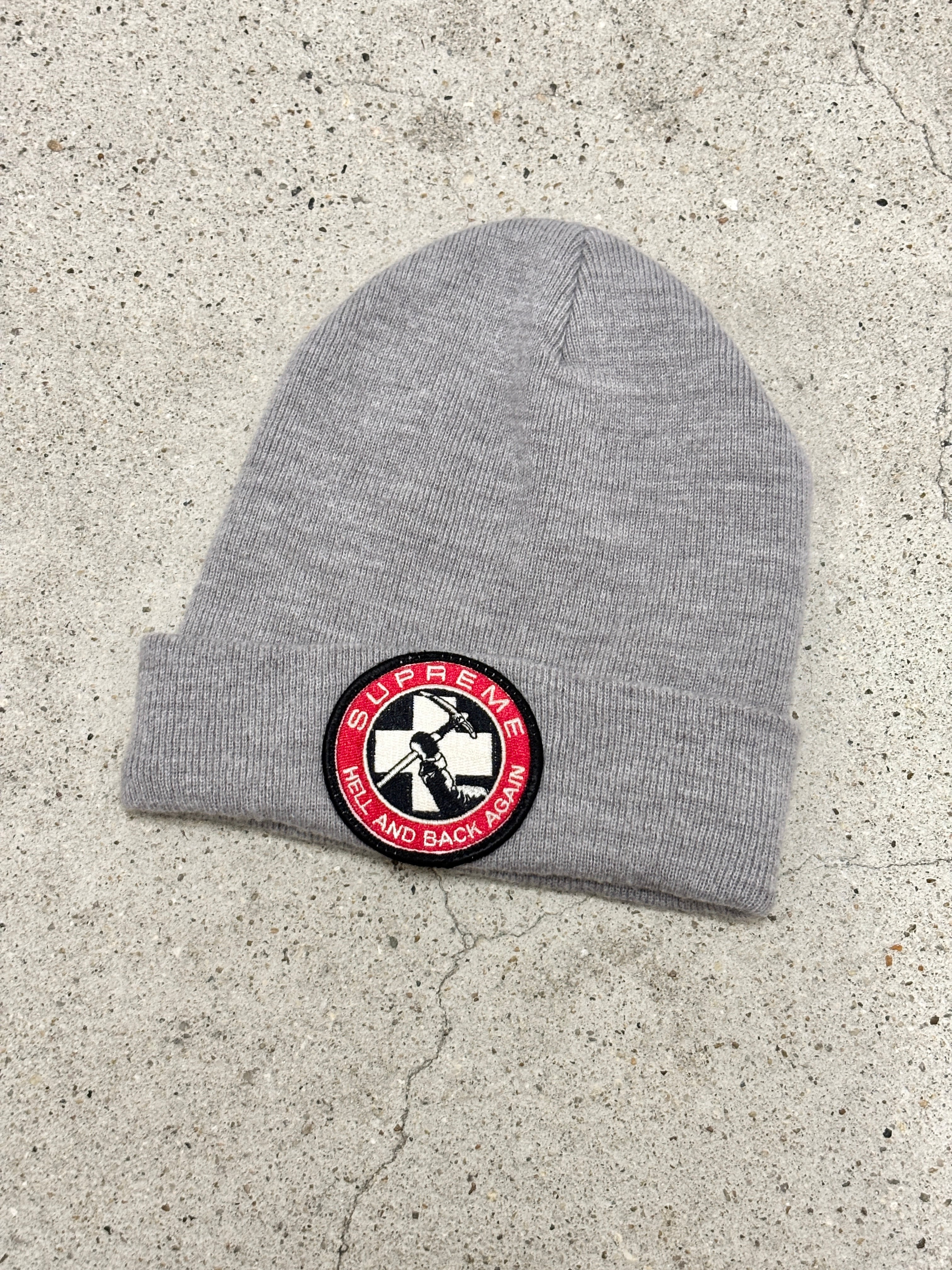 00s SUPREME/08AW HELL AND BACK AGAIN Beanie/Canada製/Free/ロゴパッチビ-ニ-/ニットキャップ/ニット帽/グレ-/シュプリ-ム