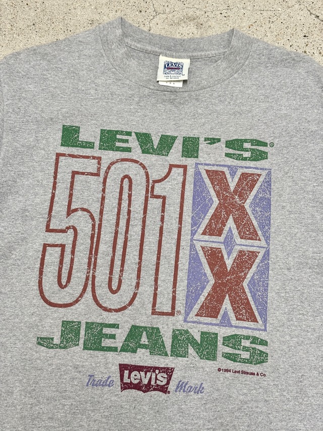 90s Levi`s/501XX print Tee/USA製/1994年/M/ロゴプリントTシャツ/グレ-/リーバイス/アメカジ/古着
