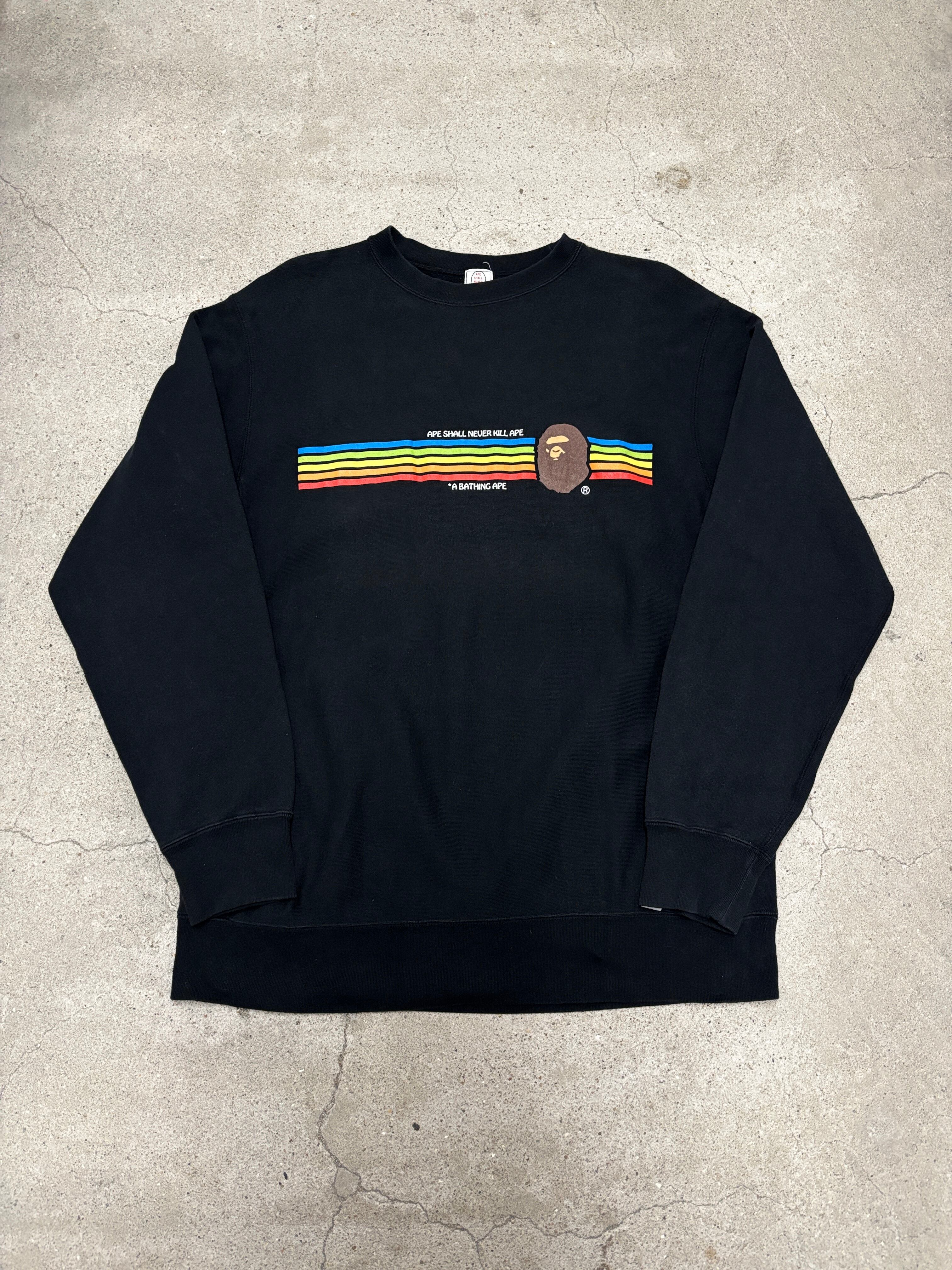 90~00s A BATHING APE/A.S.N.K.A print Sweat/初期タグ/L/ロゴプリントスウェット/ビッグフェイス/BAPE/ブラック/アベイシングエイプ/裏原/古着/ア―カイブ