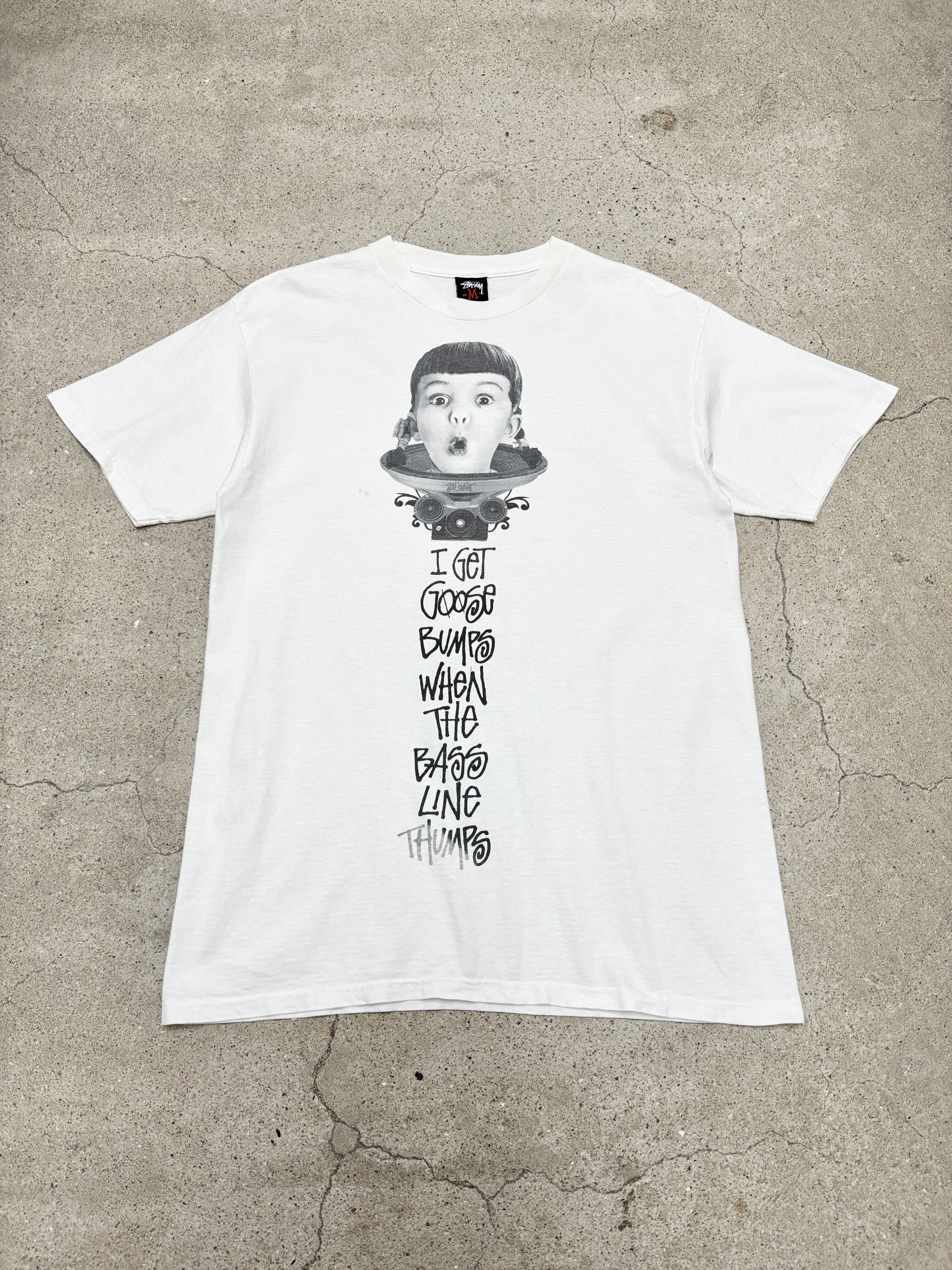 00~10s STUSSY/I GET GOOSE BUMPS Tee/M/グラフィックプリントTシャツ/キッズフォト/ショ-ンフォント/ホワイト/ステューシ-/オ-ルドステューシー/古着/ア―カイブ