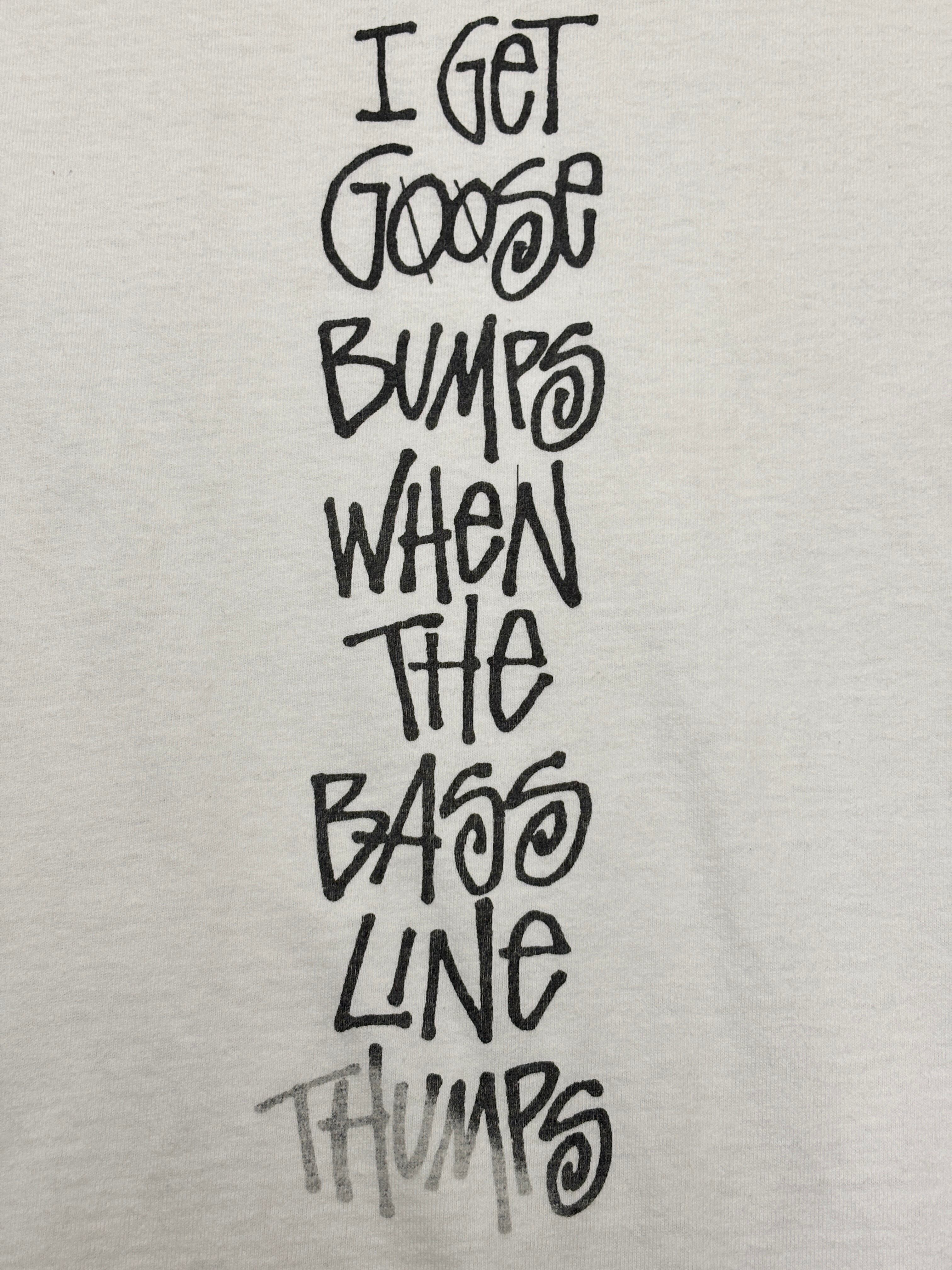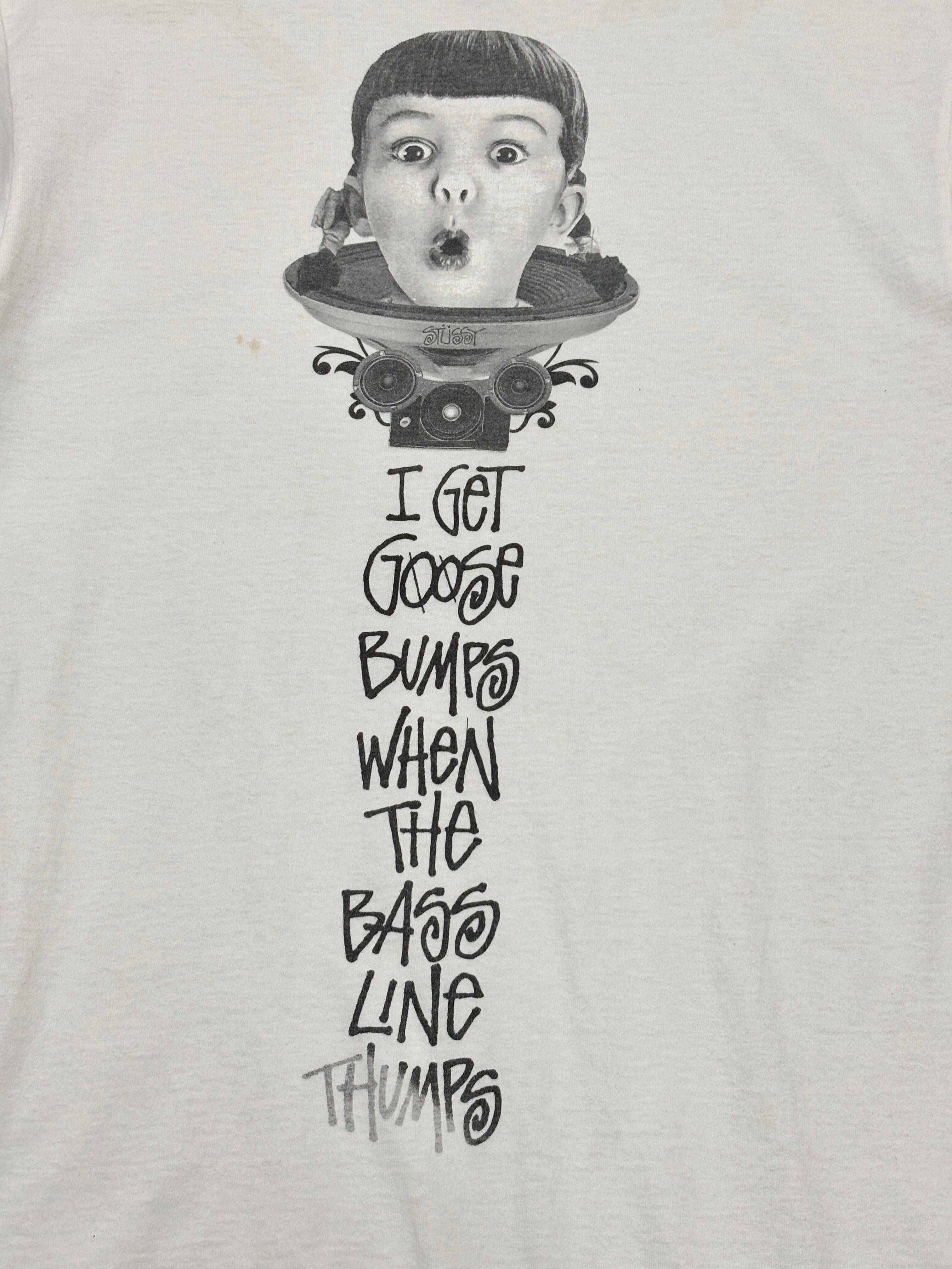 00~10s STUSSY/I GET GOOSE BUMPS Tee/M/グラフィックプリントTシャツ/キッズフォト/ショ-ンフォント/ホワイト/ステューシ-/オ-ルドステューシー