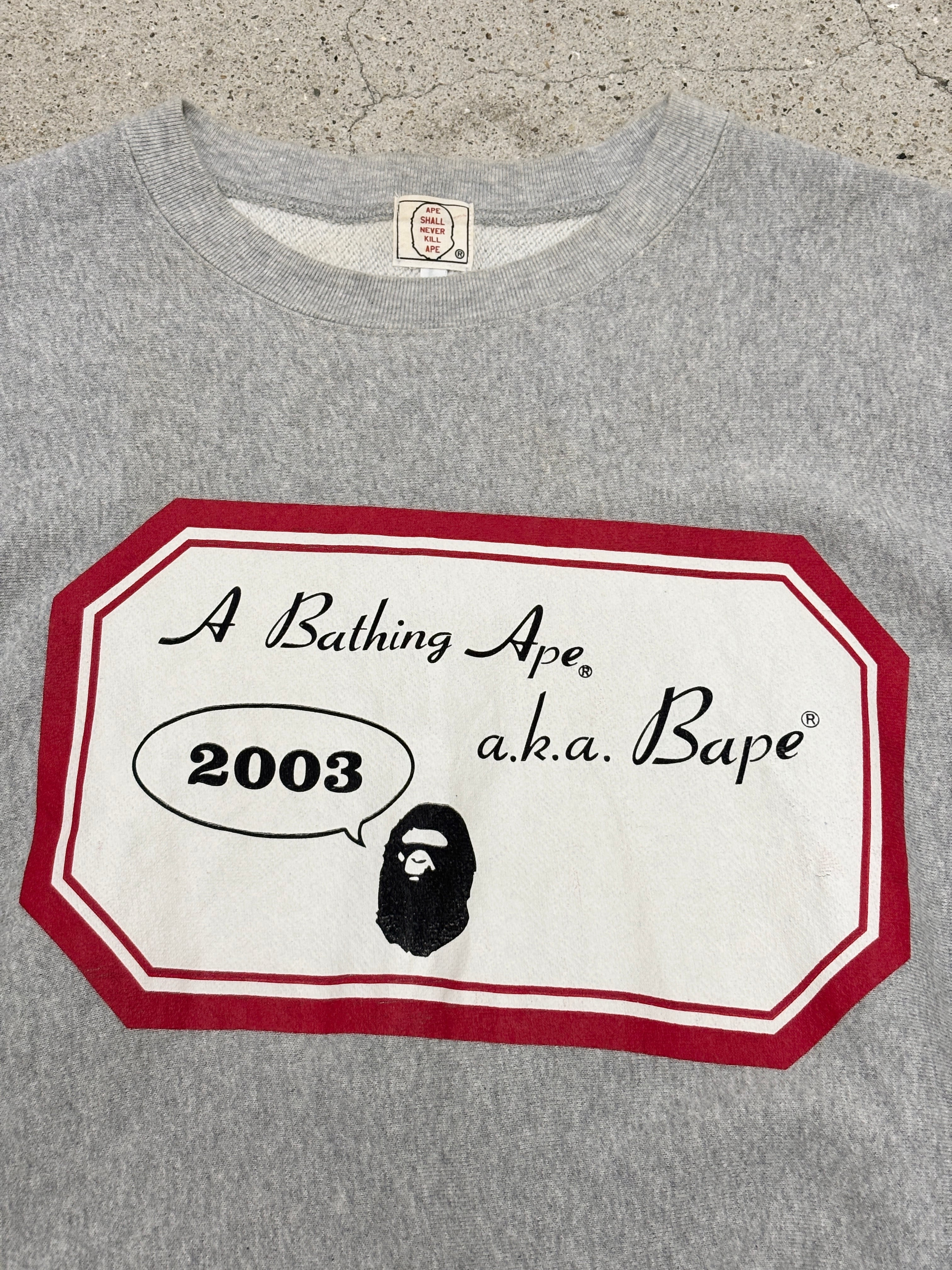 00s A BATHING APE/Logo print Sweat/2003年/M/ロゴプリントスウェット/a.k.a Bape/グレ-/アベイシングエイプ