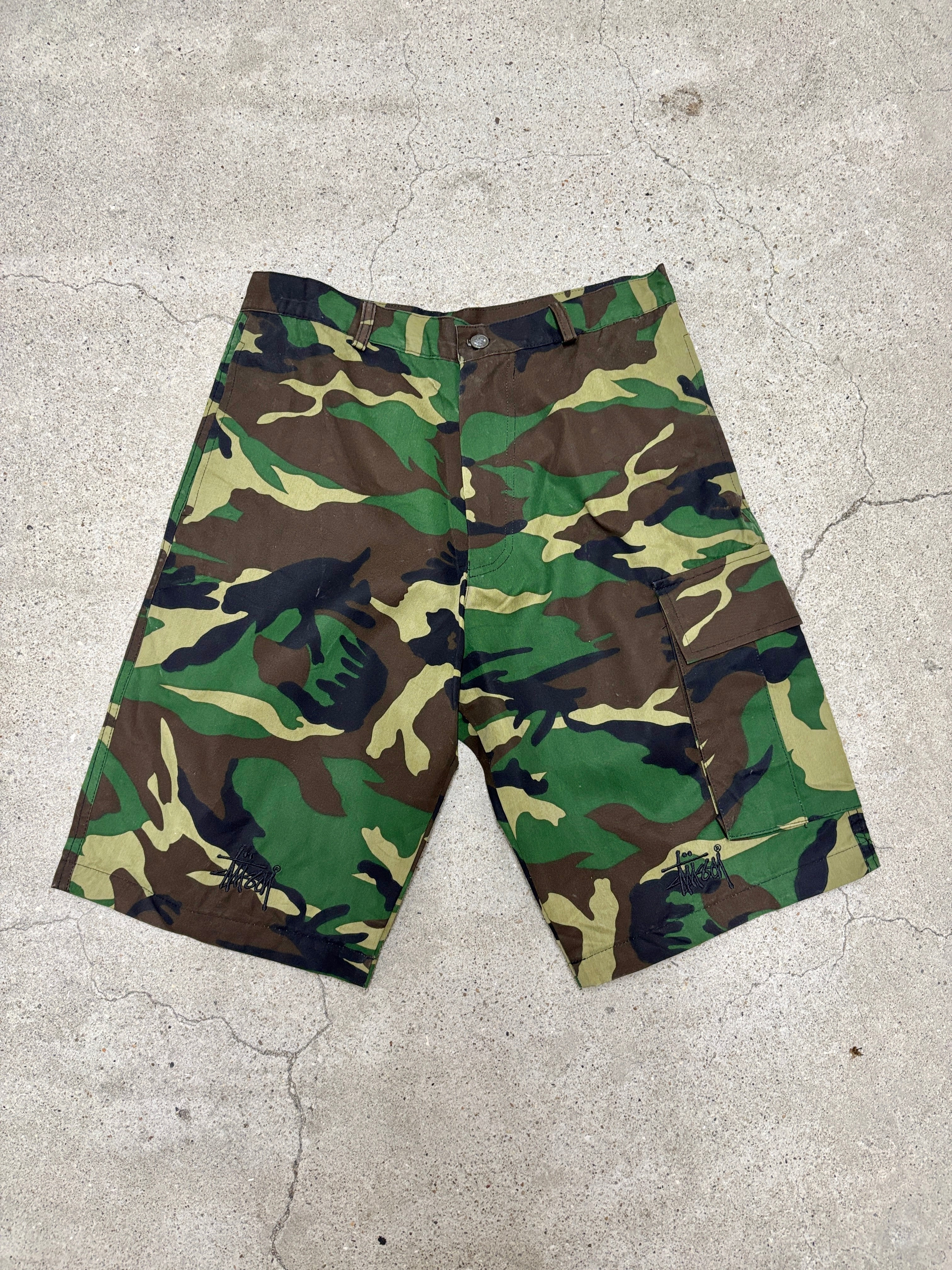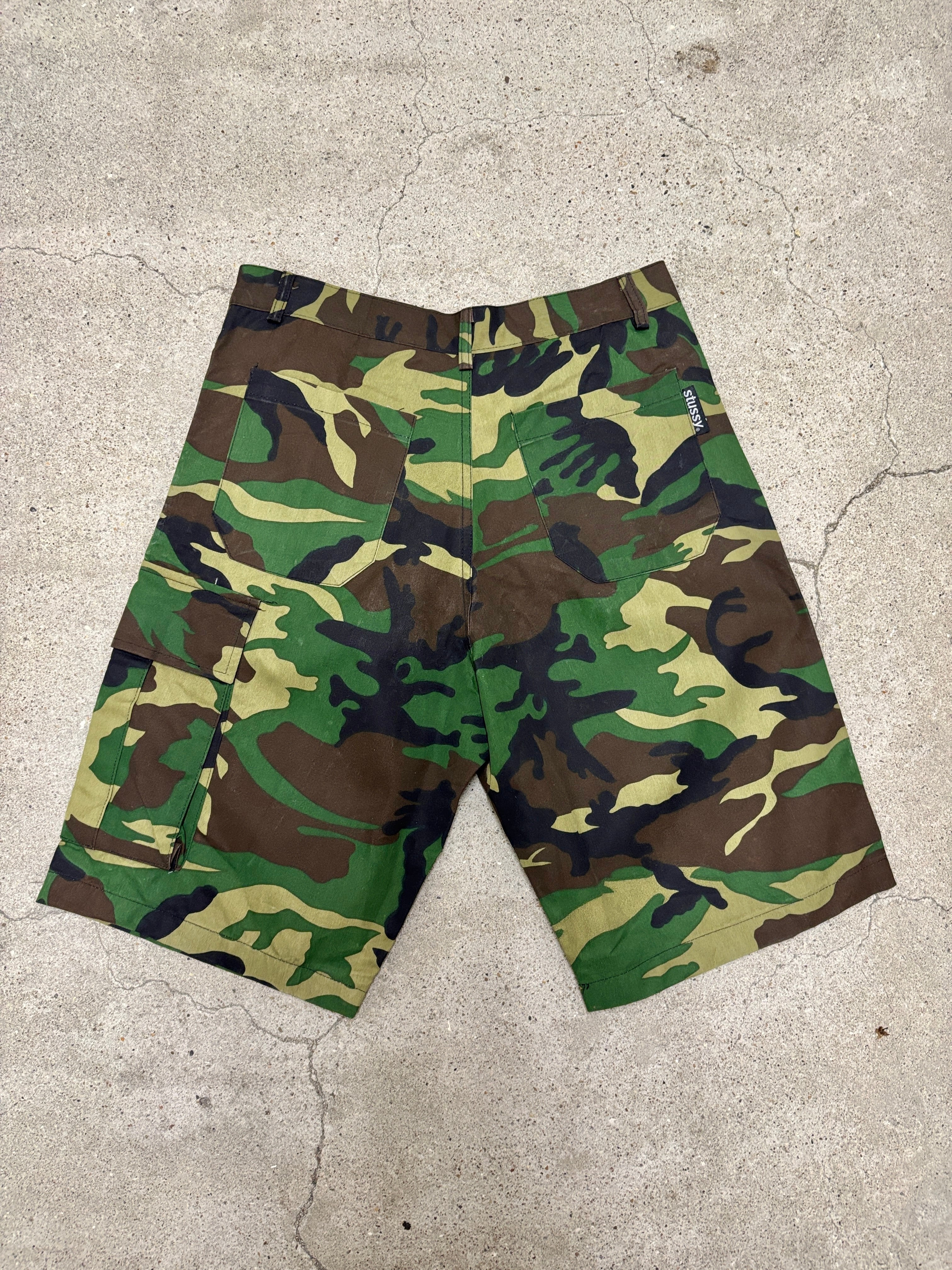 90s Bootleg STUSSY/Camouflage Cargo Shorts/S/カモフラ柄カ-ゴショ-ツ/ショ-トパンツ/カモフラ-ジュ/カ-キ/ブ-ト/ステューシー