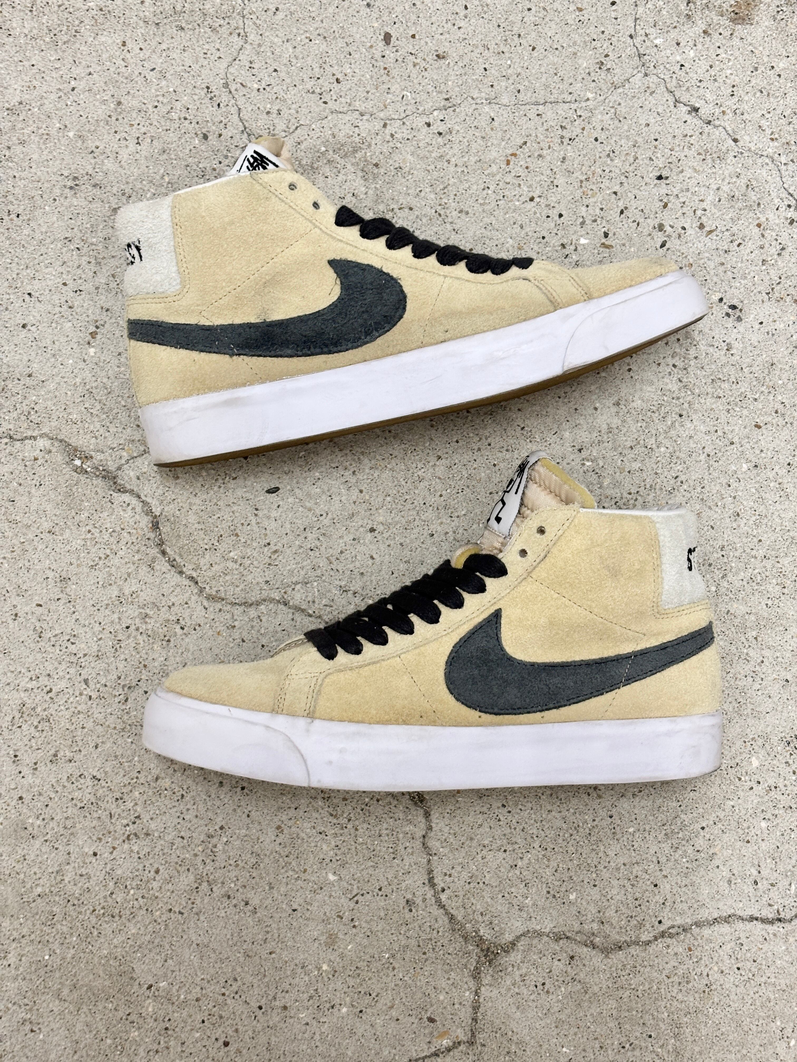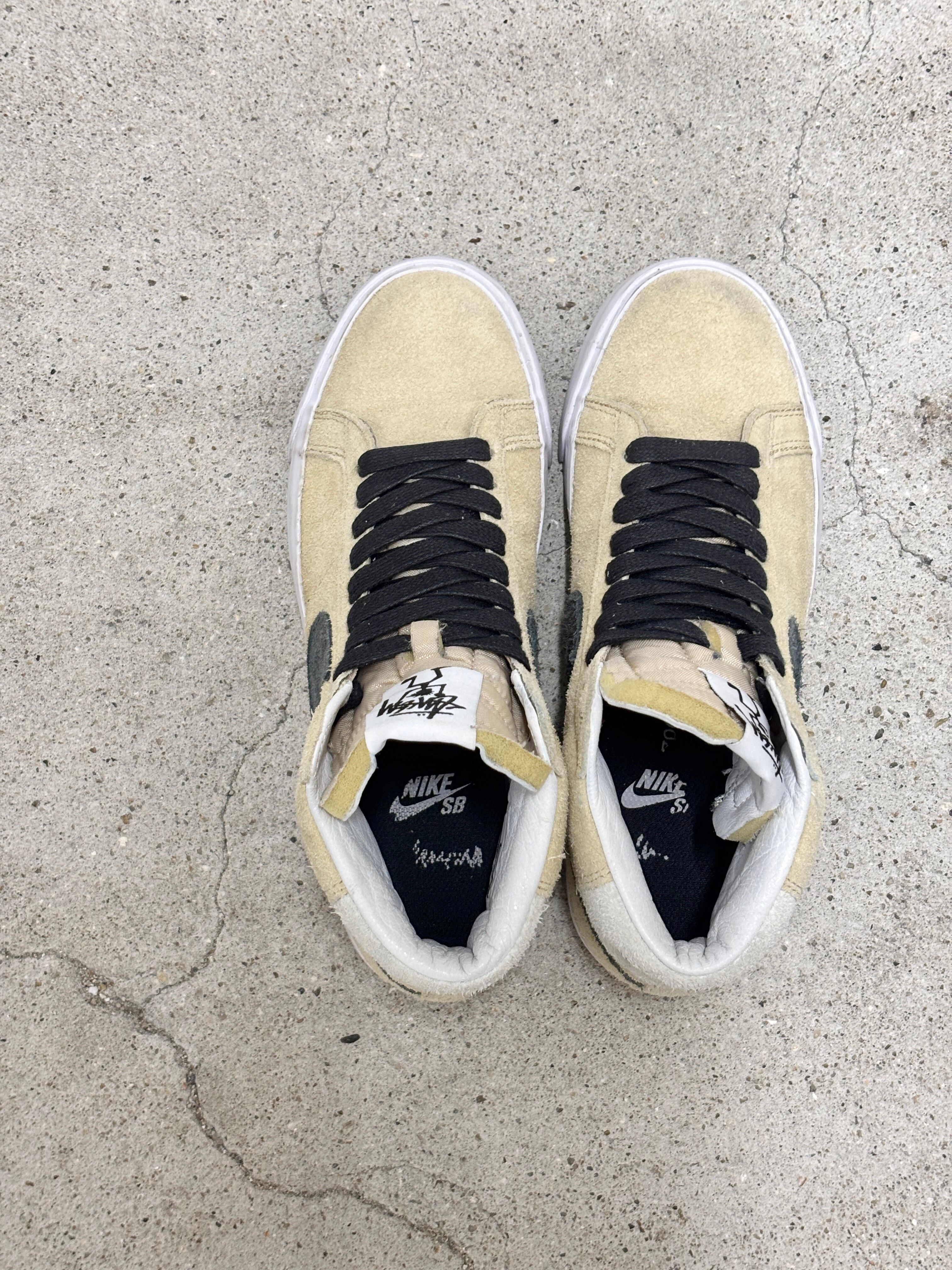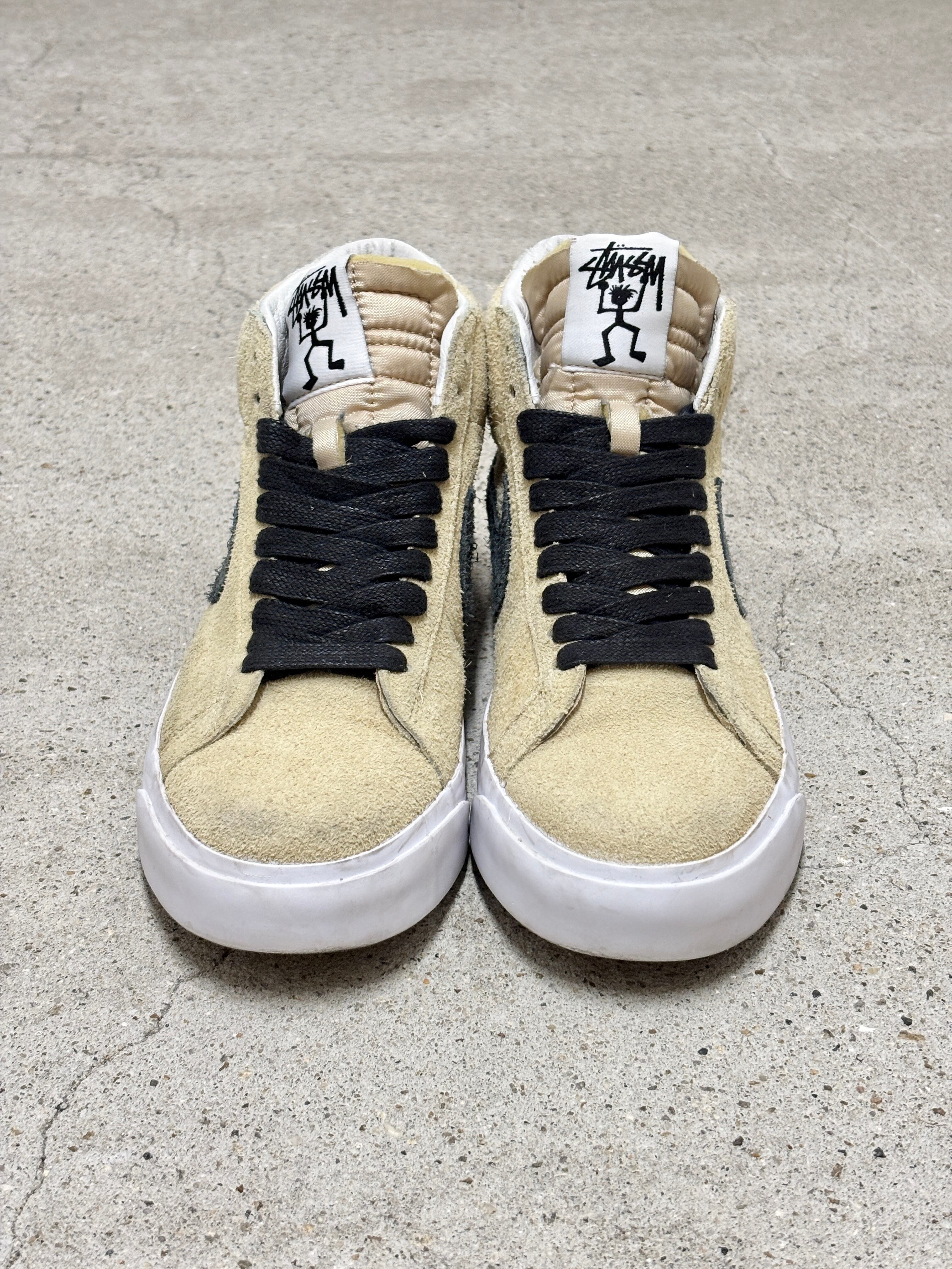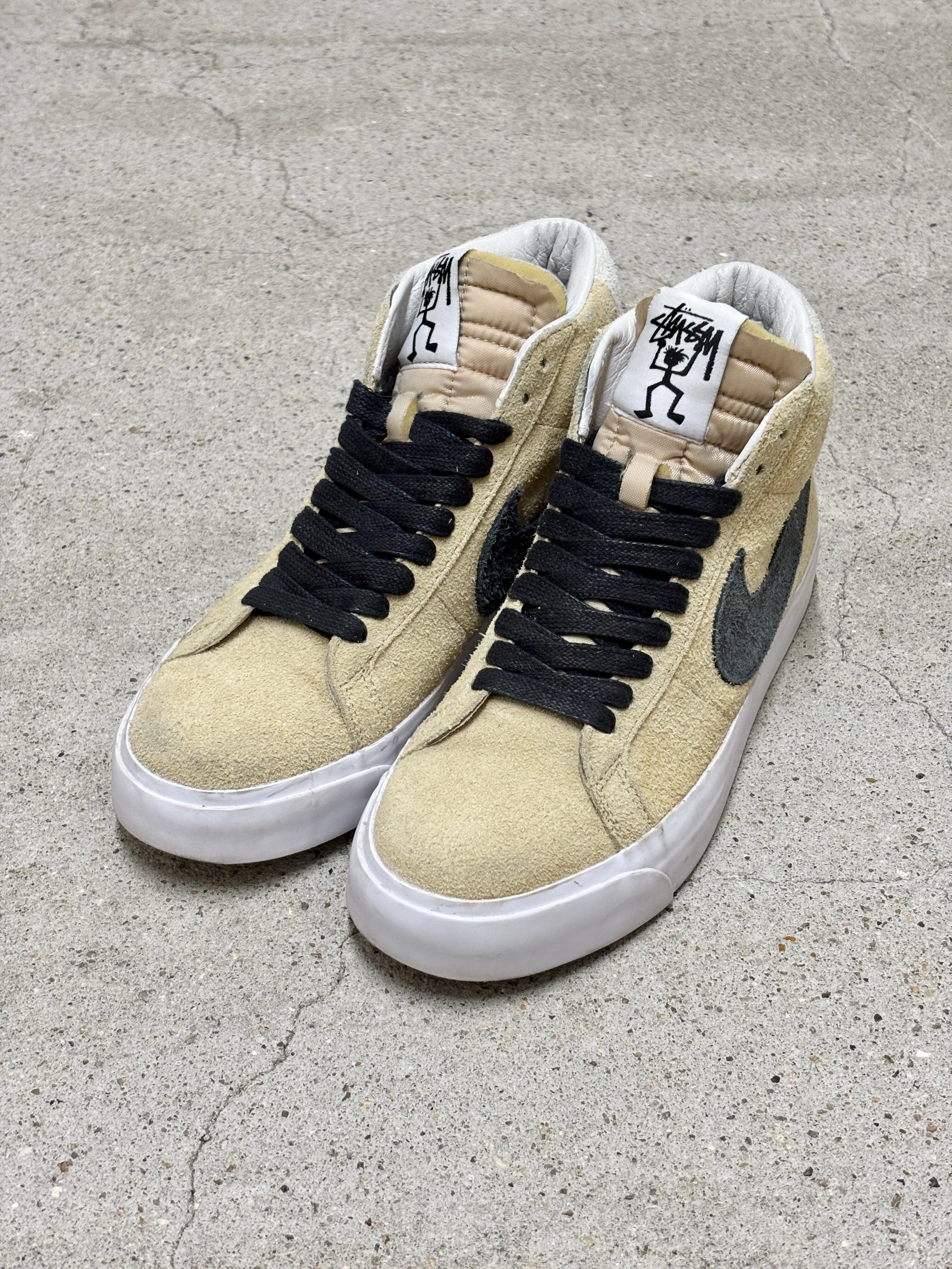 STUSSY × NIKE SB/BLAZER MID/25.0cm/ブレザ-ミッド/スニ-カ-/ベ-ジュ/スウェード/シャド-マン/刺繍ロゴ/ナイキ/ステューシー/靴/中古