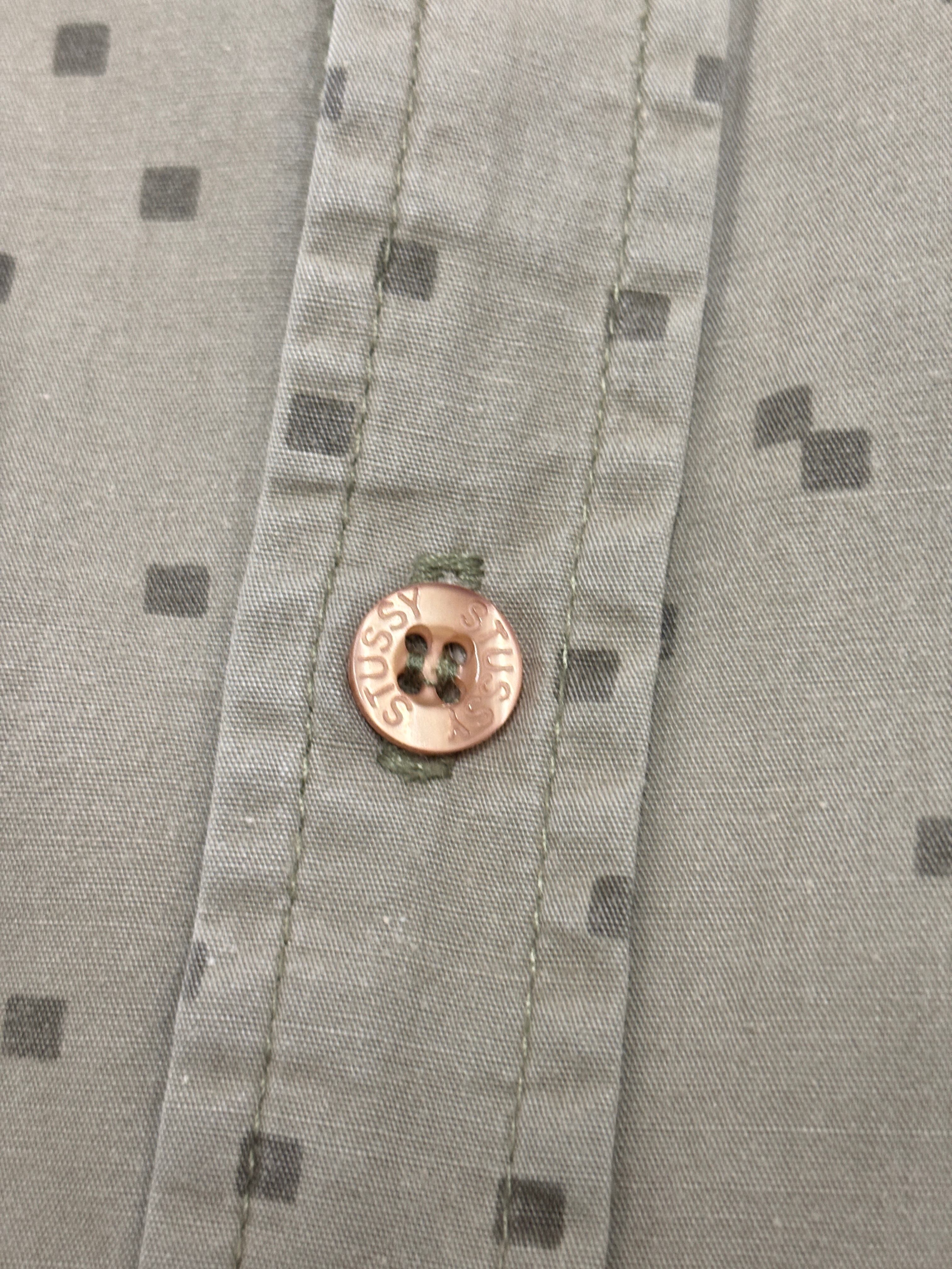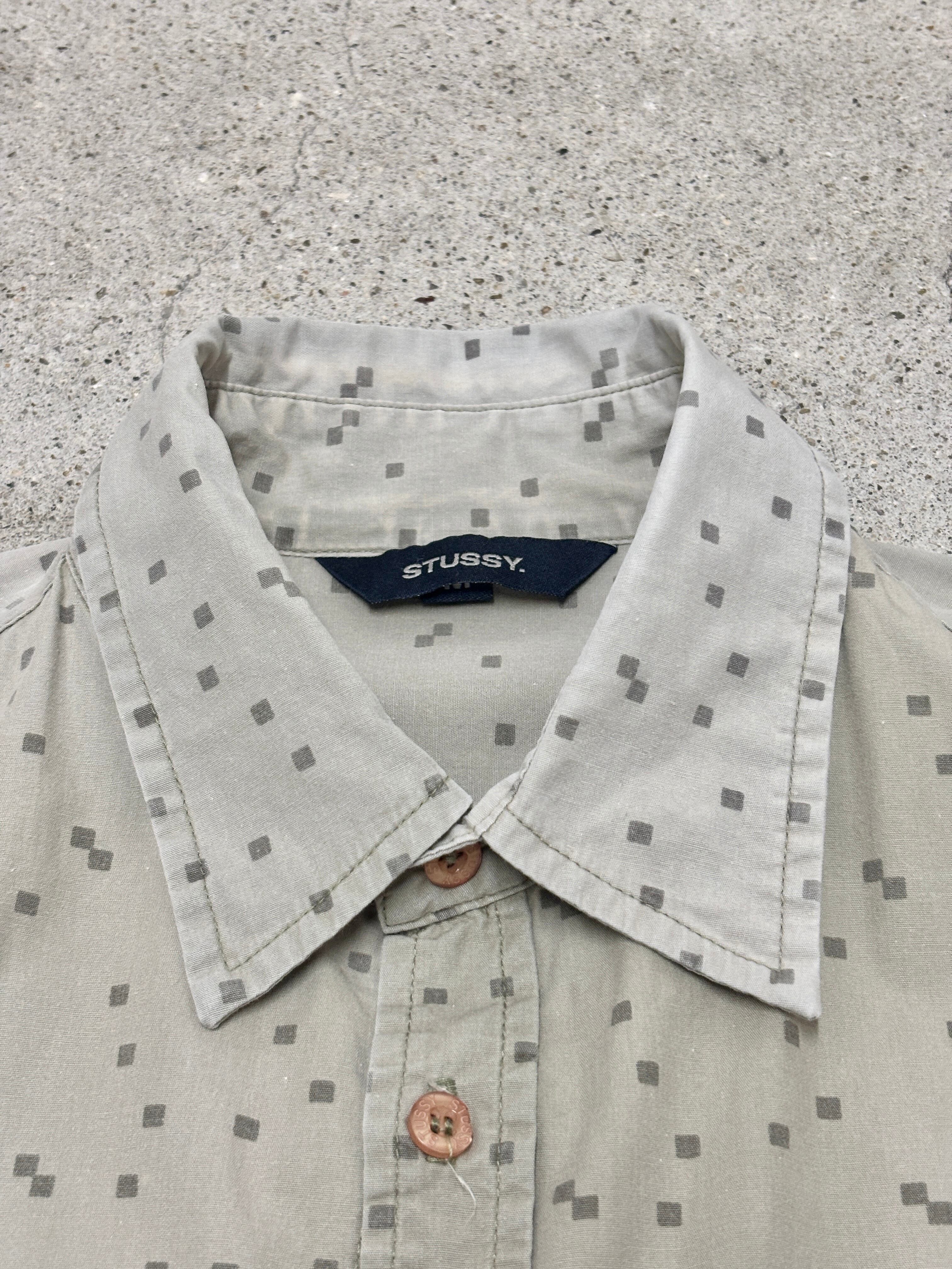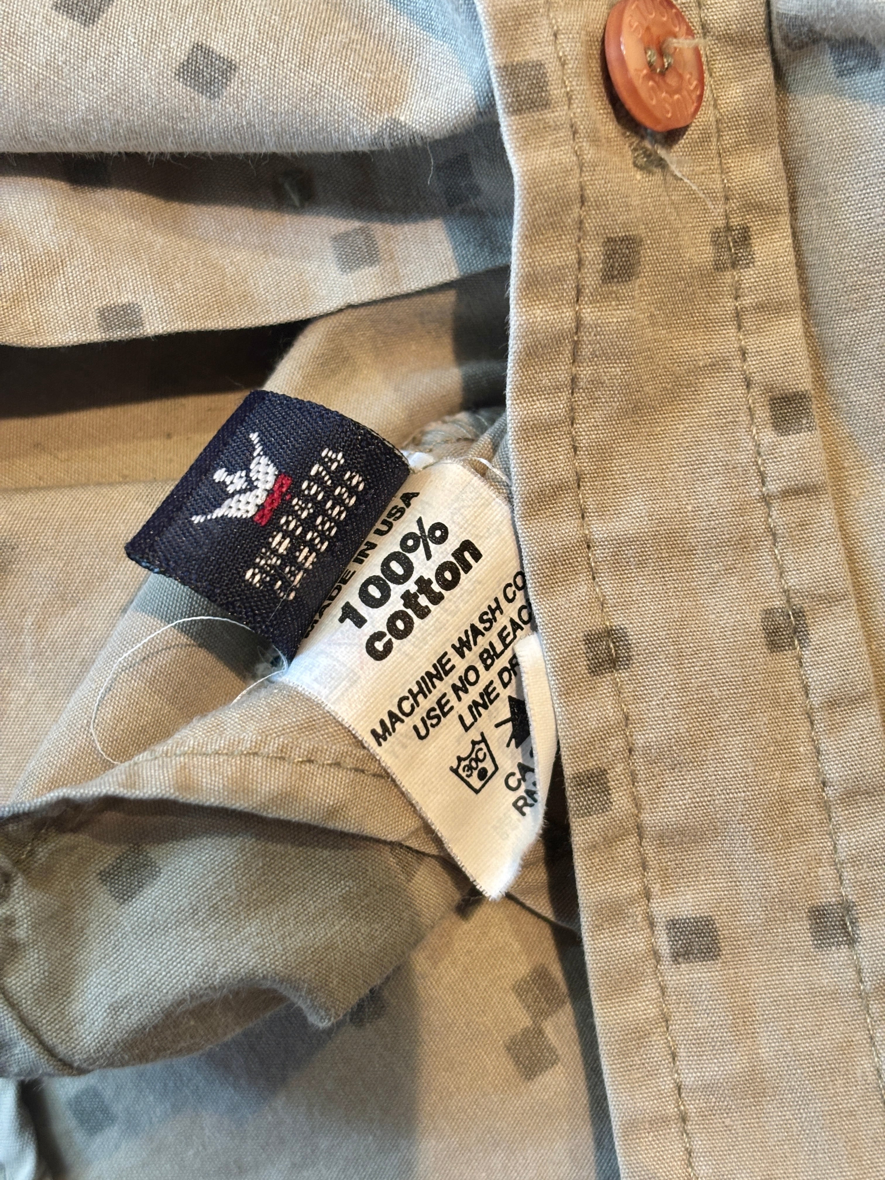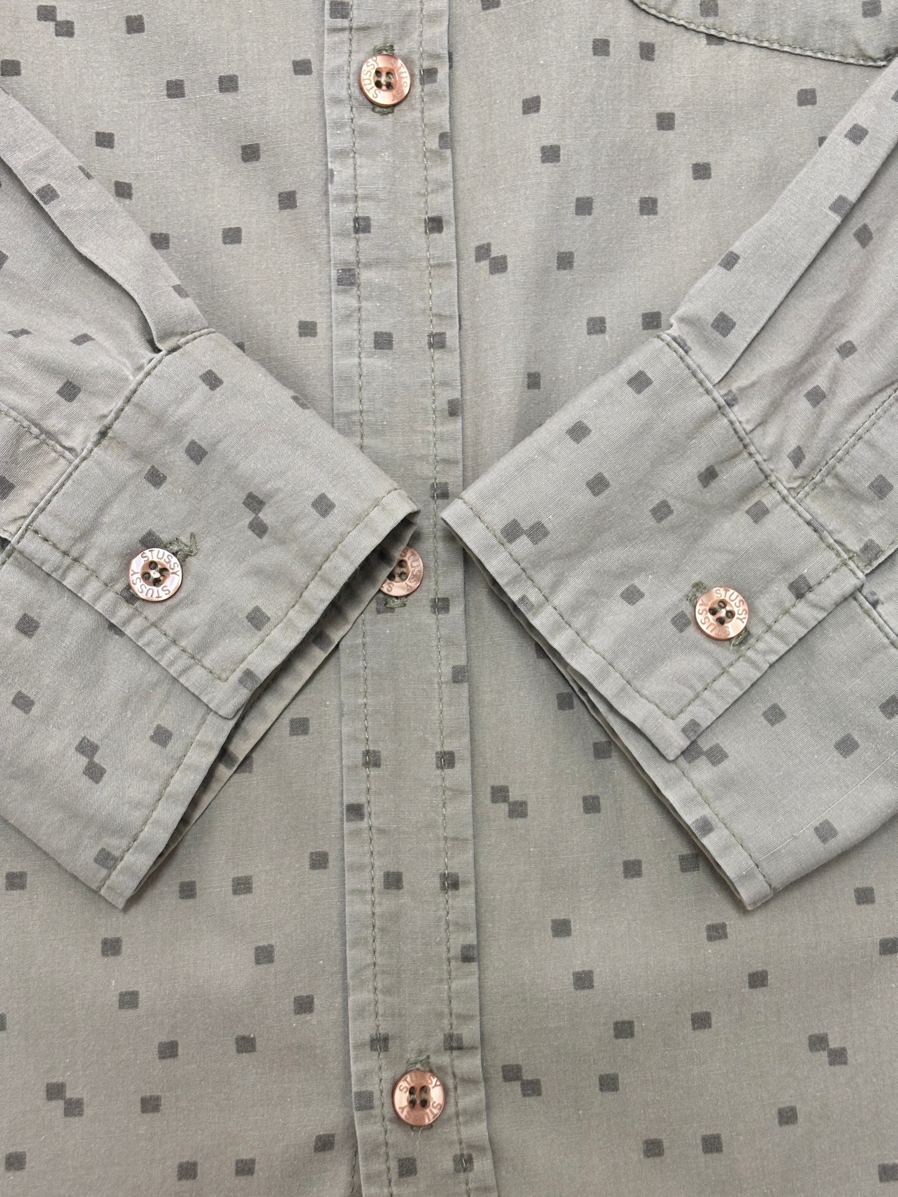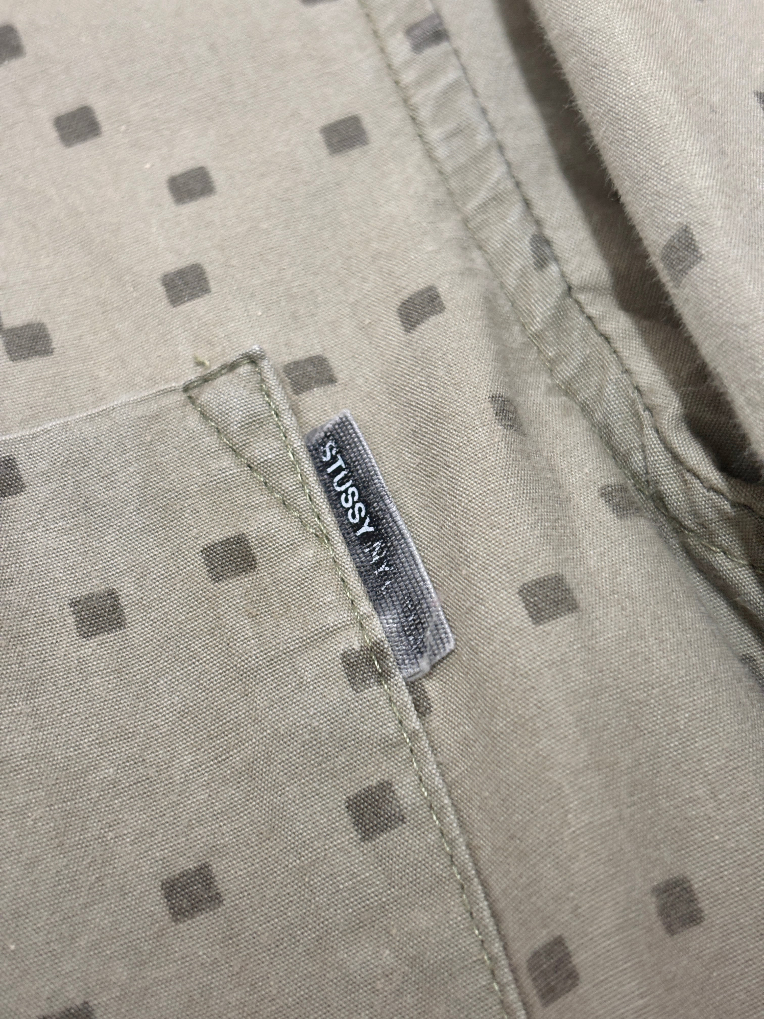 90~00s OLD STUSSY/Dot print L/S Shirt/USA製/M/ドット柄シャツ/長袖シャツ/カ-キ/ベ-ジュ/ステューシー/オ-ルドステューシ-