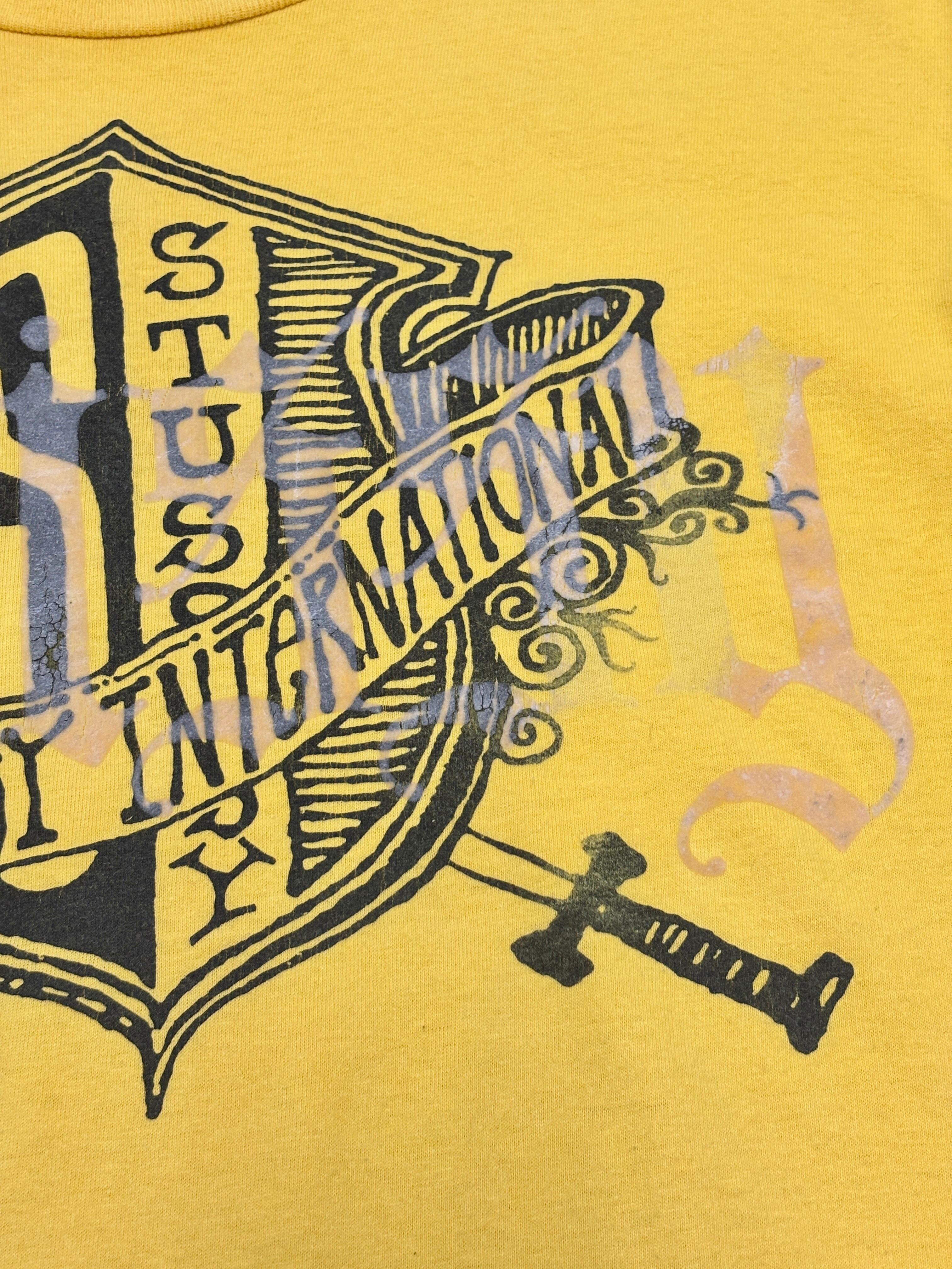 00~10s STUSSY/Graphic print Tee/M/グラフィックロゴプリントTシャツ/ロゴプリント/イエロ-/ステューシー