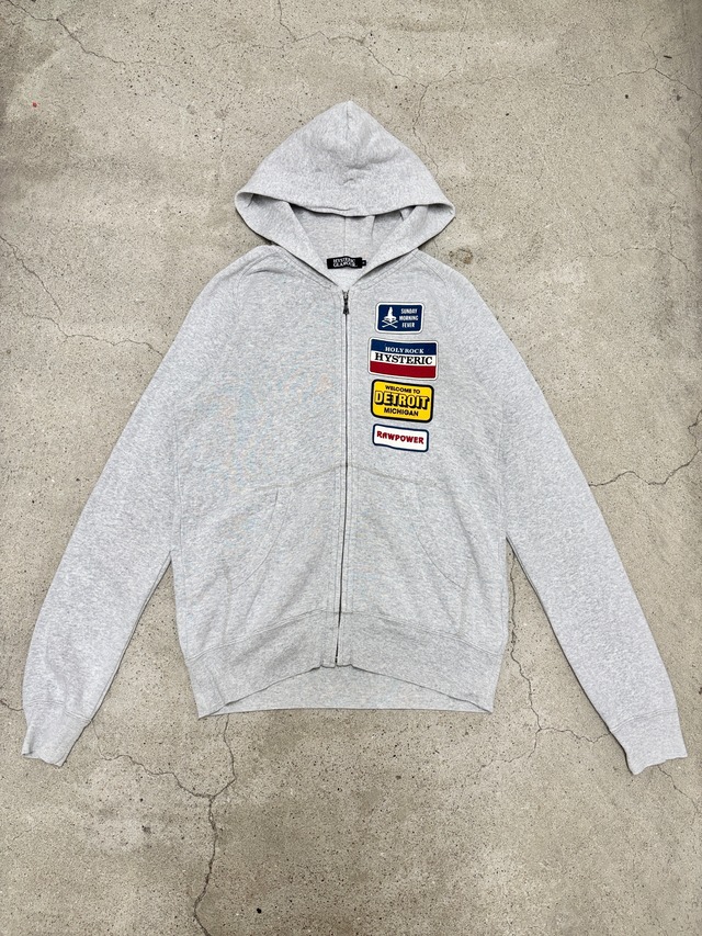 HYSTERIC GLAMOUR/Patch print zip Hoodie/M/パッチプリントジップパ-カ-/フ-ディ-/ロゴプリント/グレ-/ヒステリックグラマー