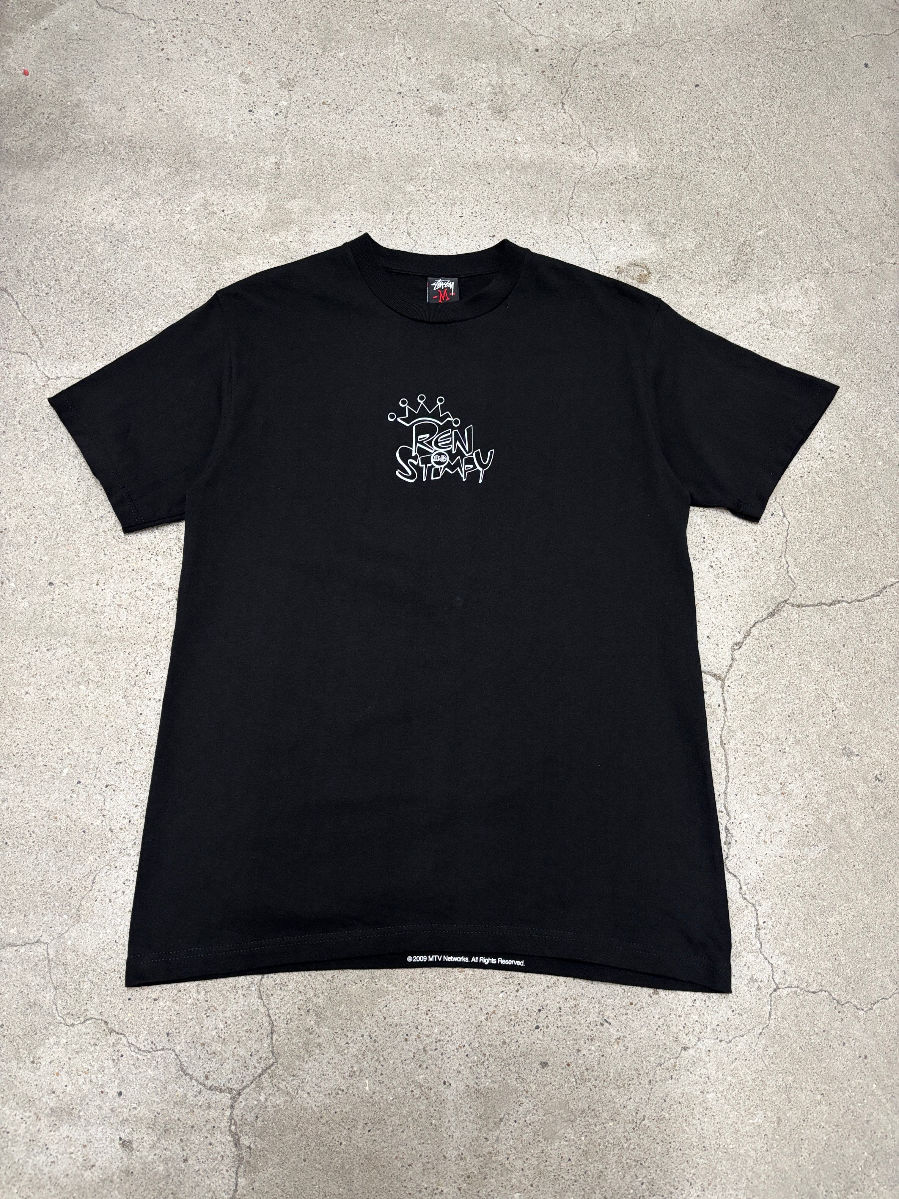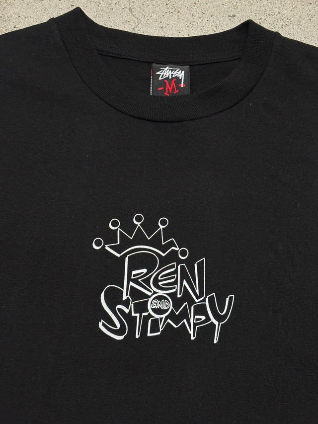 00s STUSSY × THE REN & STIMPY SHOW/MEDICOM TOY EXHIBITION Tee/2009年/M/グラフィックプリントTシャツ/アニメ/ロゴプリント/メディコムトイ/ブラック/レンとスティンピーコラボ/ステューシー