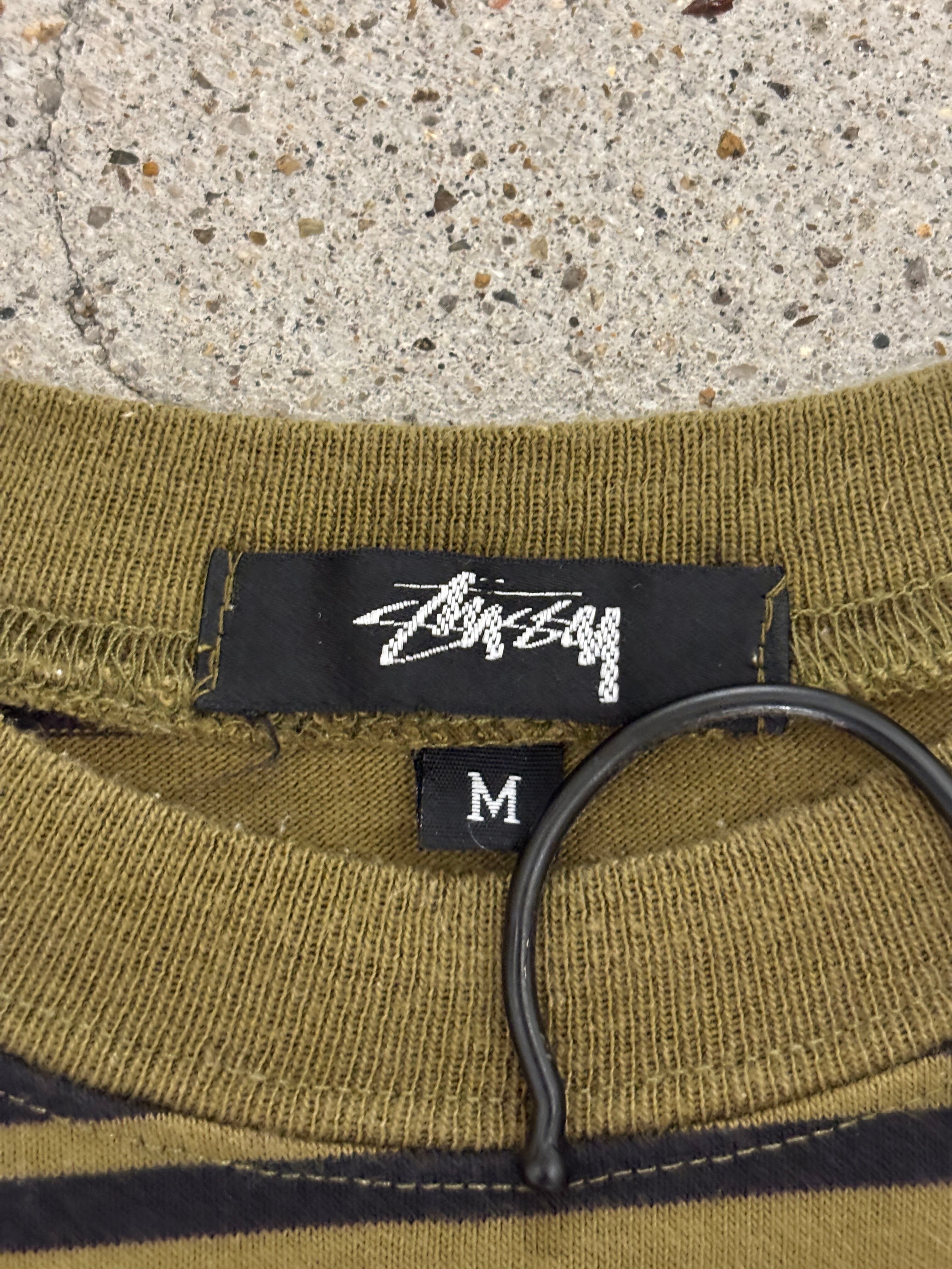 80s OLD STUSSY/Border pocket Tee/KING SIZE/USA製/黒タグ/M/ボーダ-柄ポケT/Tシャツ/カ-キ/ブラック/刺繍/ステューシ-/オ-ルドステューシー