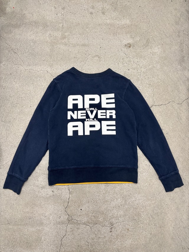00s A BATHING APE/Reversible Sweat/日本製/M/リバ-シブルスウェット/ロゴプリント/4WAY/両面/ネイビ-/マスタ-ド/BAPE/アベイシングエイプ