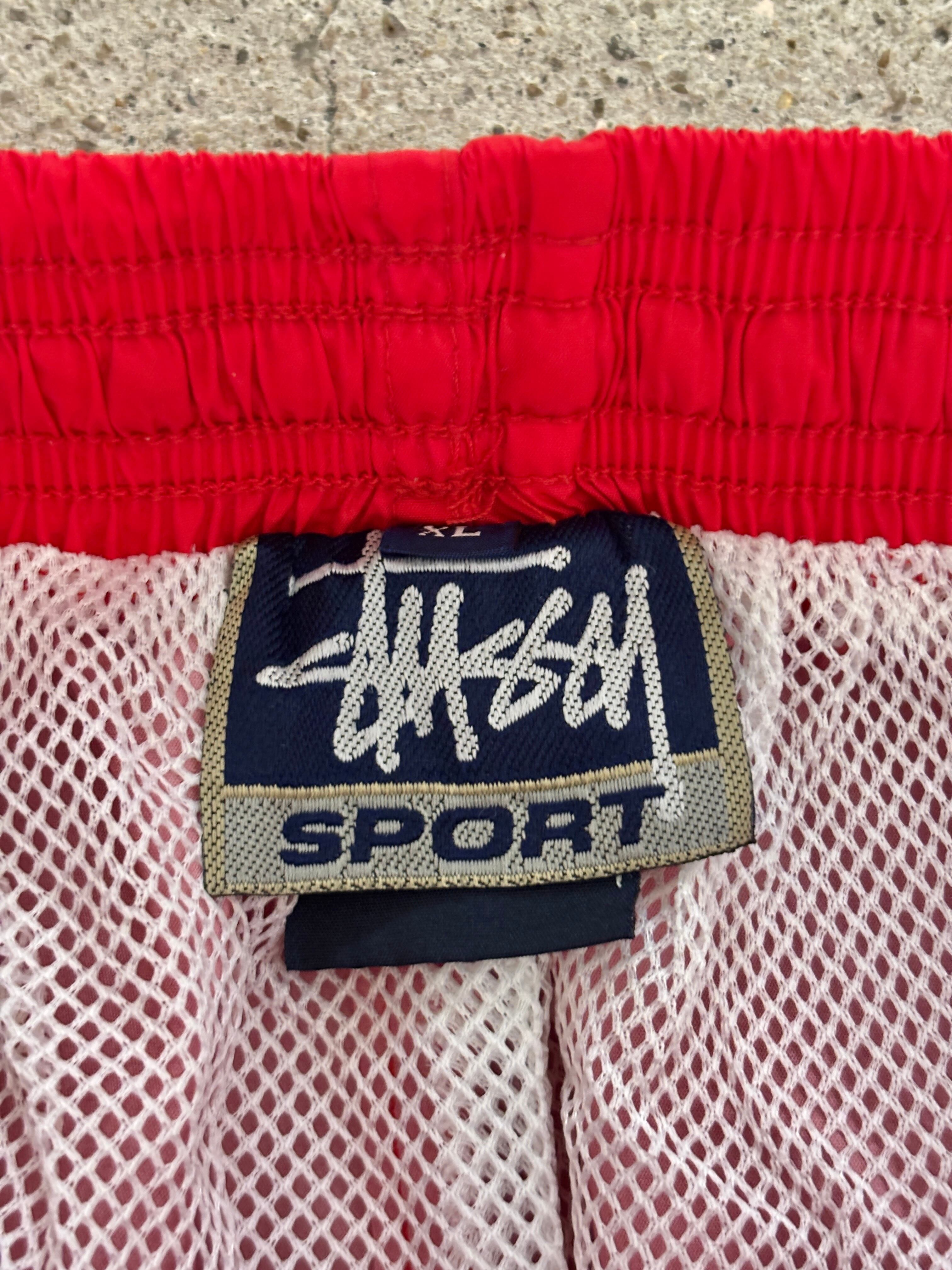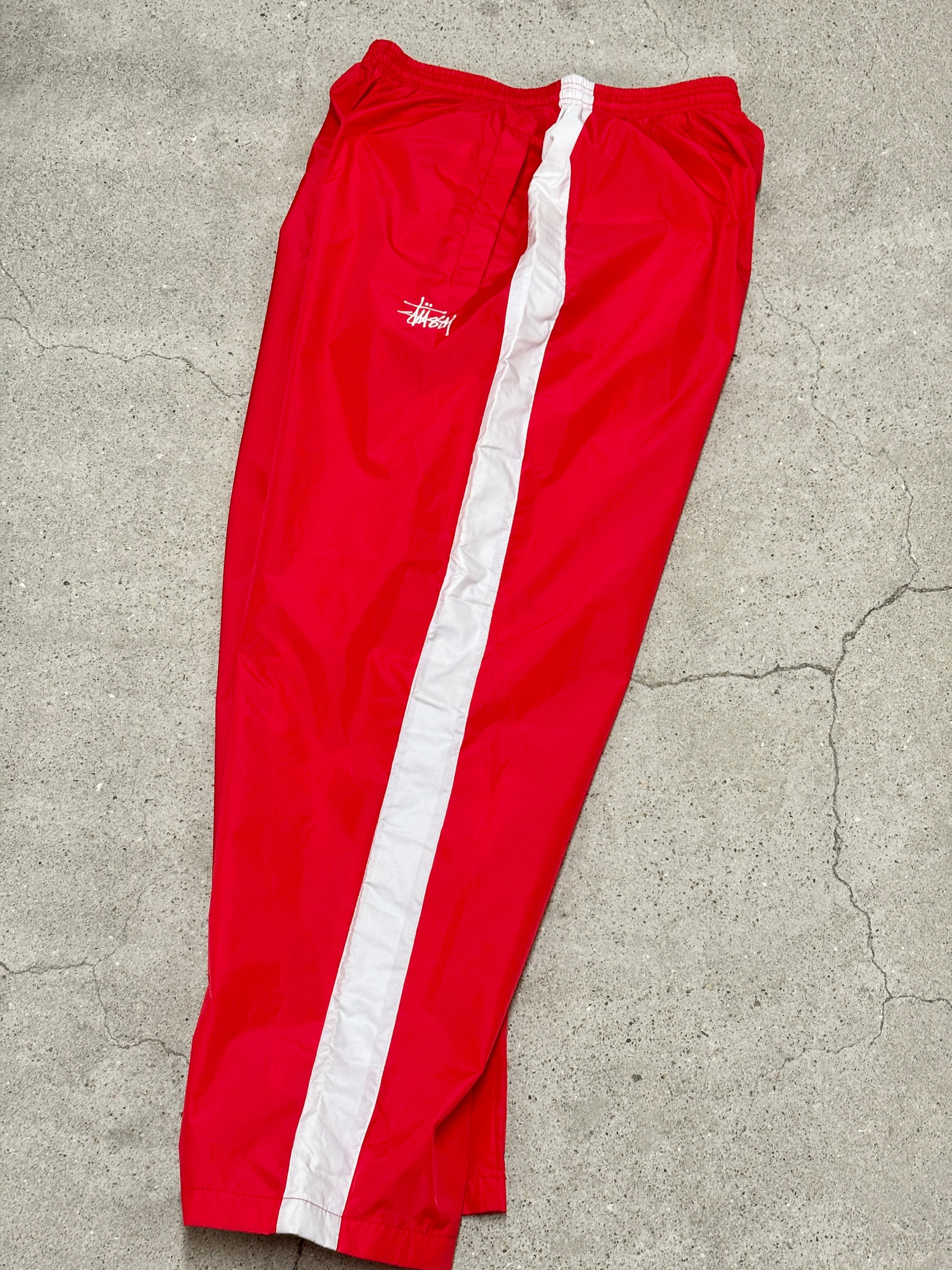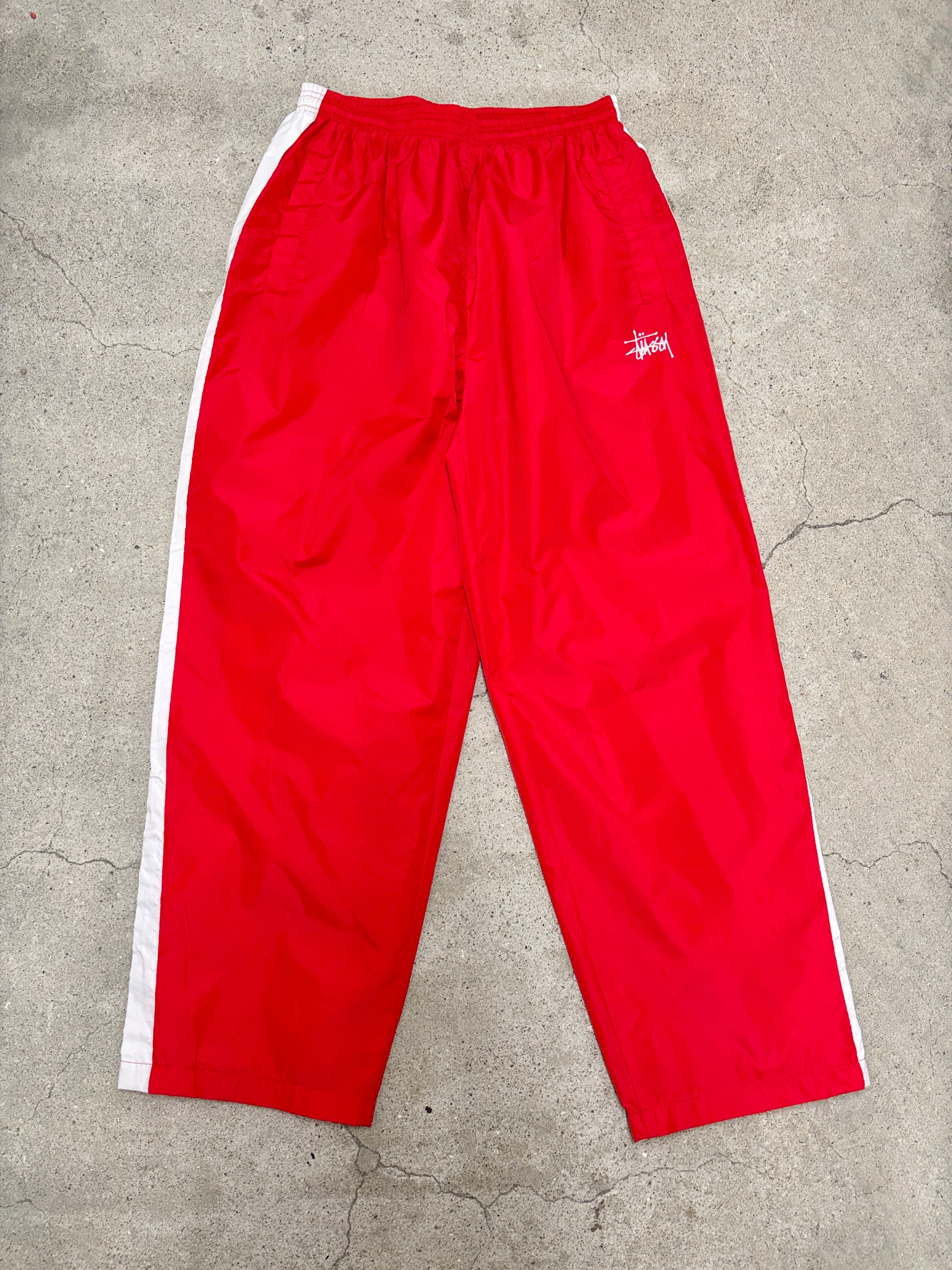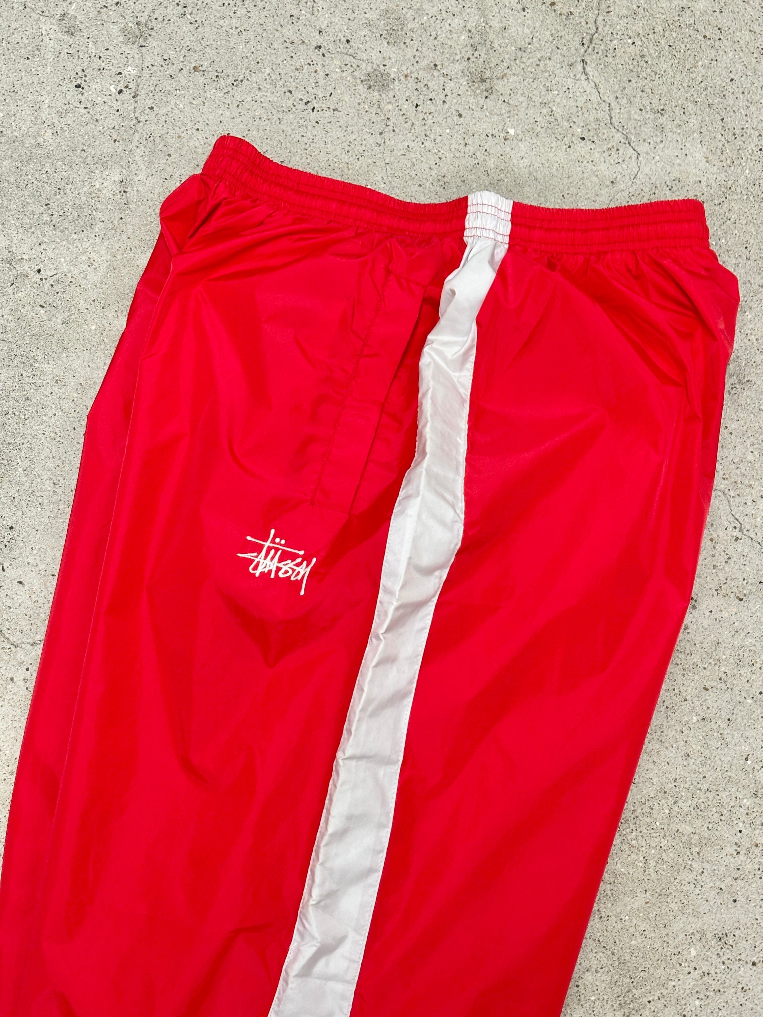 90~00s Bootleg STUSSY/STUSSY SPORT Nylon pants/XL/ナイロンパンツ/刺繍ロゴ/ストックロゴ/レッド/ブ-ト/ステューシ-