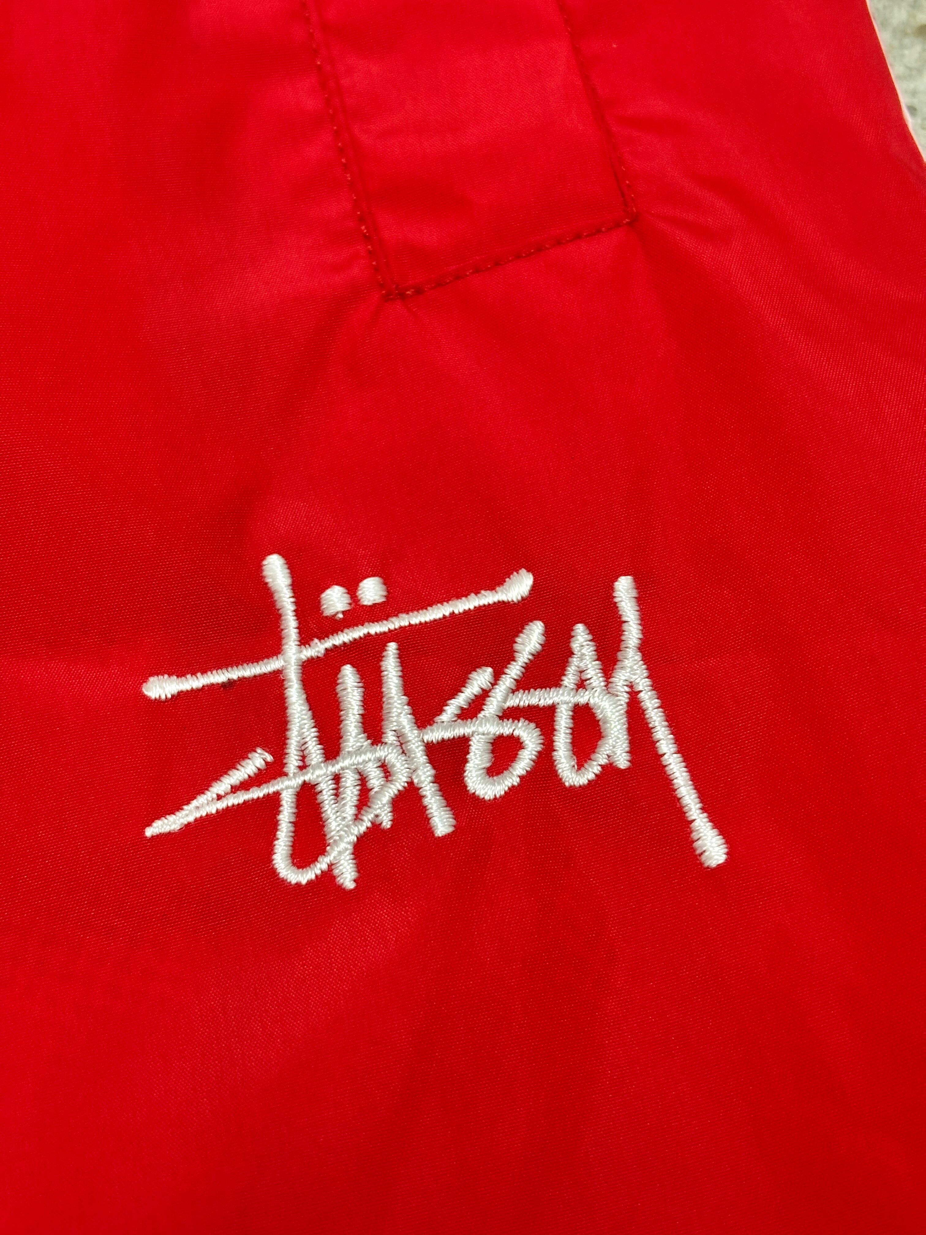 90~00s Bootleg STUSSY/STUSSY SPORT Nylon pants/XL/ナイロンパンツ/刺繍ロゴ/ストックロゴ/レッド/ブ-ト/ステューシ-/古着/ア―カイブ