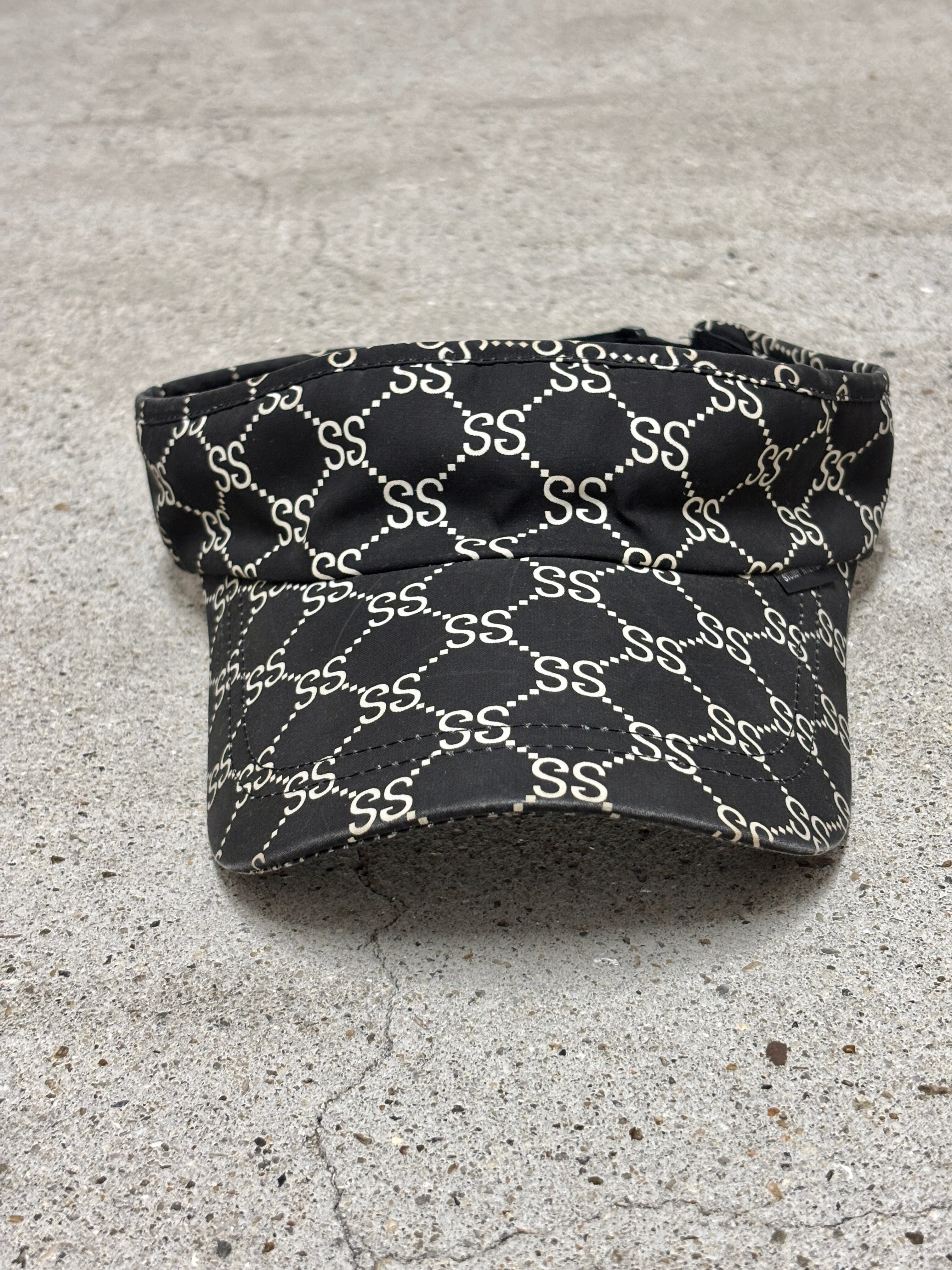 90~00s OLD STUSSY/Monogram Sun Visor/紺タグ/Free/モノグラム柄サンバイザ-/SSロゴ/ブラック/ステューシー/オ-ルドステューシ-/帽子/ア―カイブ