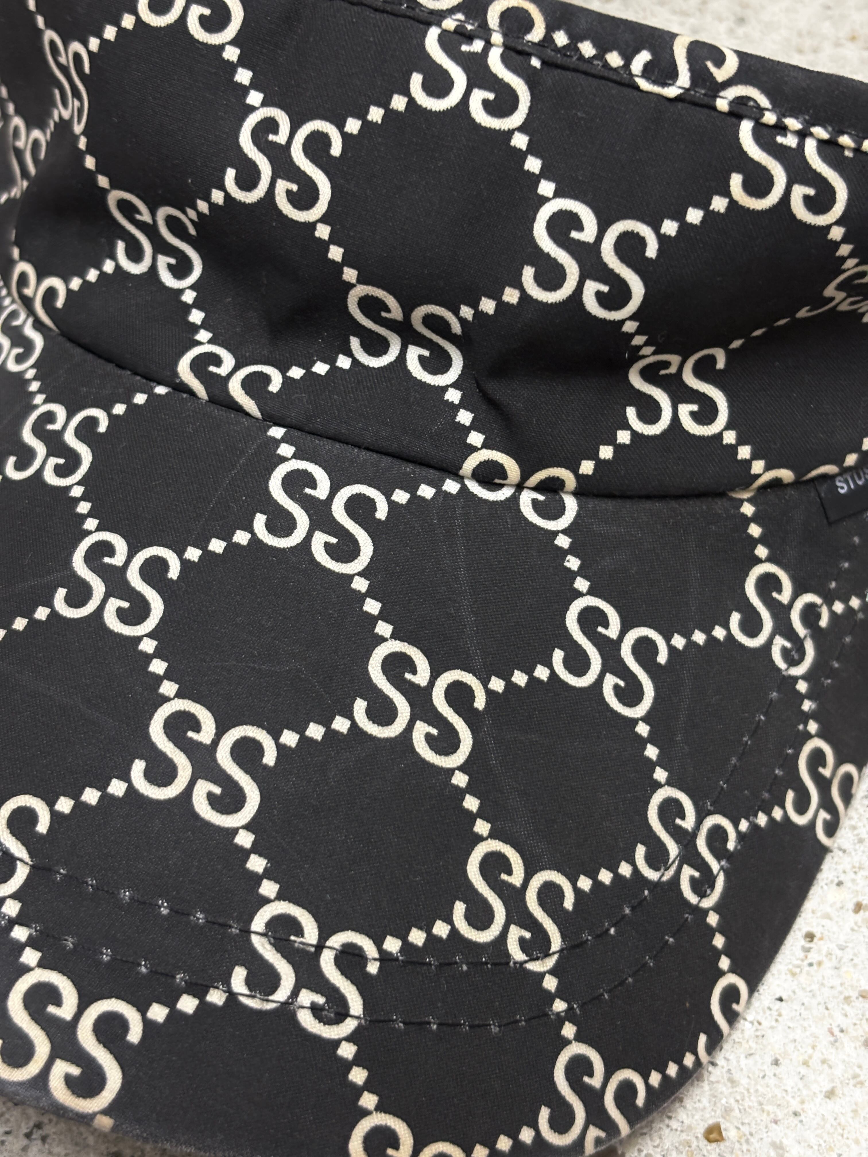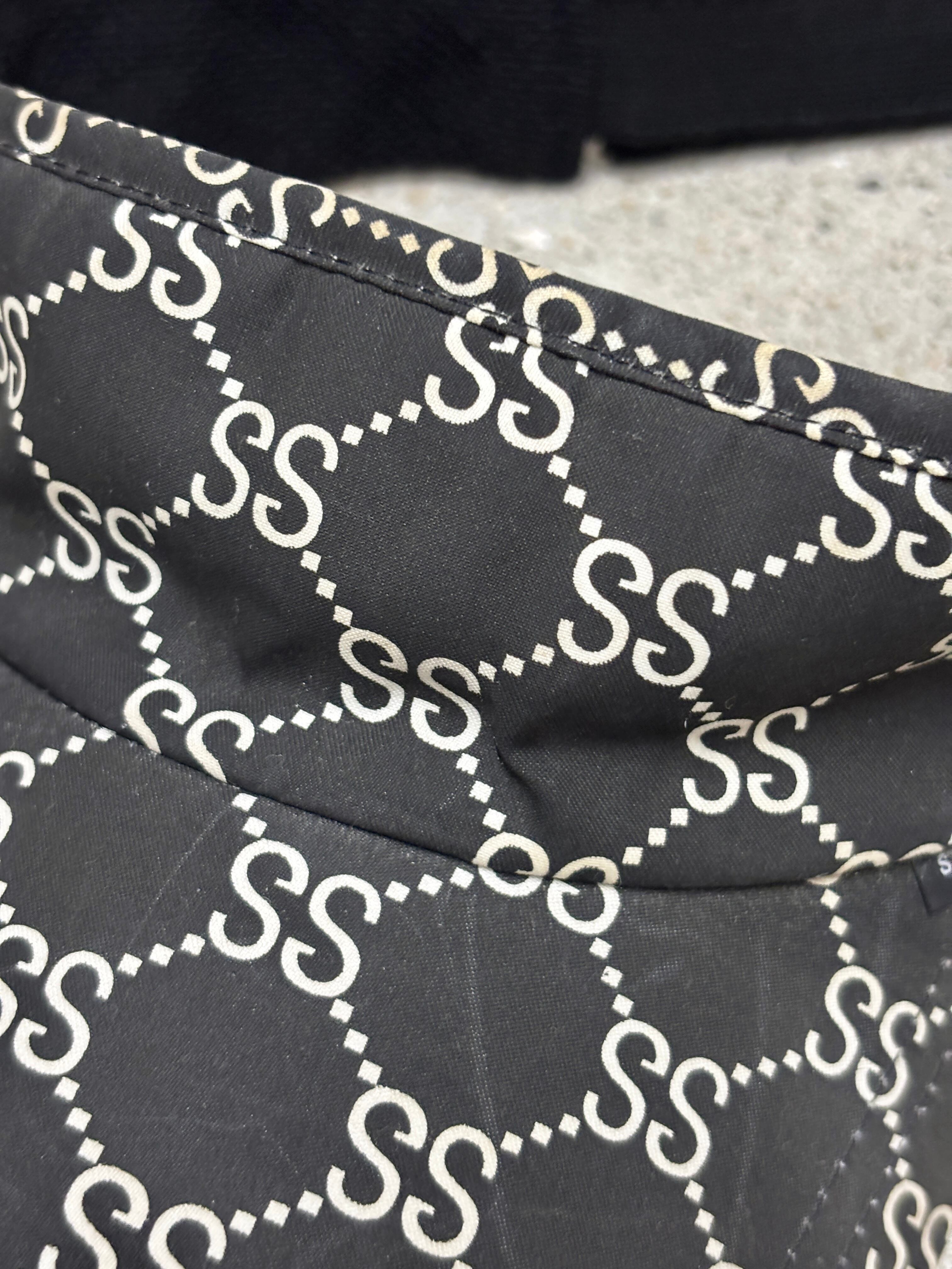90~00s OLD STUSSY/Monogram Sun Visor/紺タグ/Free/モノグラム柄サンバイザ-/SSロゴ/ブラック/ステューシー/オ-ルドステューシ-