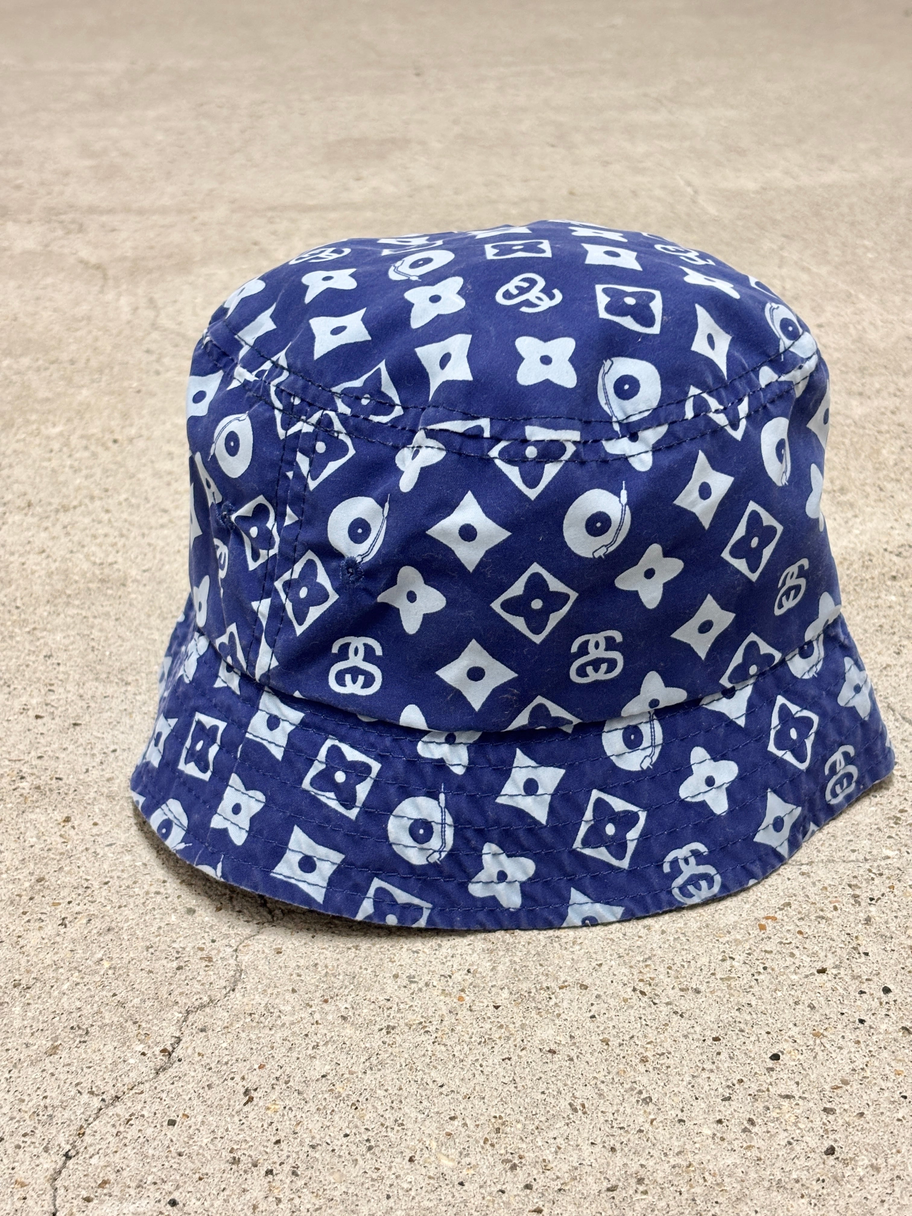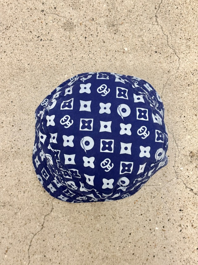 90〜00s OLD STUSSY/Monogram print Bucket Hat/紺タグ/S/M/モノグラム柄バケットハット/総柄/ネイビ-/ステューシー/オ-ルドステューシ-/帽子/ア―カイブ