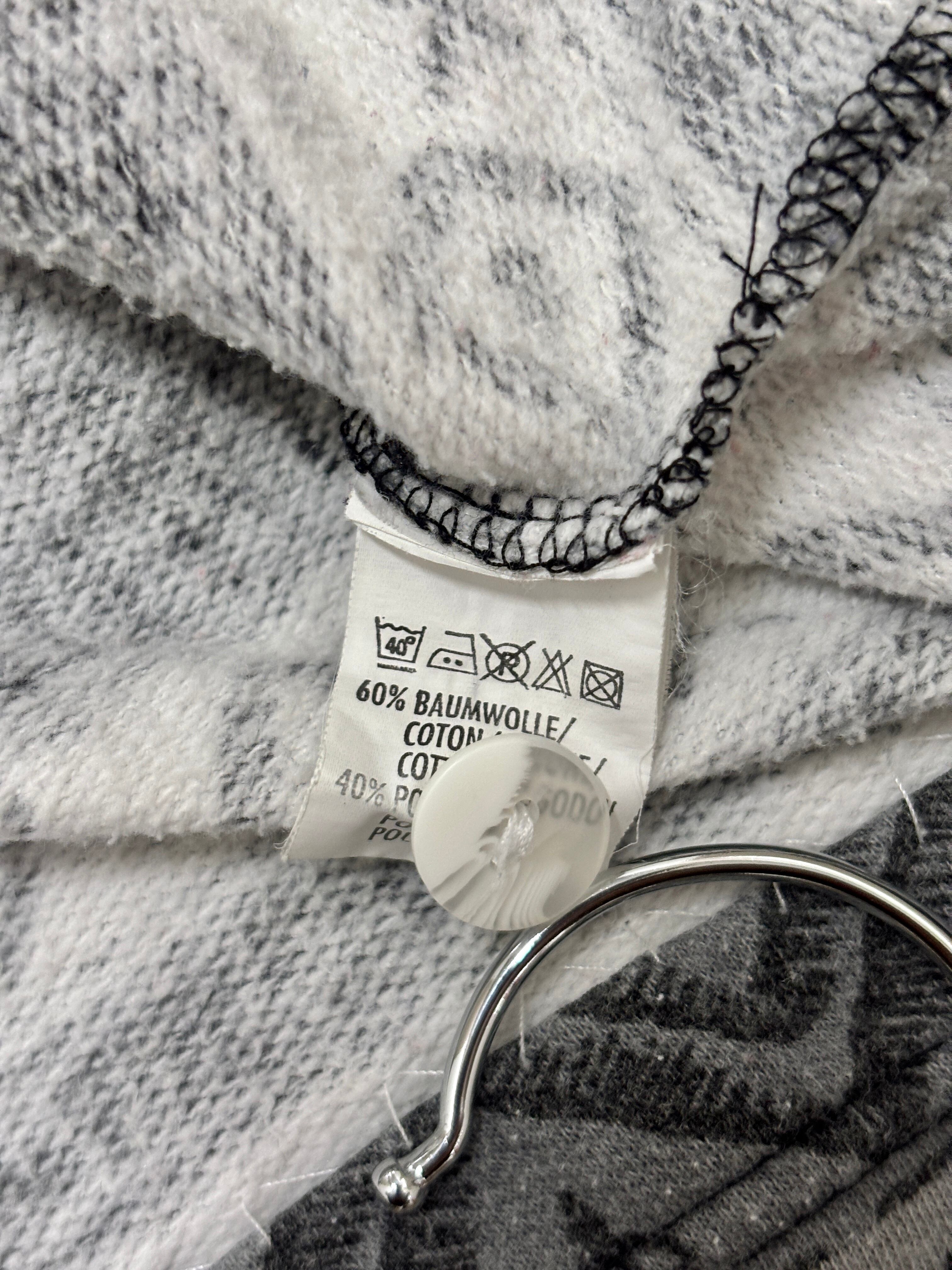 90s John Baner/Multi print L/S Polo Shirt/XL相当/総柄/長袖ポロシャツ/マルチプリント/グレ-/ホワイト/ジョンバナ-