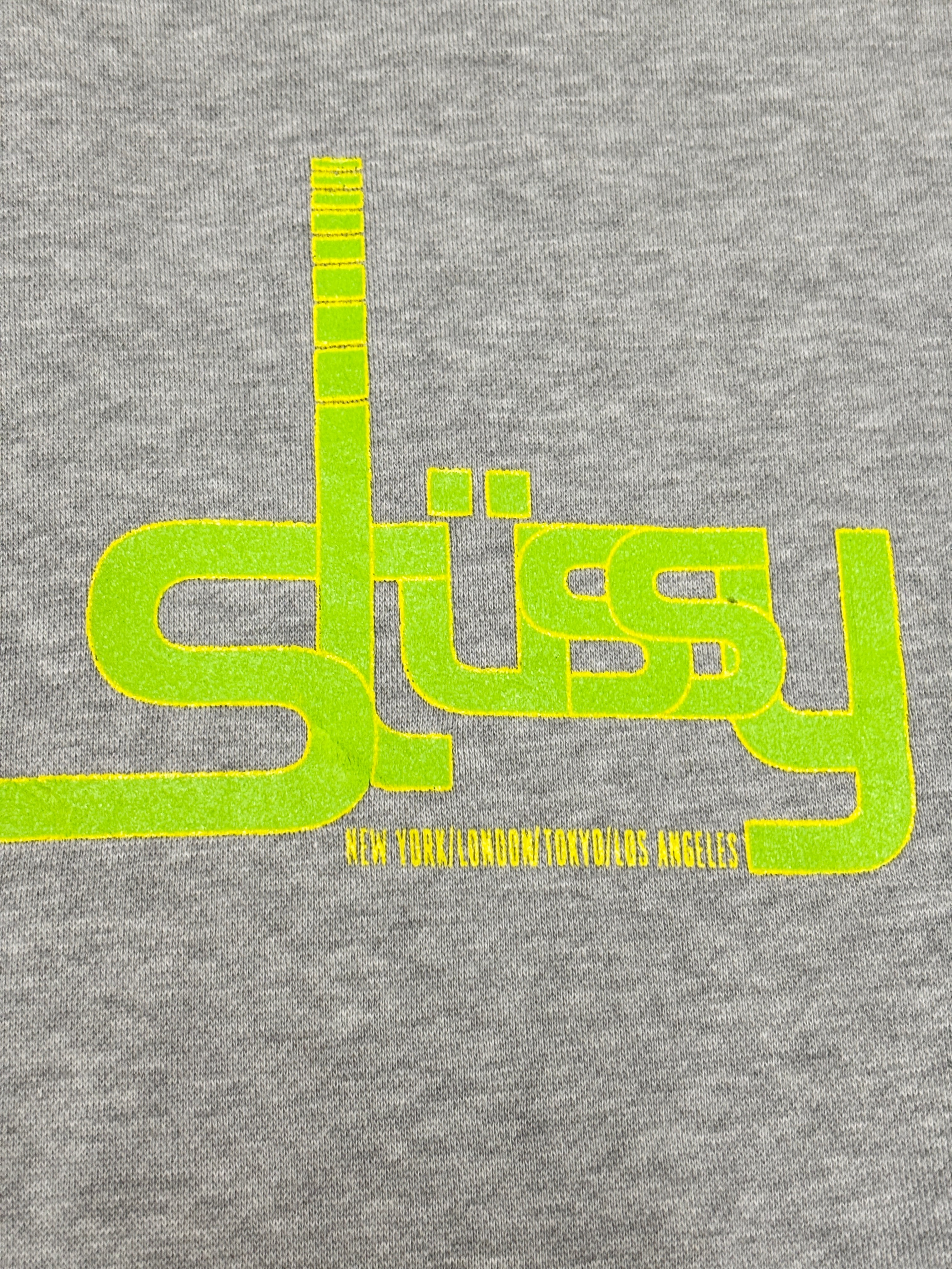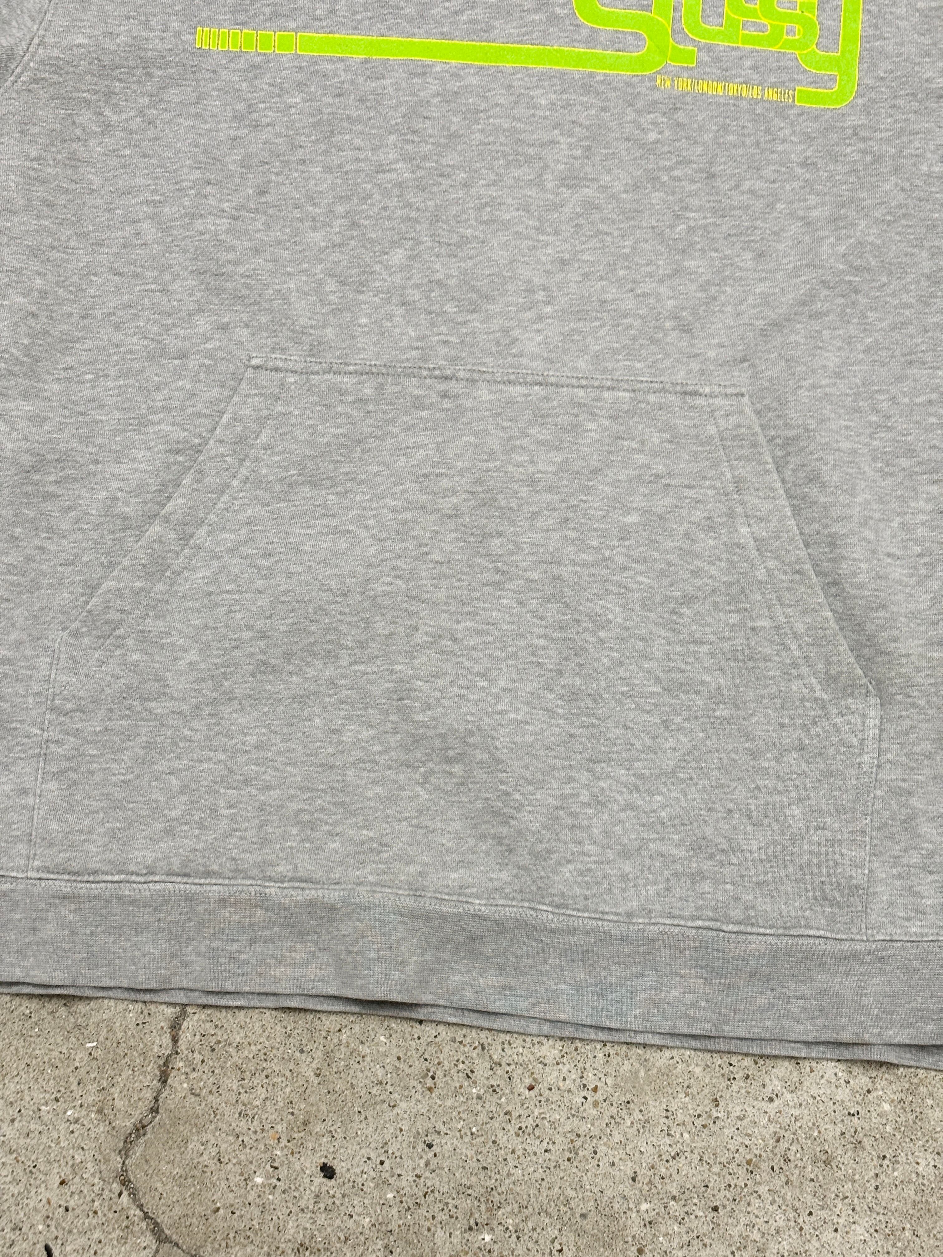 00s OLD STUSSY/Graphic Logo print Hoodie/紺タグ/M/グラフィックロゴプリントフ-ディ-/パ-カ-/グレ-/ステューシー/オ-ルドステューシ-/古着/ア―カイブ