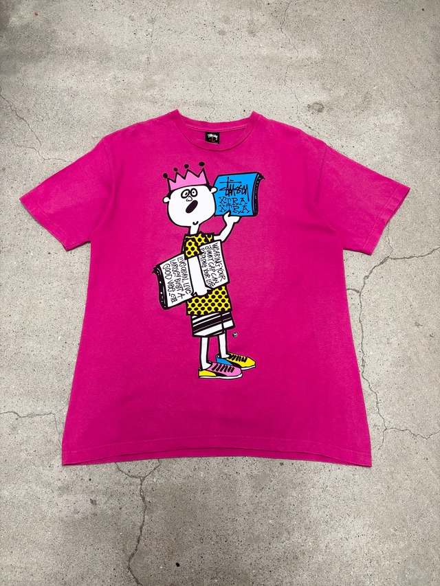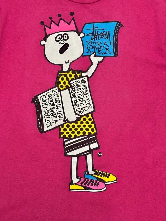 00~10s STUSSY/EXTRA EXTRA Tee/LキャラクタープリントTシャツ/ショ-ンフォント/ストックロゴ/ピンク/ステューシー/オ-ルドステューシ-/古着/ア―カイブ