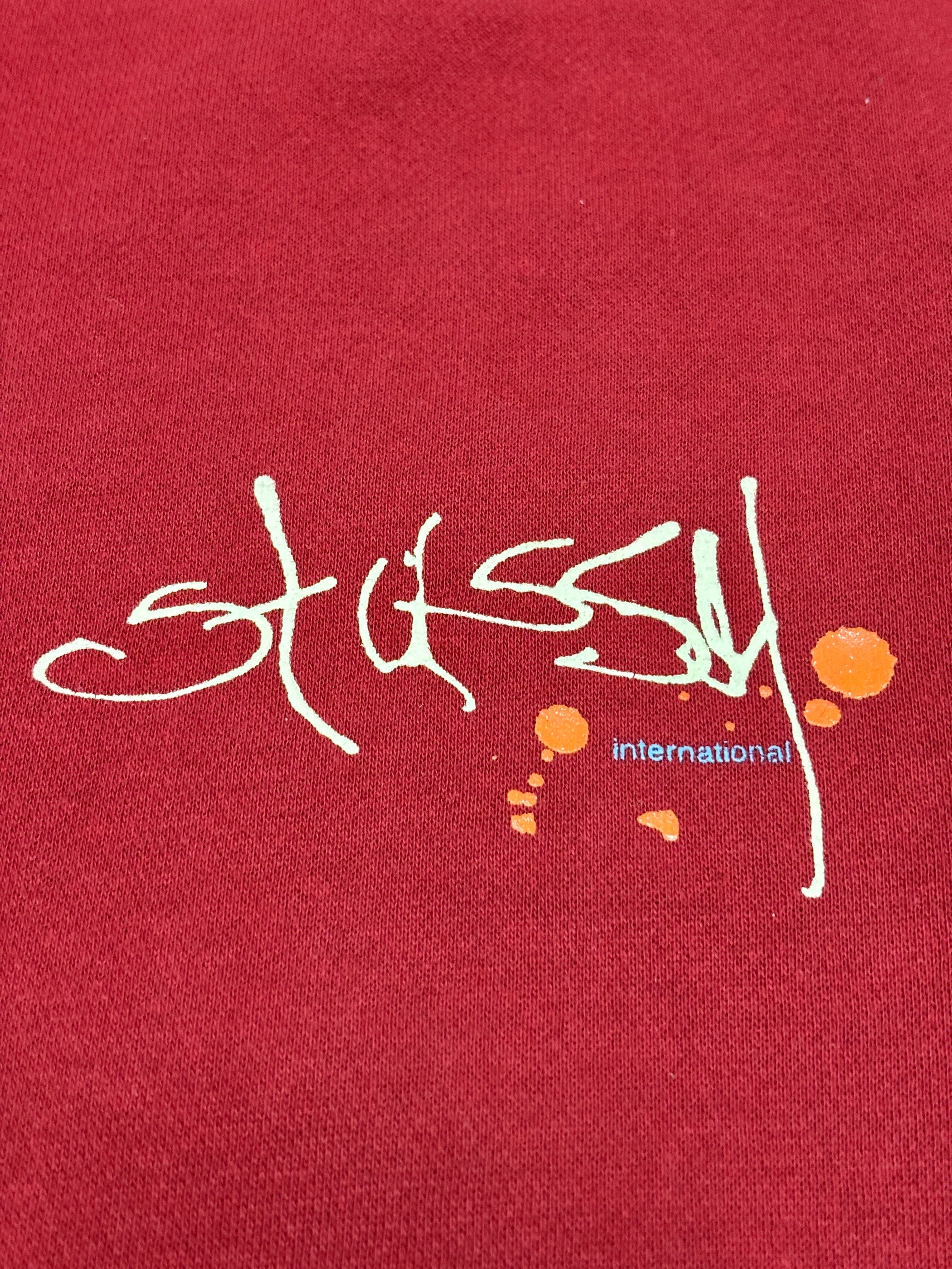 00s OLD STUSSY/Graphic Logo print Sweat/銀タグ/M/グラフィックロゴプリントスウェット/バ-ガンディ-/ステューシー/オ-ルドステューシー
