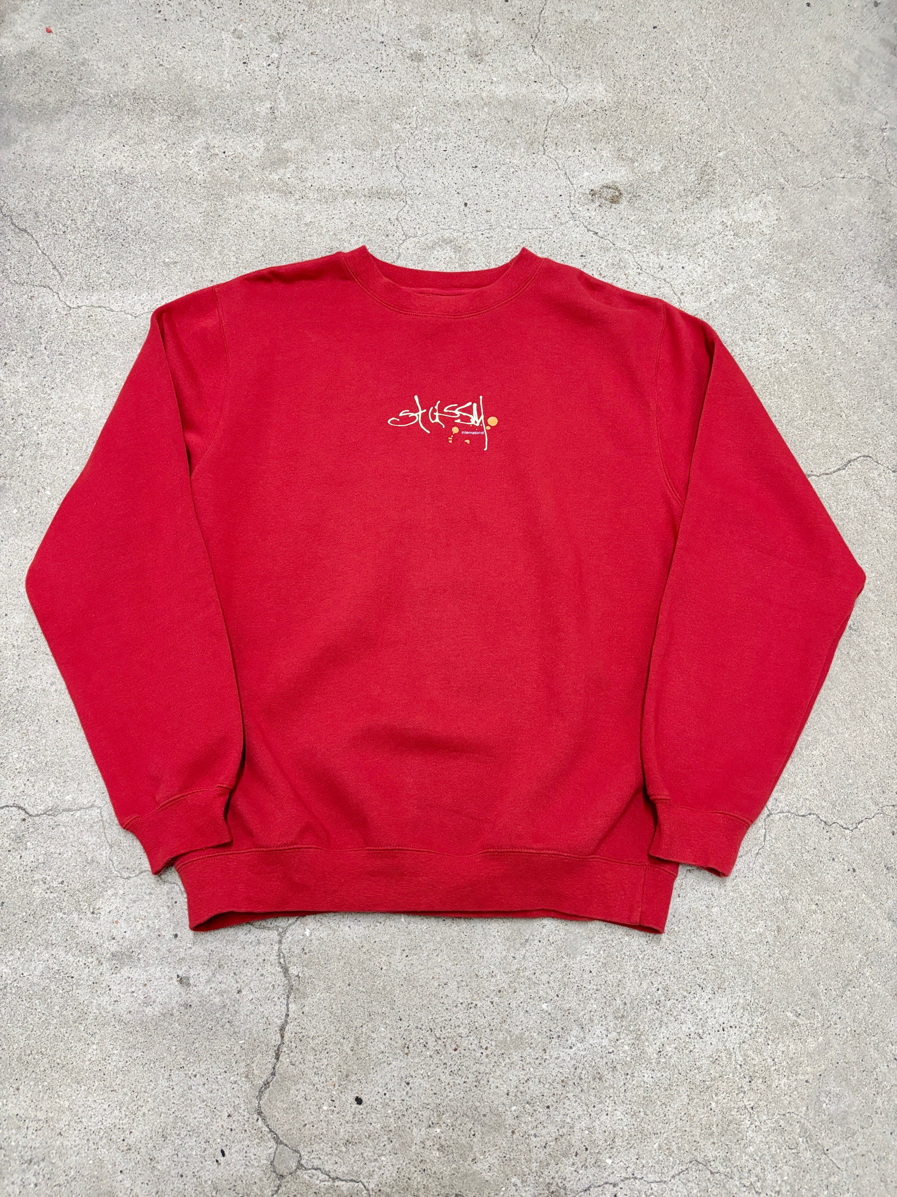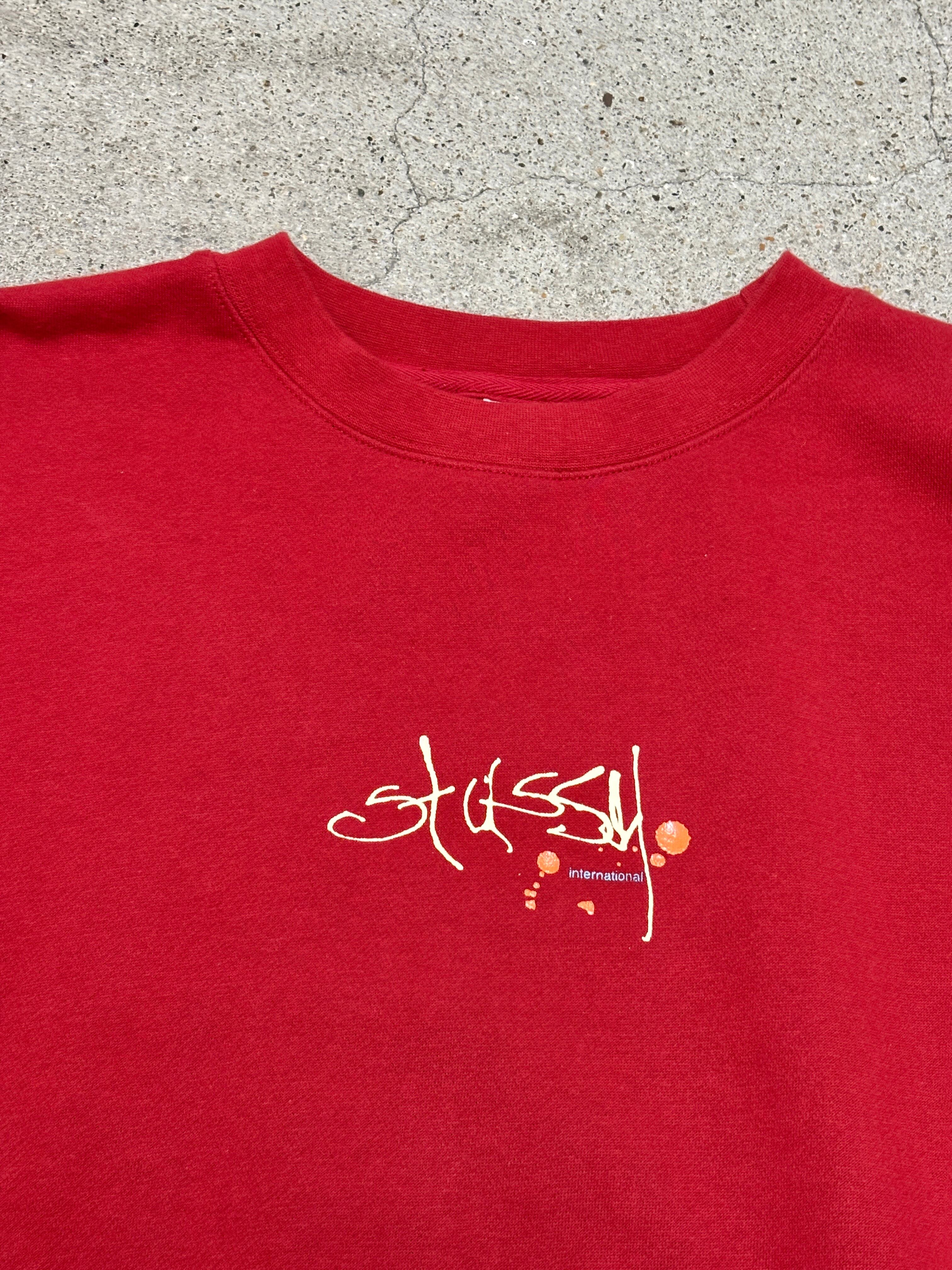 00s OLD STUSSY/Graphic Logo print Sweat/銀タグ/M/グラフィックロゴプリントスウェット/バ-ガンディ-/ステューシー/オ-ルドステューシー/古着/ア―カイブ