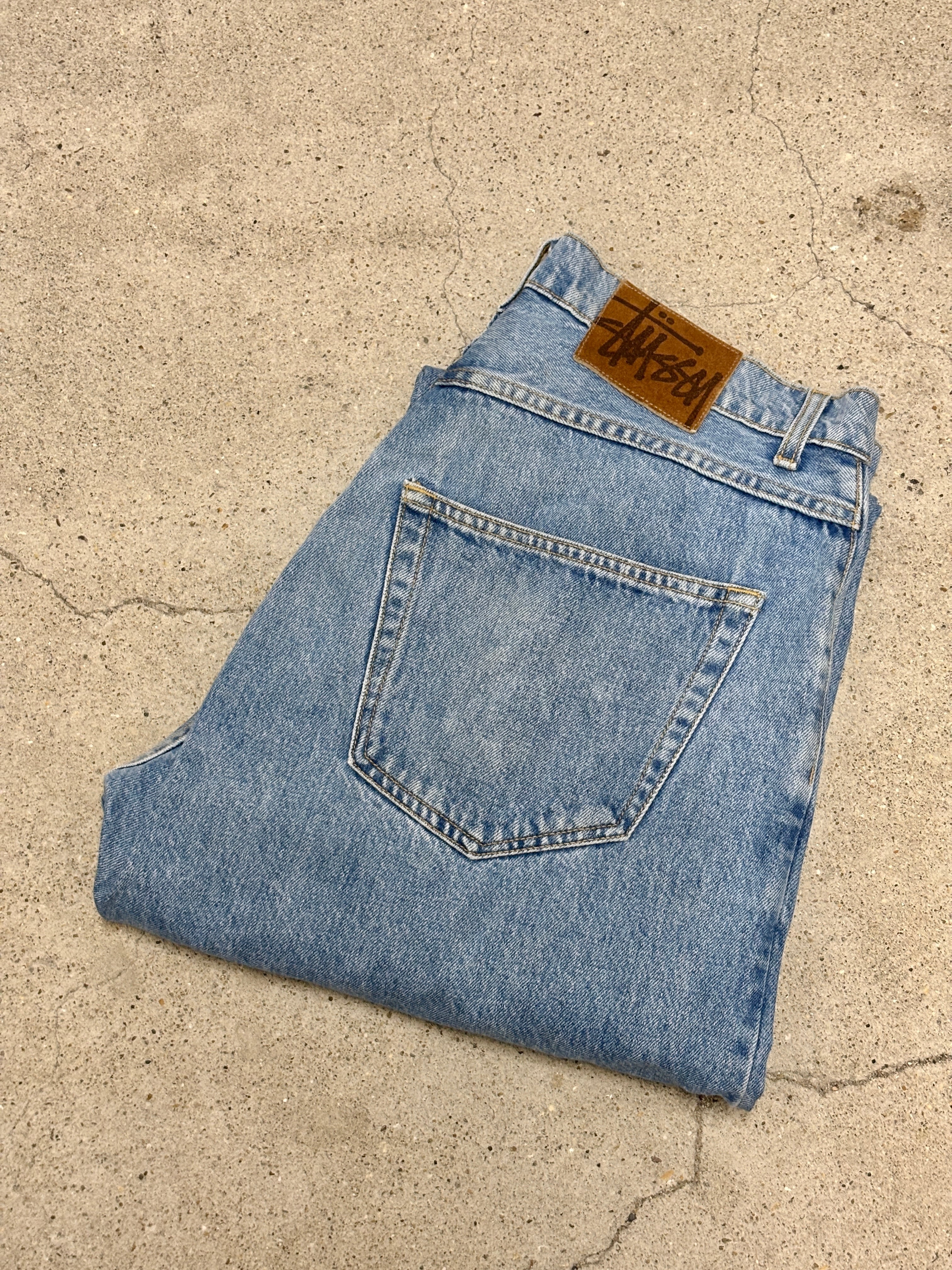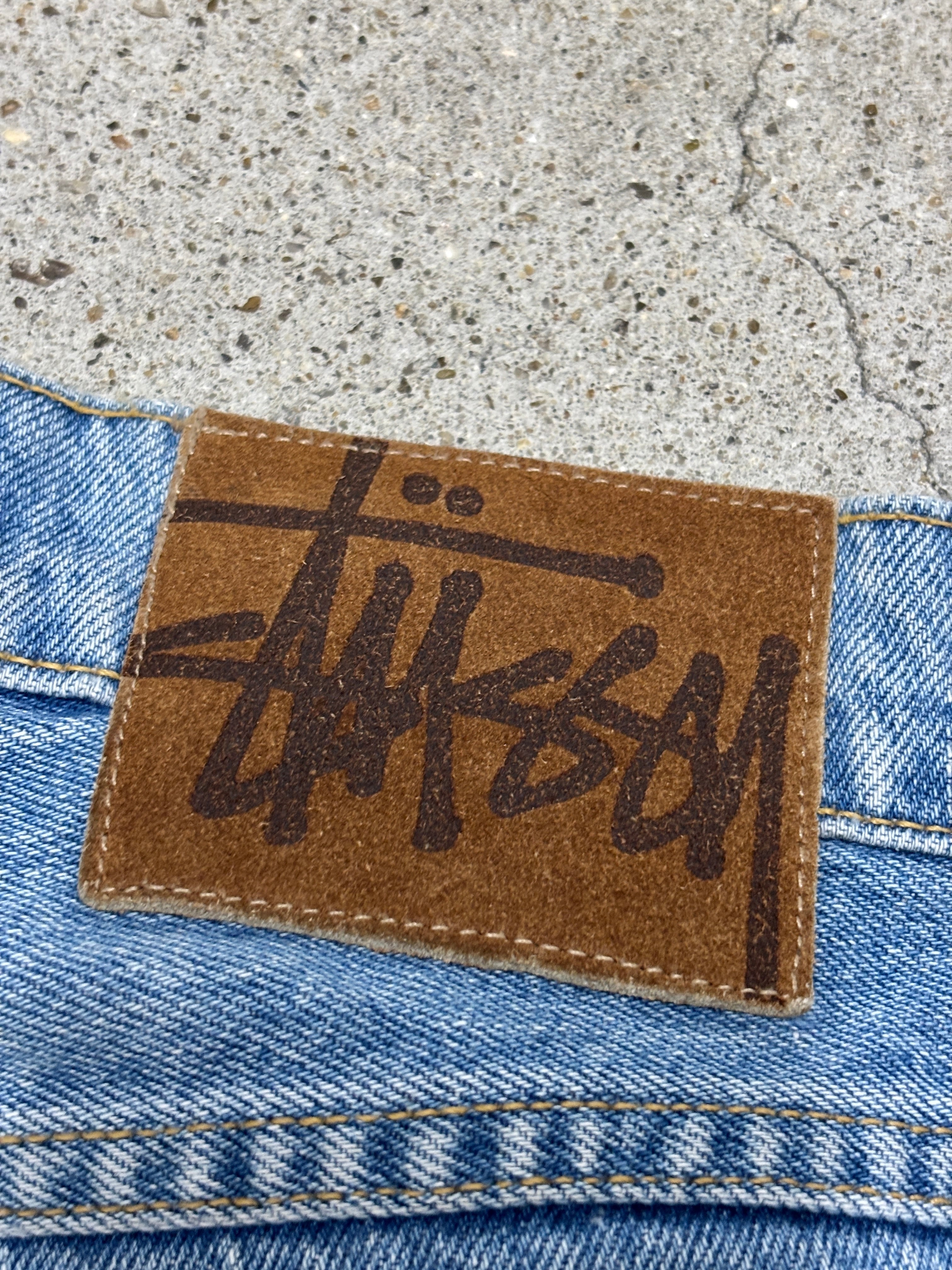 90s OLD STUSSY/Denim pants/USA製/W33〜34相当/デニムパンツ/ボトム/ワイド/アイスブル-/ステューシー/オ-ルドステューシー/古着/ア―カイブ