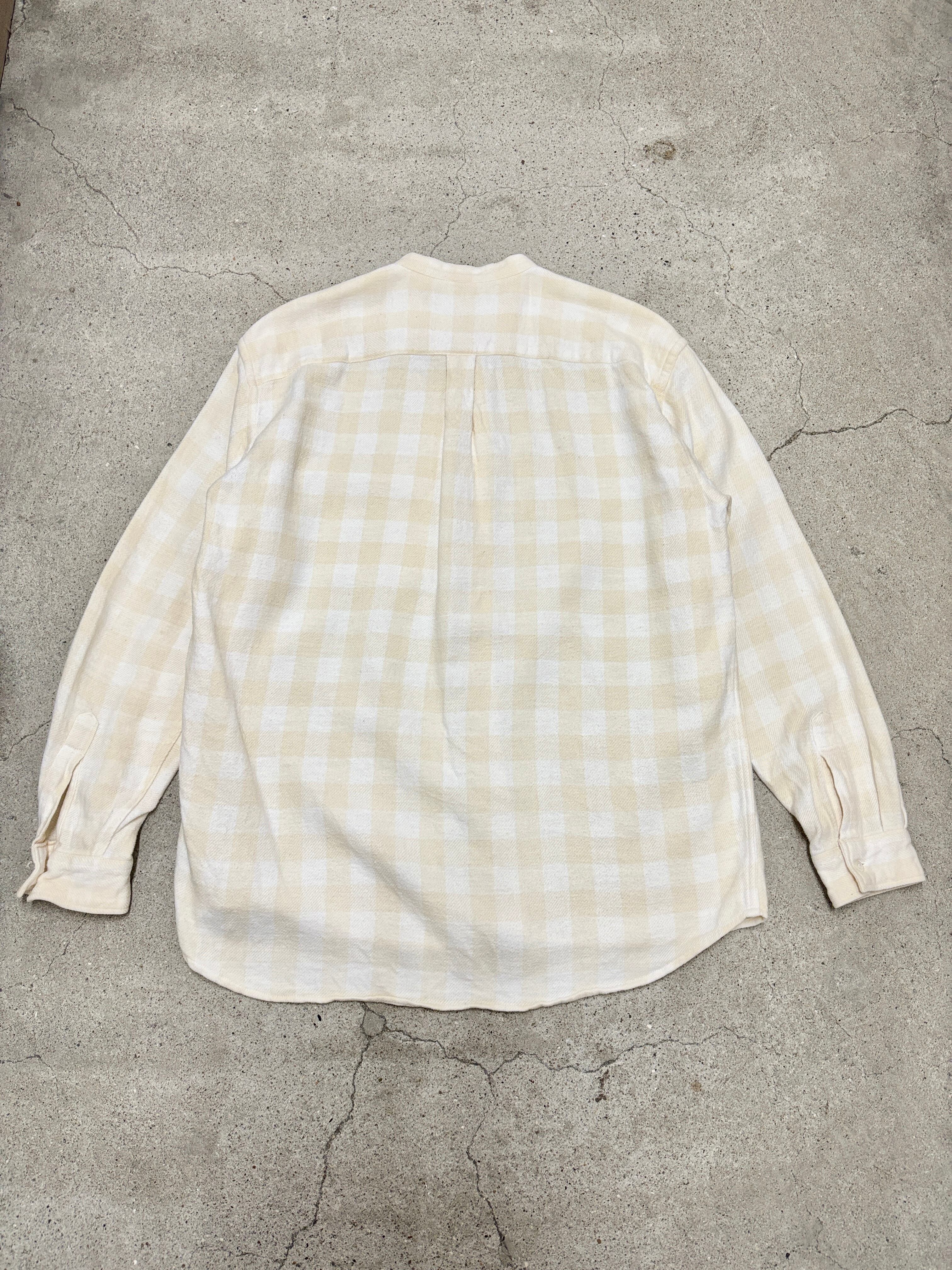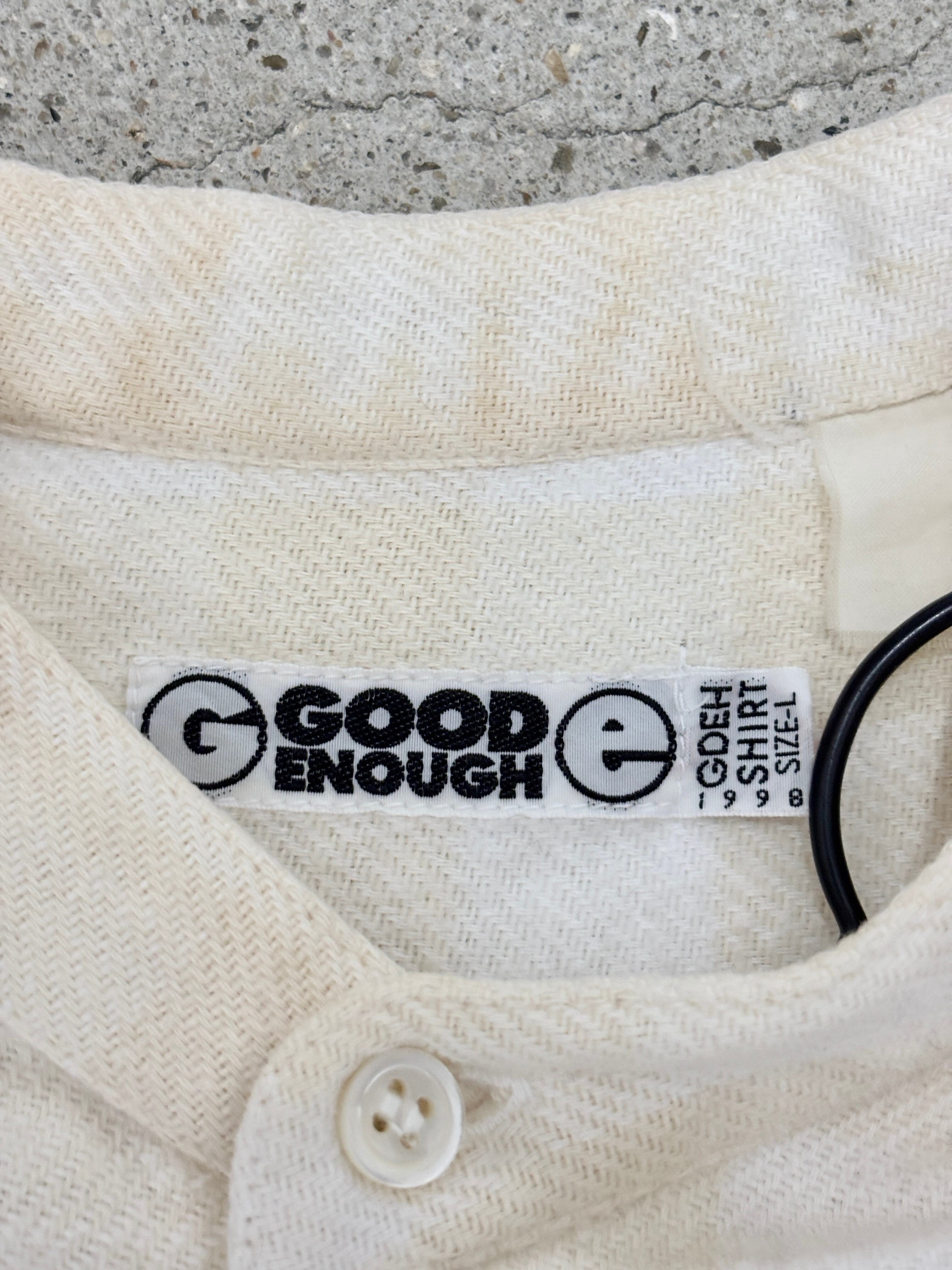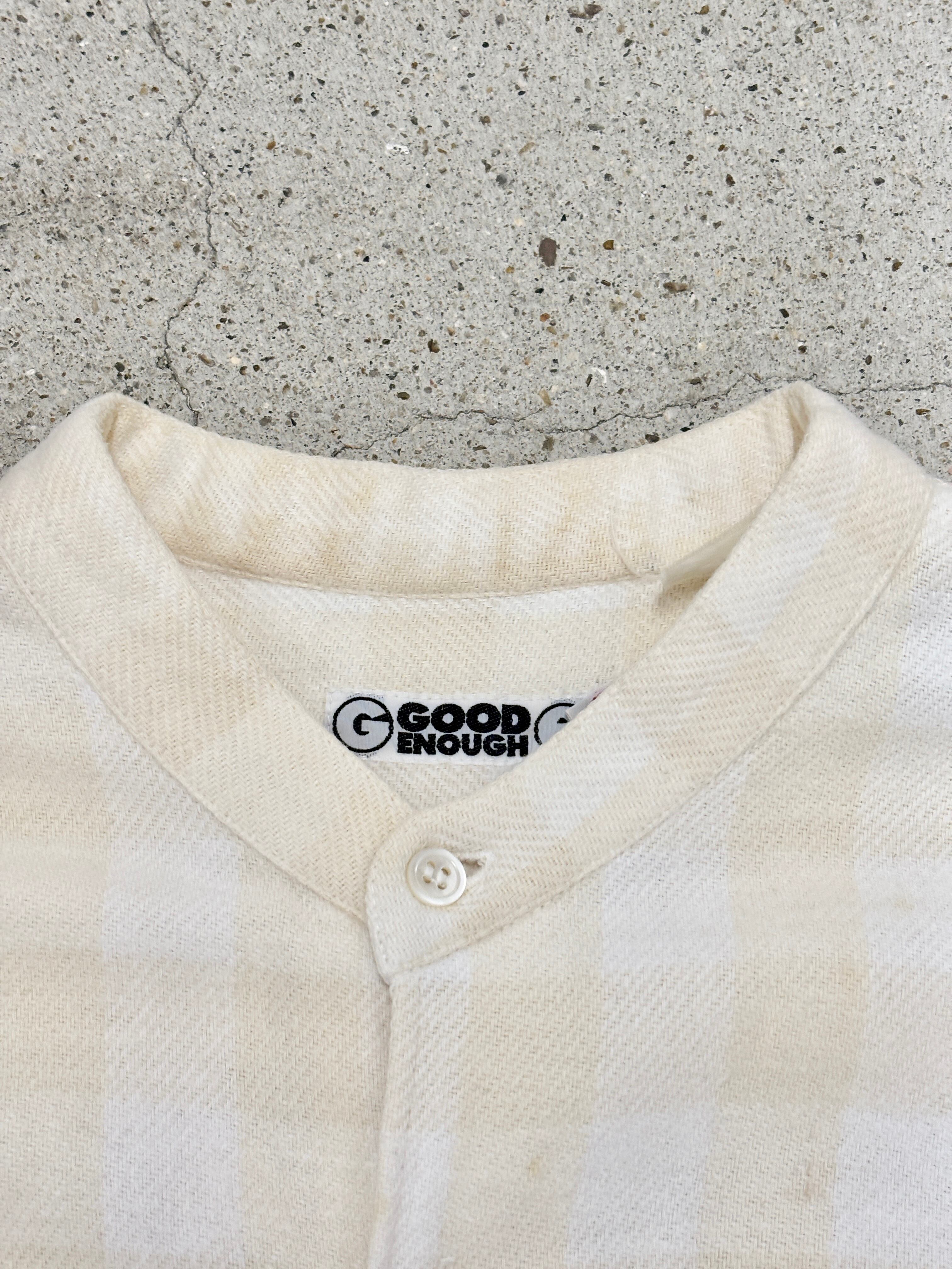 90s GOODENOUGH/Check Flannel Shirt/1998年/L/チェック柄ネルシャツ/ノ-カラ-/バンドカラ-/ホワイト/クリ-ム/GDEH/グッドイナフ