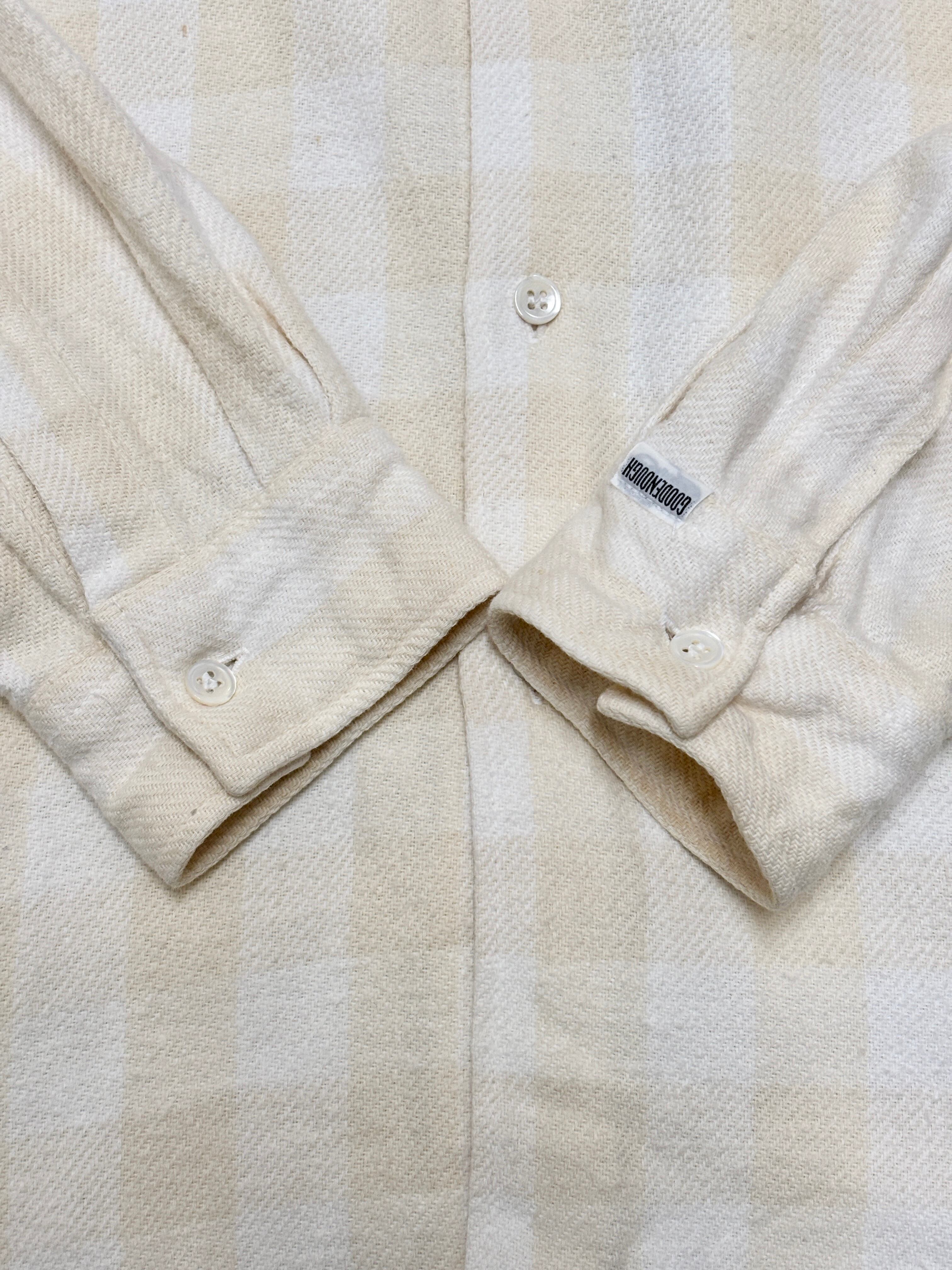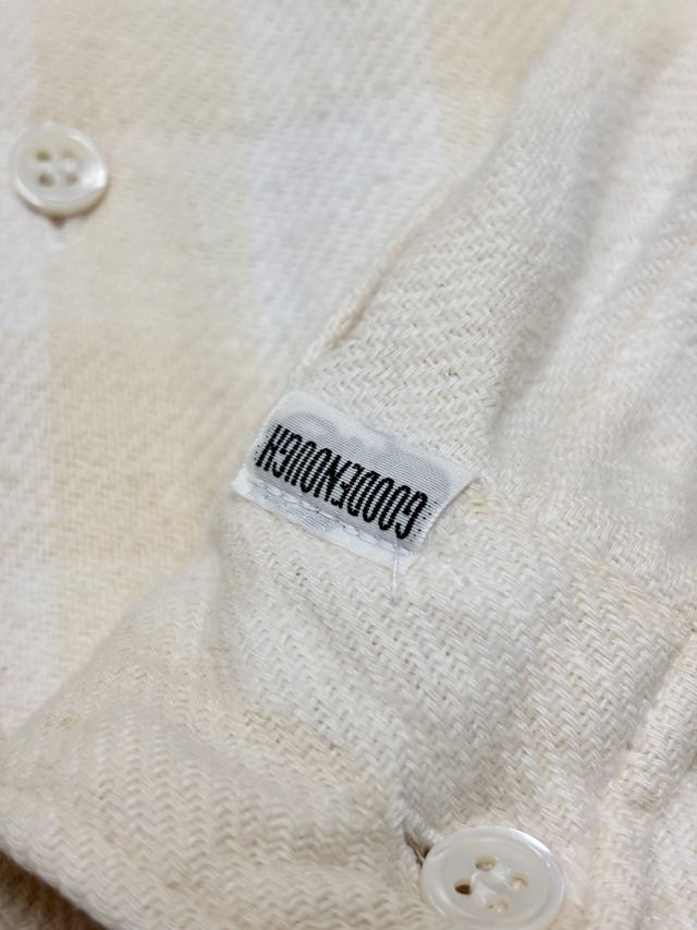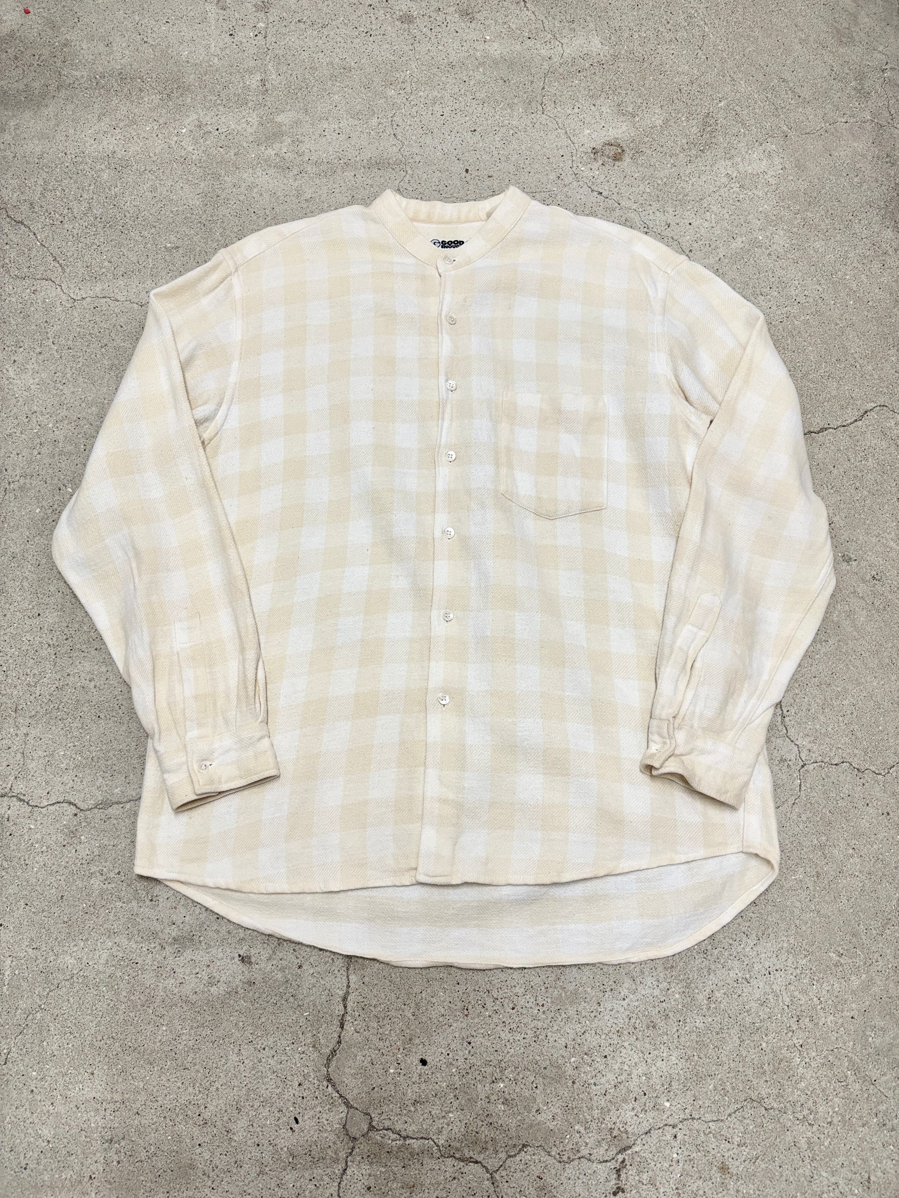 90s GOODENOUGH/Check Flannel Shirt/1998年/L/チェック柄ネルシャツ/ノ-カラ-/バンドカラ-/ホワイト/クリ-ム/GDEH/グッドイナフ