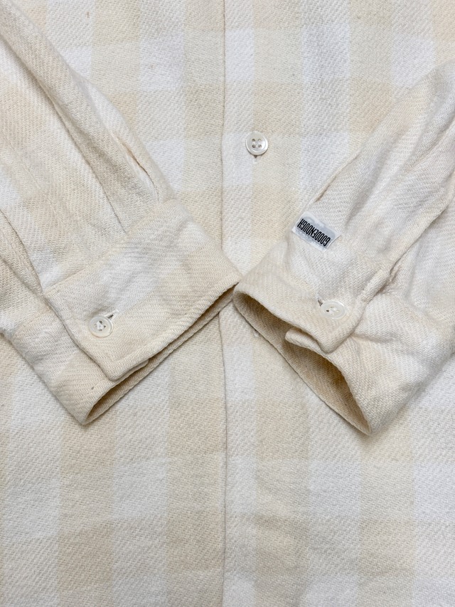 90s GOODENOUGH/Check Flannel Shirt/1998年/L/チェック柄ネルシャツ/ノ-カラ-/バンドカラ-/ホワイト/クリ-ム/GDEH/グッドイナフ/裏原/古着/ア―カイブ