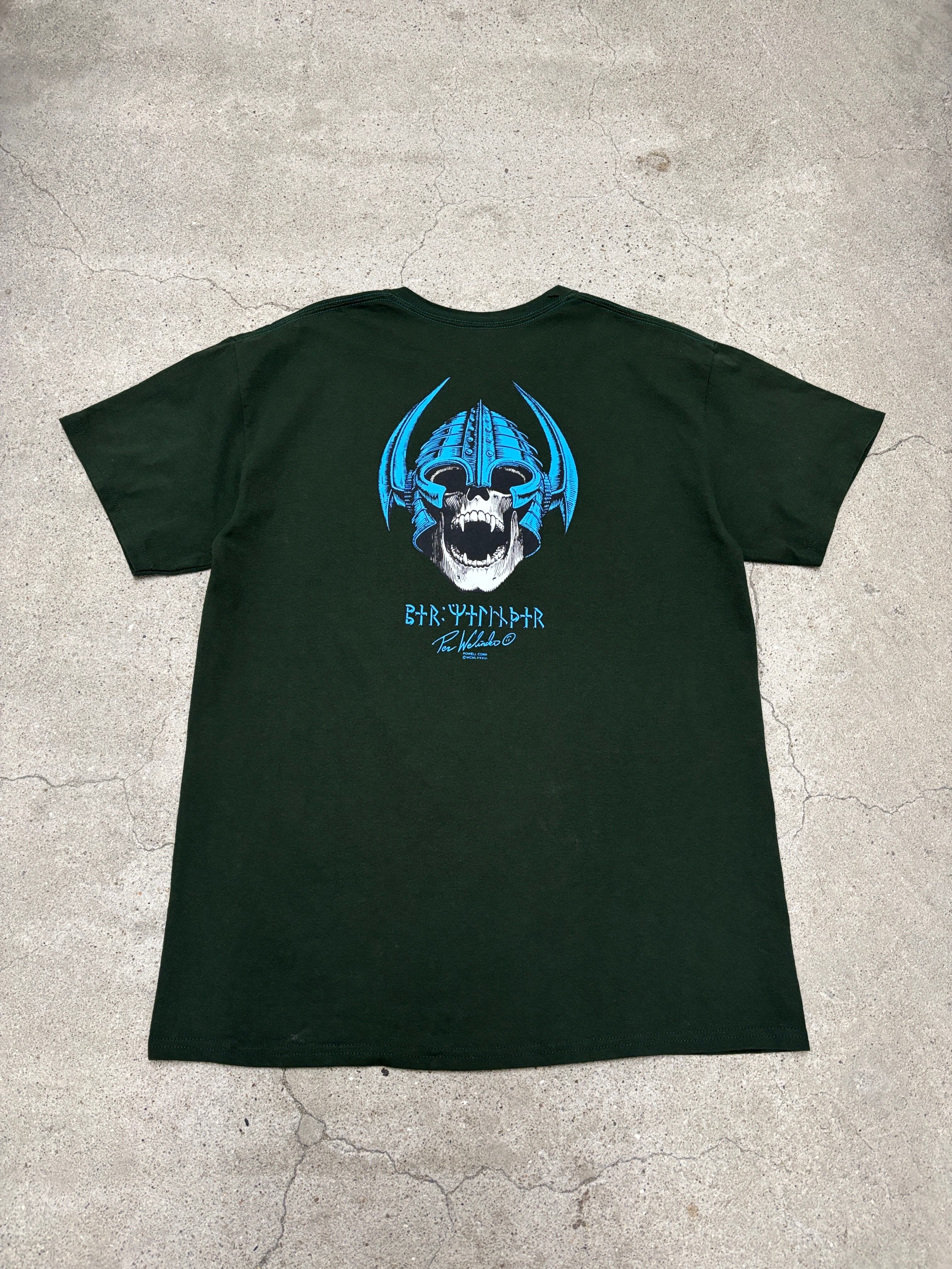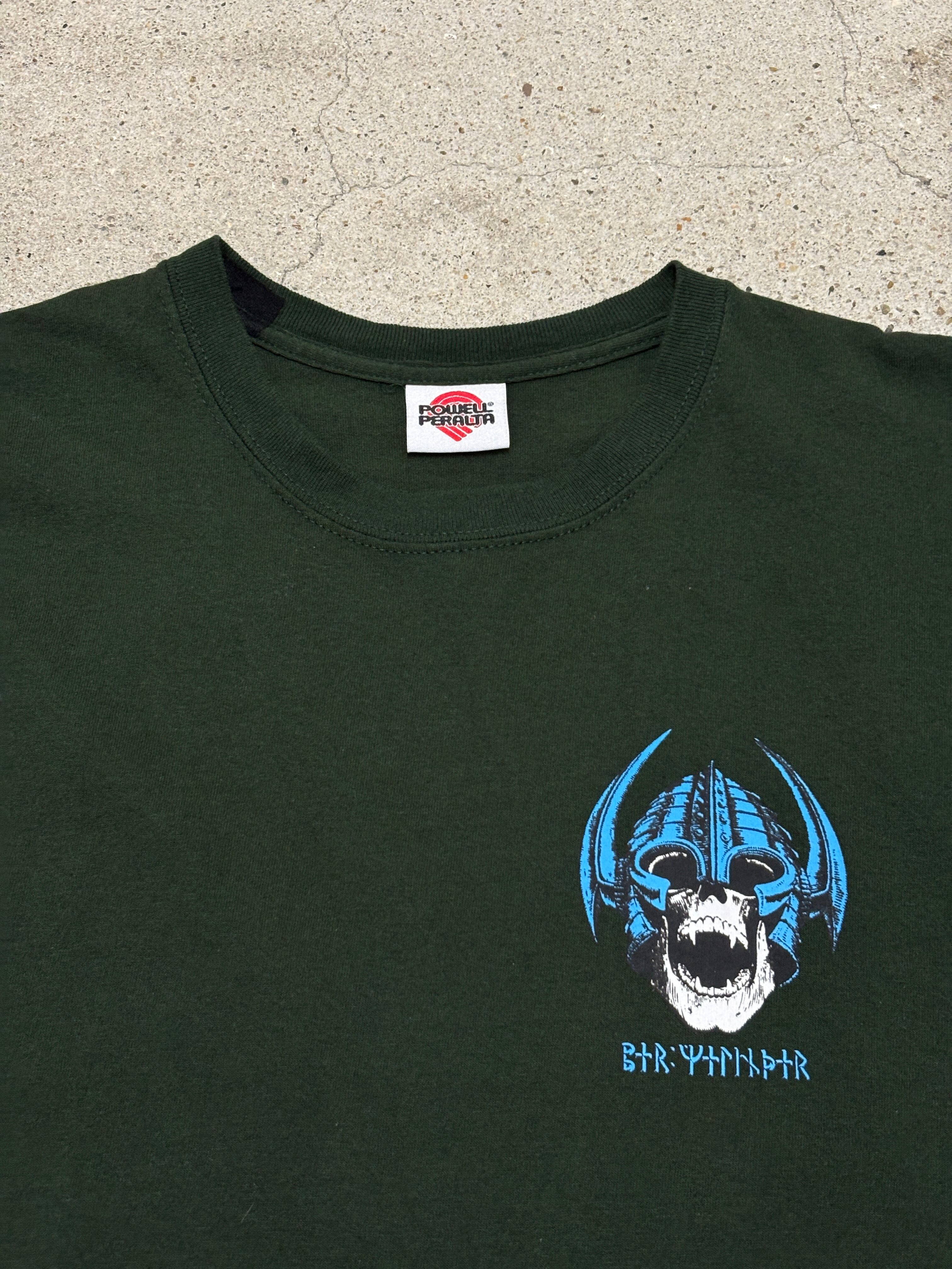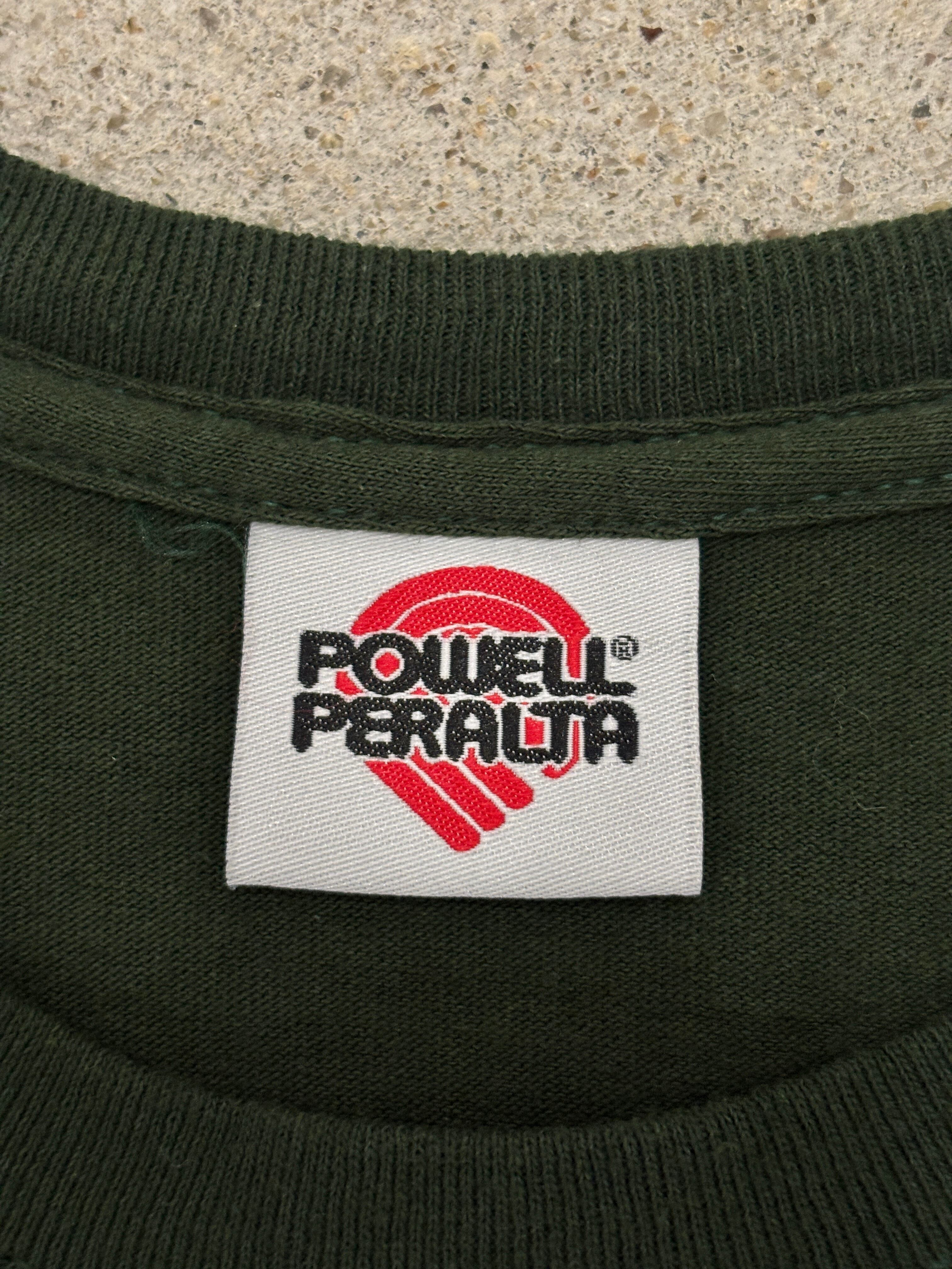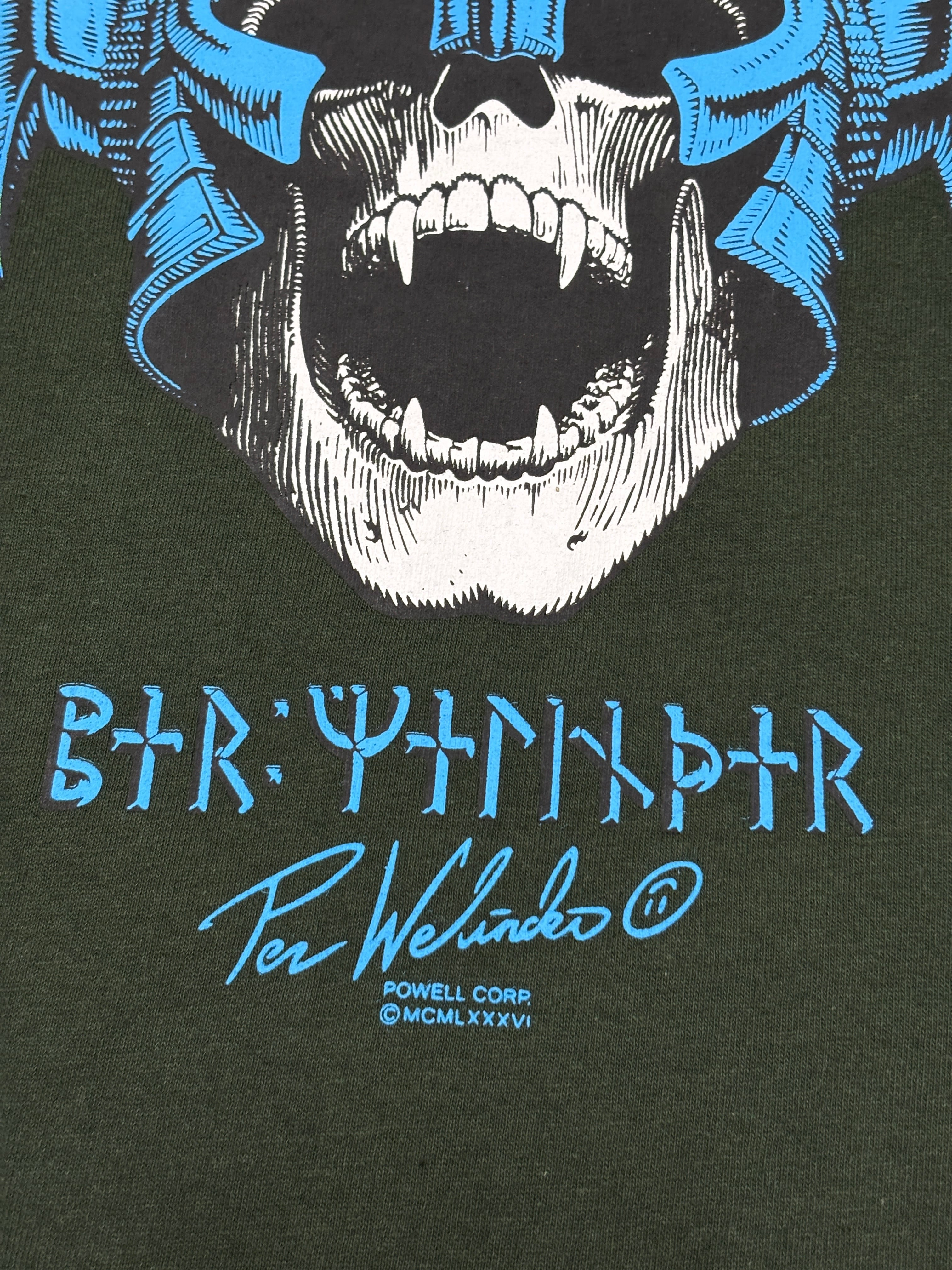 00s POWELL PERALTA/Per Welinder Tee/2005年/L相当/パー・ウェリンダーシグネイチャーモデル/スカルプリントTシャツ/カ-キ/パウエルペラルタ