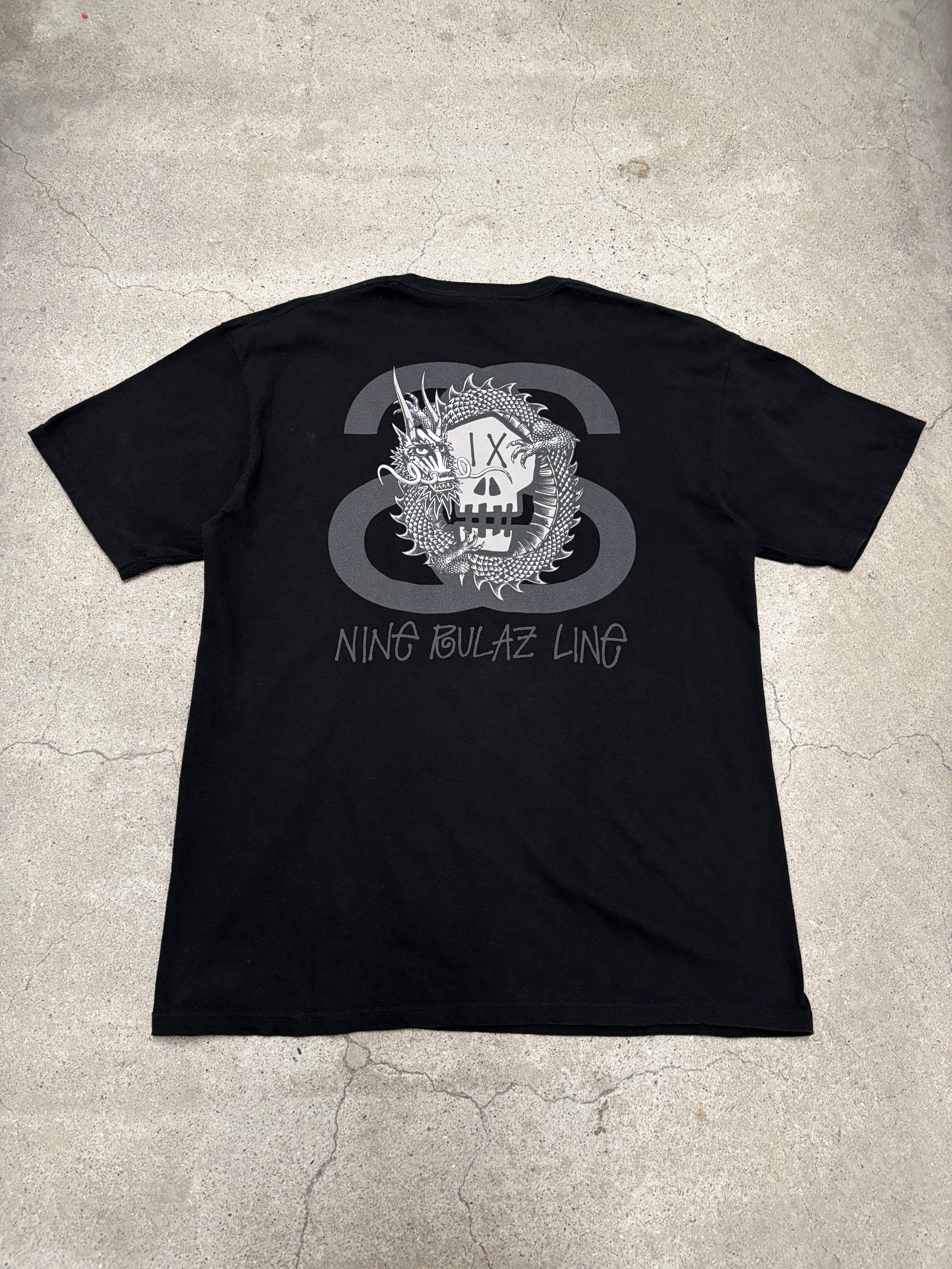 10s STUSSY × NINE RULAZ LINE/Dragon Skull Tee/2013年/XL/ドラゴンスカルプリントTシャツ/ロゴプリント/ブラック/ナインル-ラ-ズコラボ/ステューシー