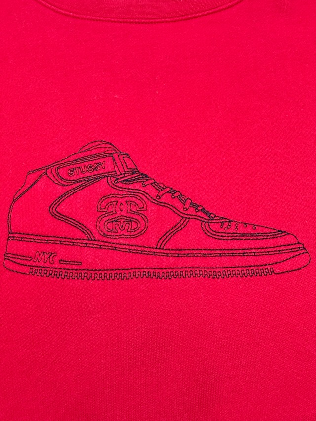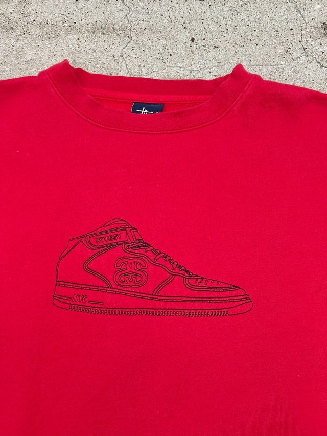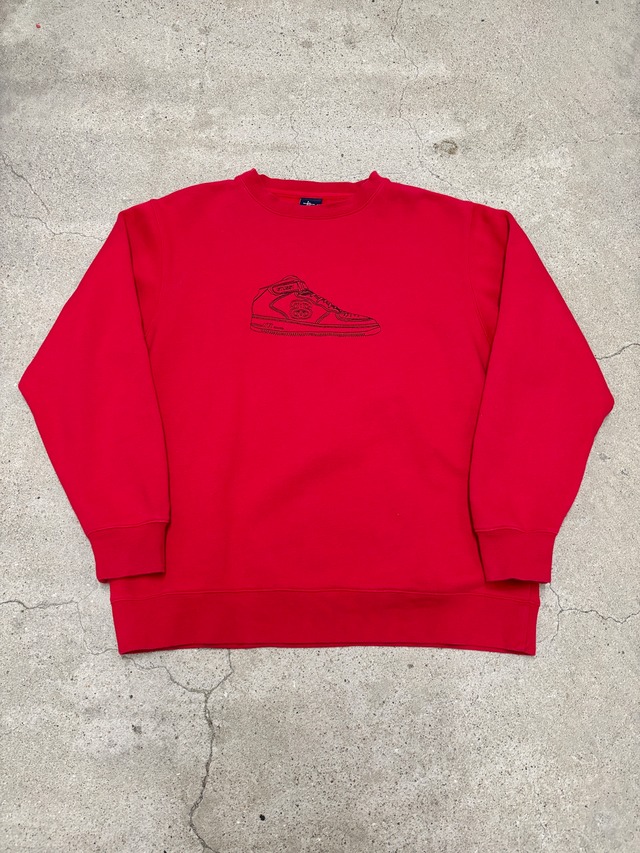 00s OLD STUSSY/AF1 parody design Sweat/紺タグ/S(L相当)/エアフォ-ス1パロディ-デザインスウェット/SSリンクロゴ/刺繍/レッド/ステューシー/オ-ルドステューシー/古着/ア―カイブ