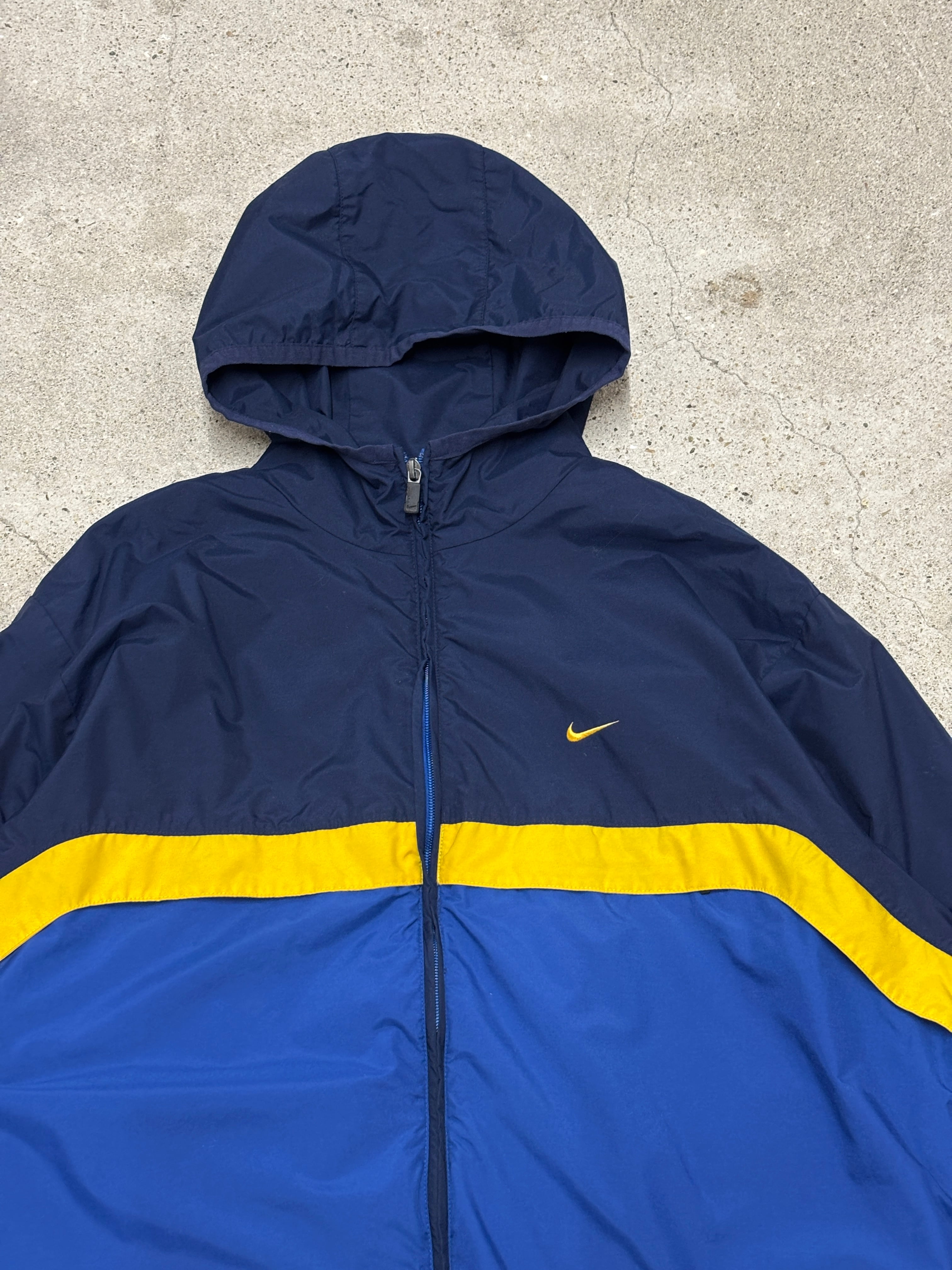 00s NIKE/Nylon Jacket/XL/ナイロンジャケット/フ-ディ-/パ-カ-/刺繍ロゴ/スウォッシュロゴ/ネイビ-/ブル-/イエロ-/ナイキ