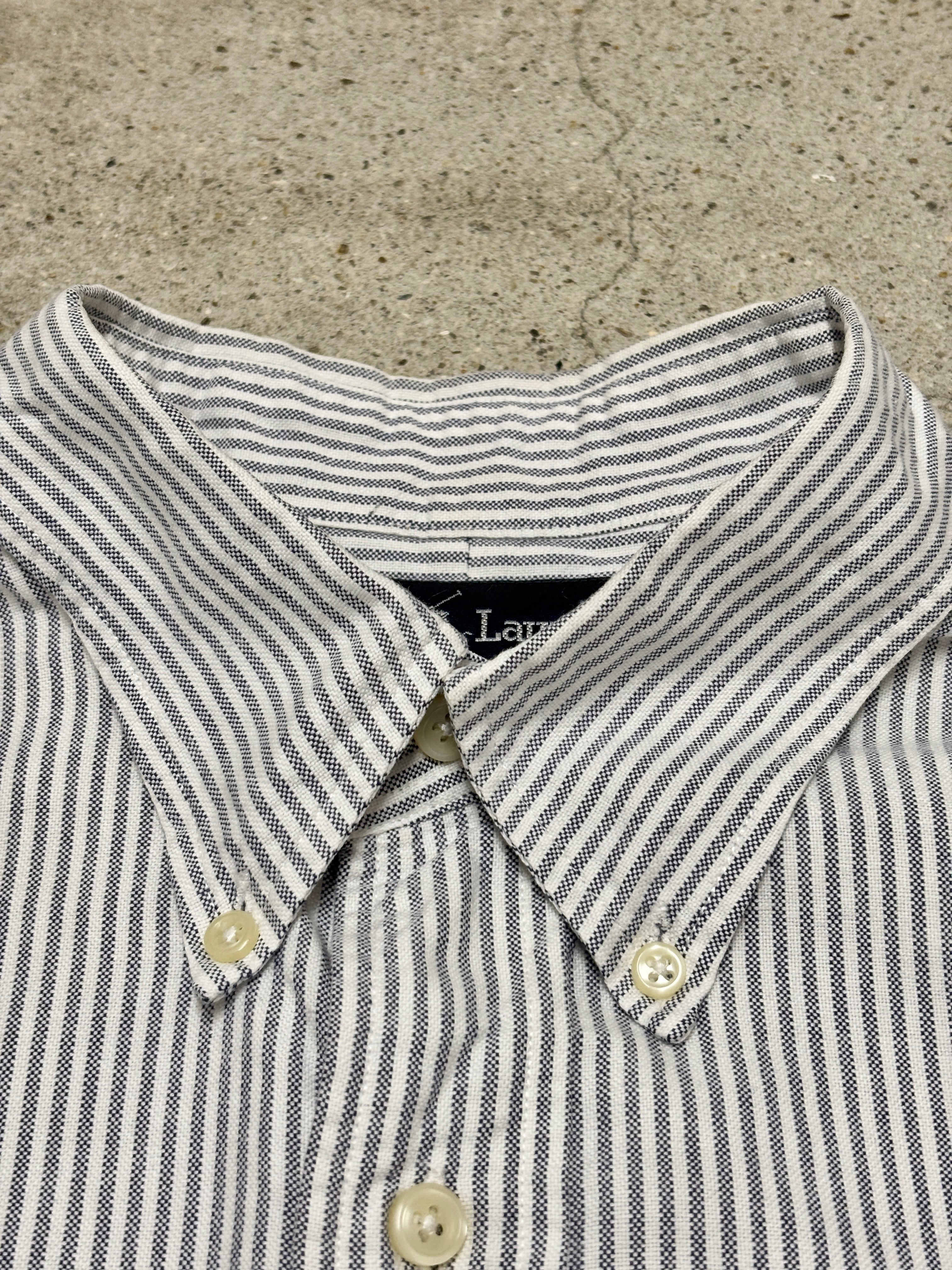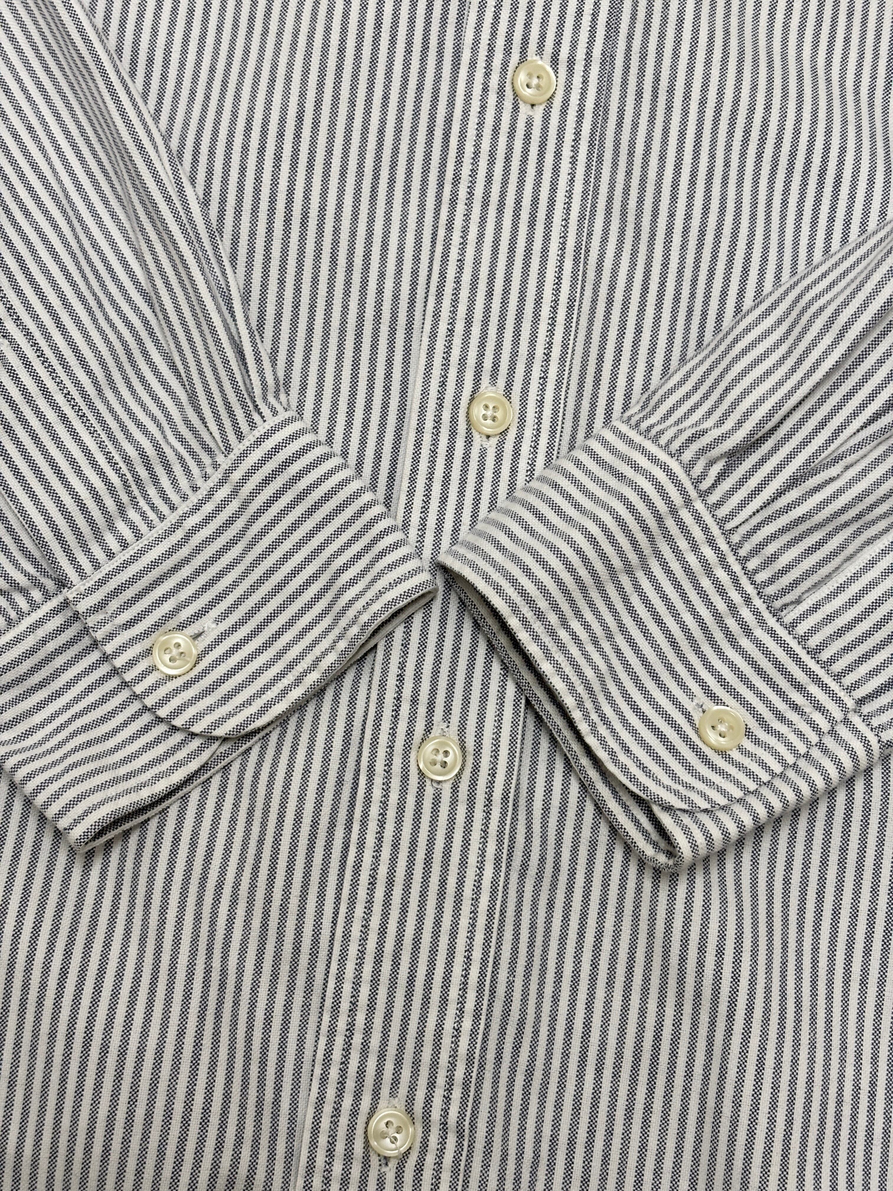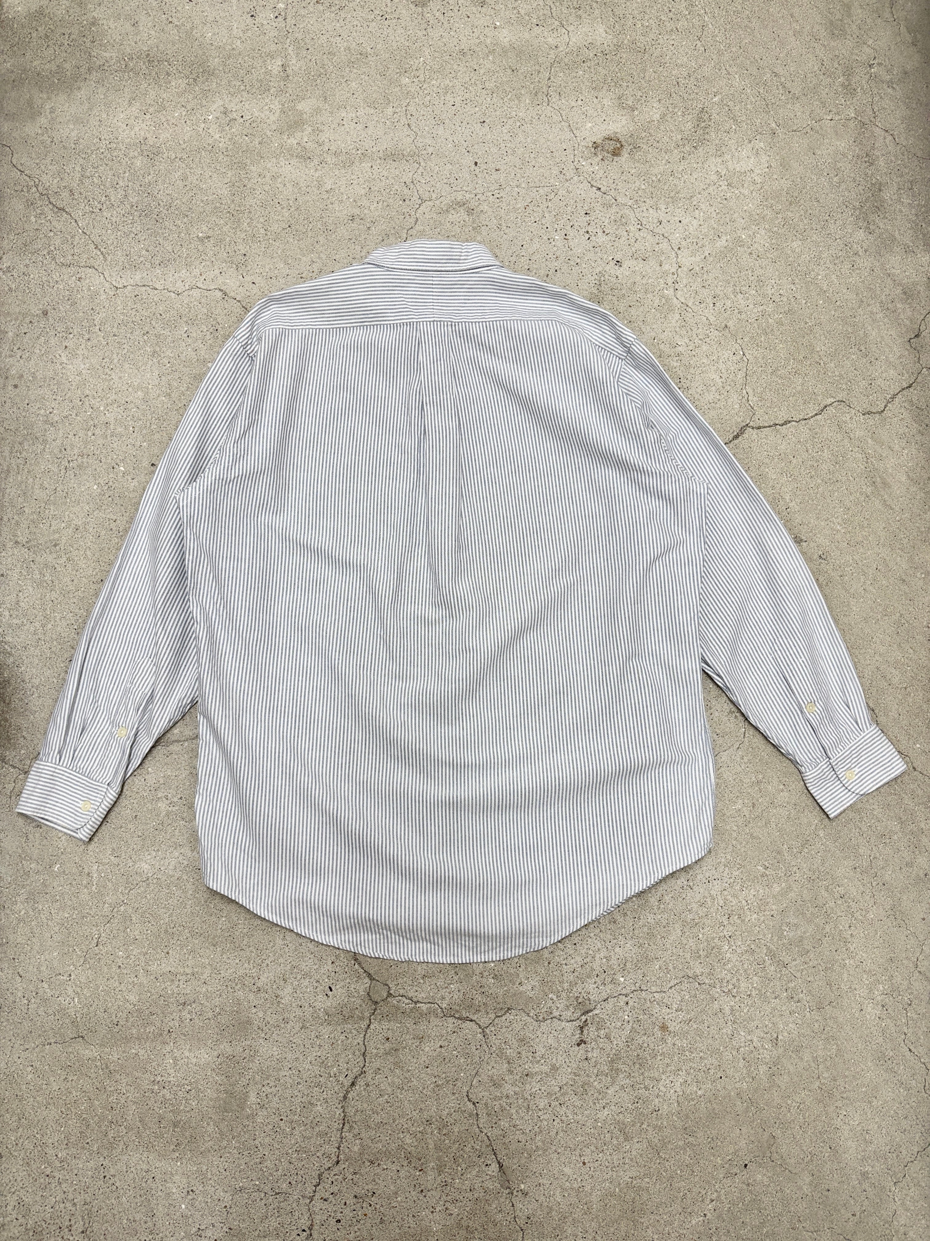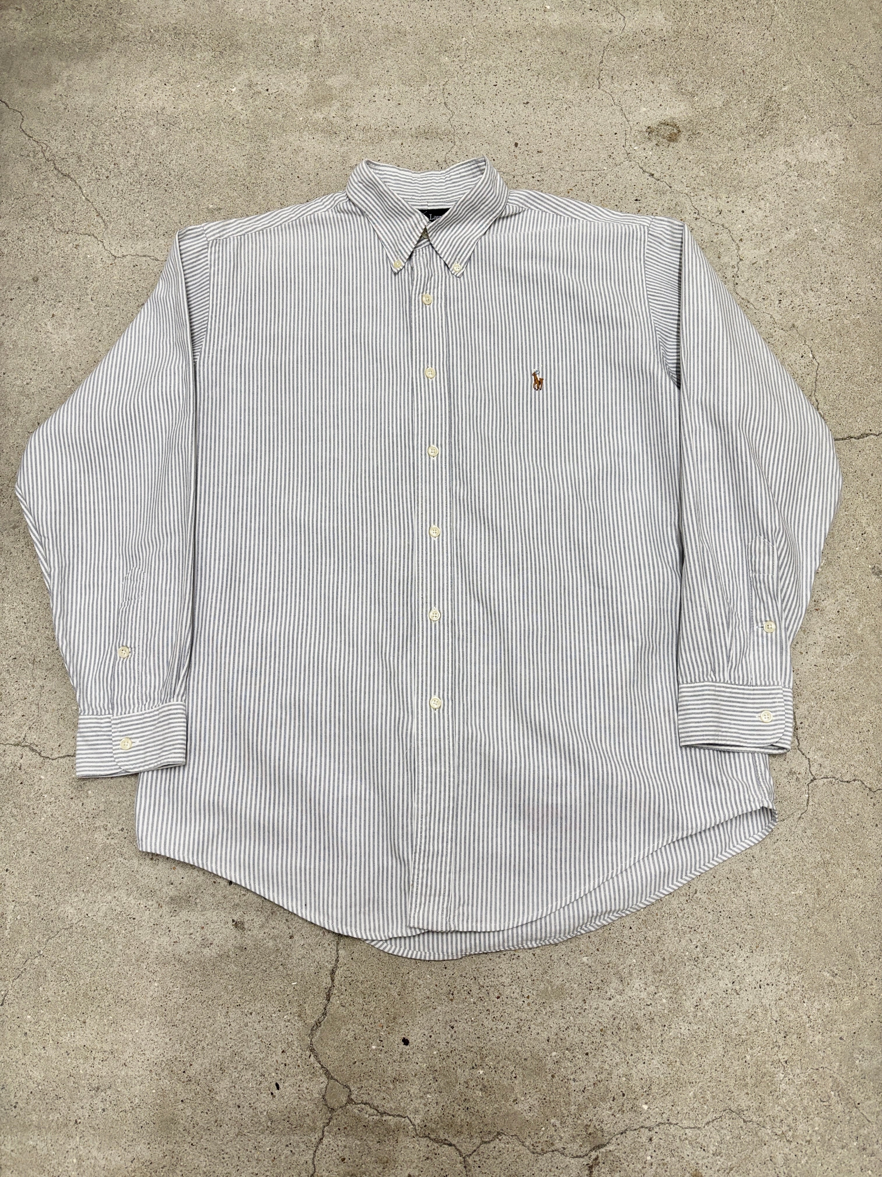 90~00s POLO RALPH LAUREN/Stripe BD Shirt/L/ストライプ柄ボタンダウンシャツ/ポニー刺繡/長袖シャツ/グレ-/ホワイト/ポロラルフローレン/アメカジ/古着